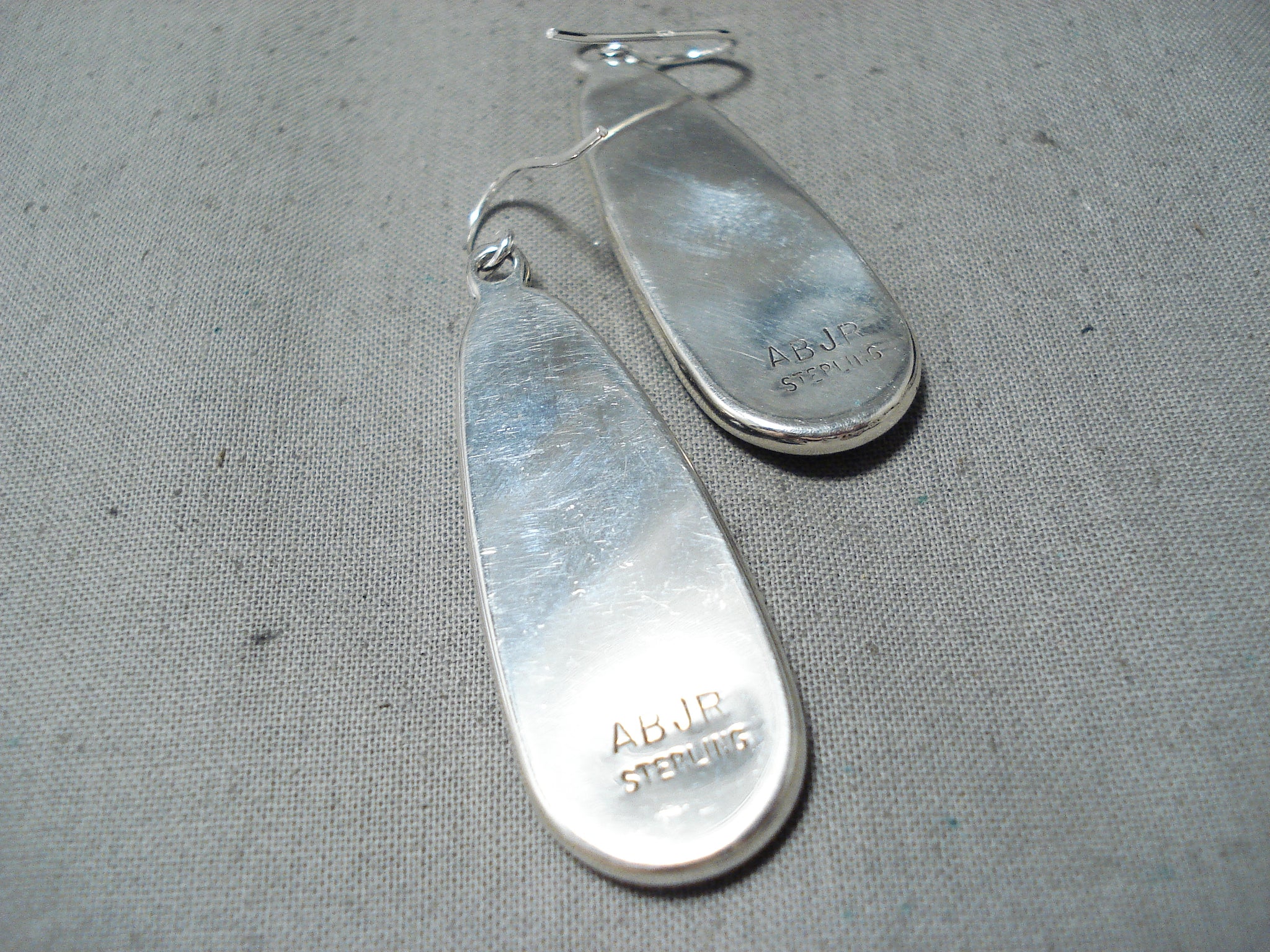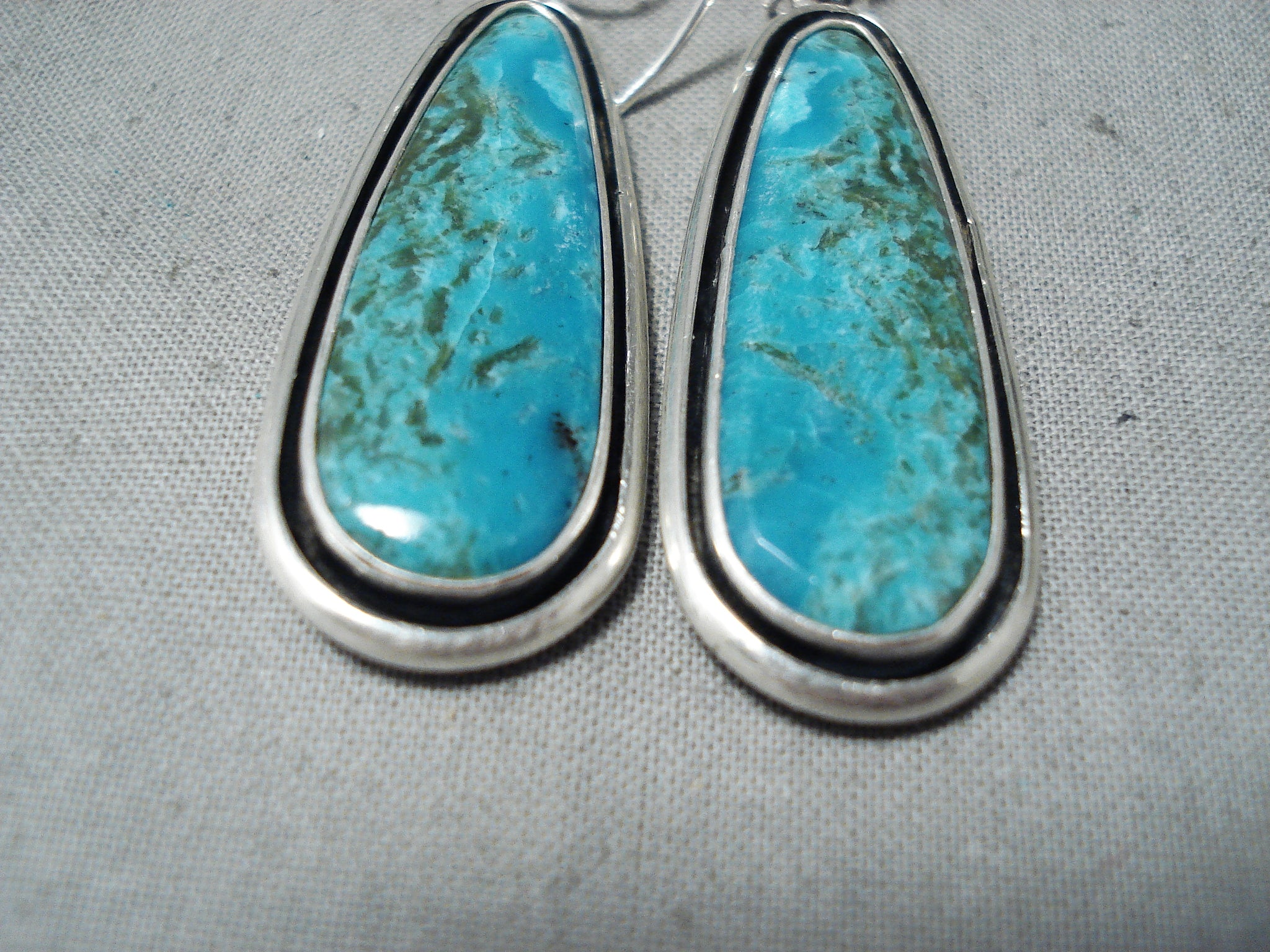 Boyd Jr Signed Native American Navajo Pilot Mountain Turquoise Sterling Silver Earrings