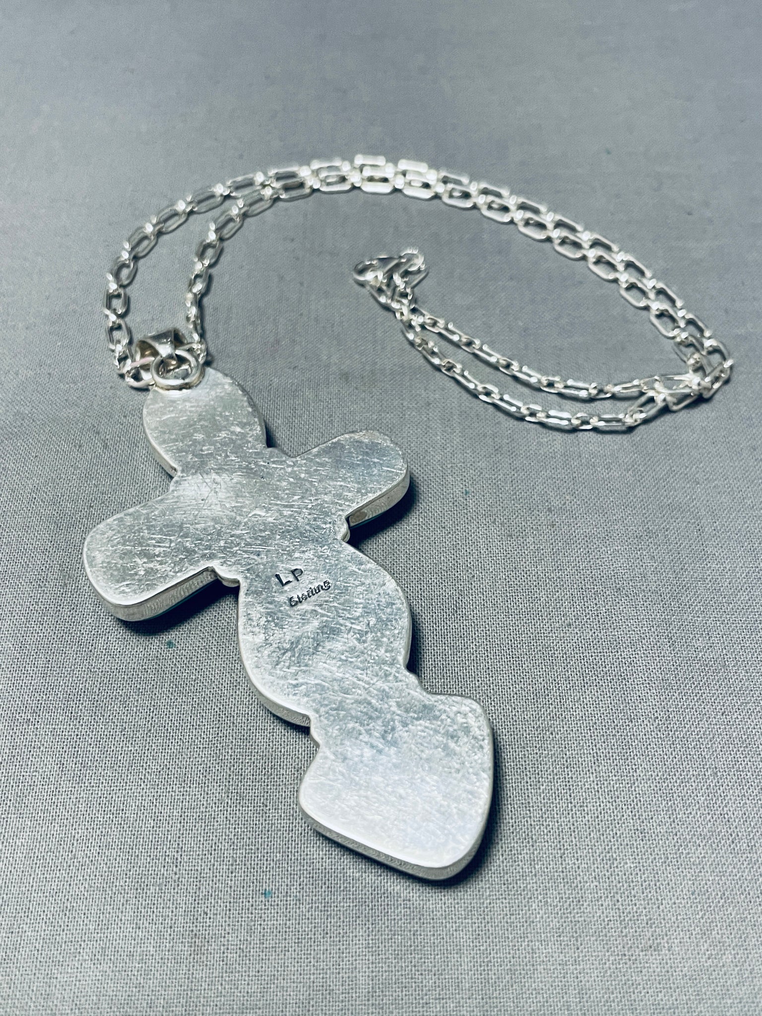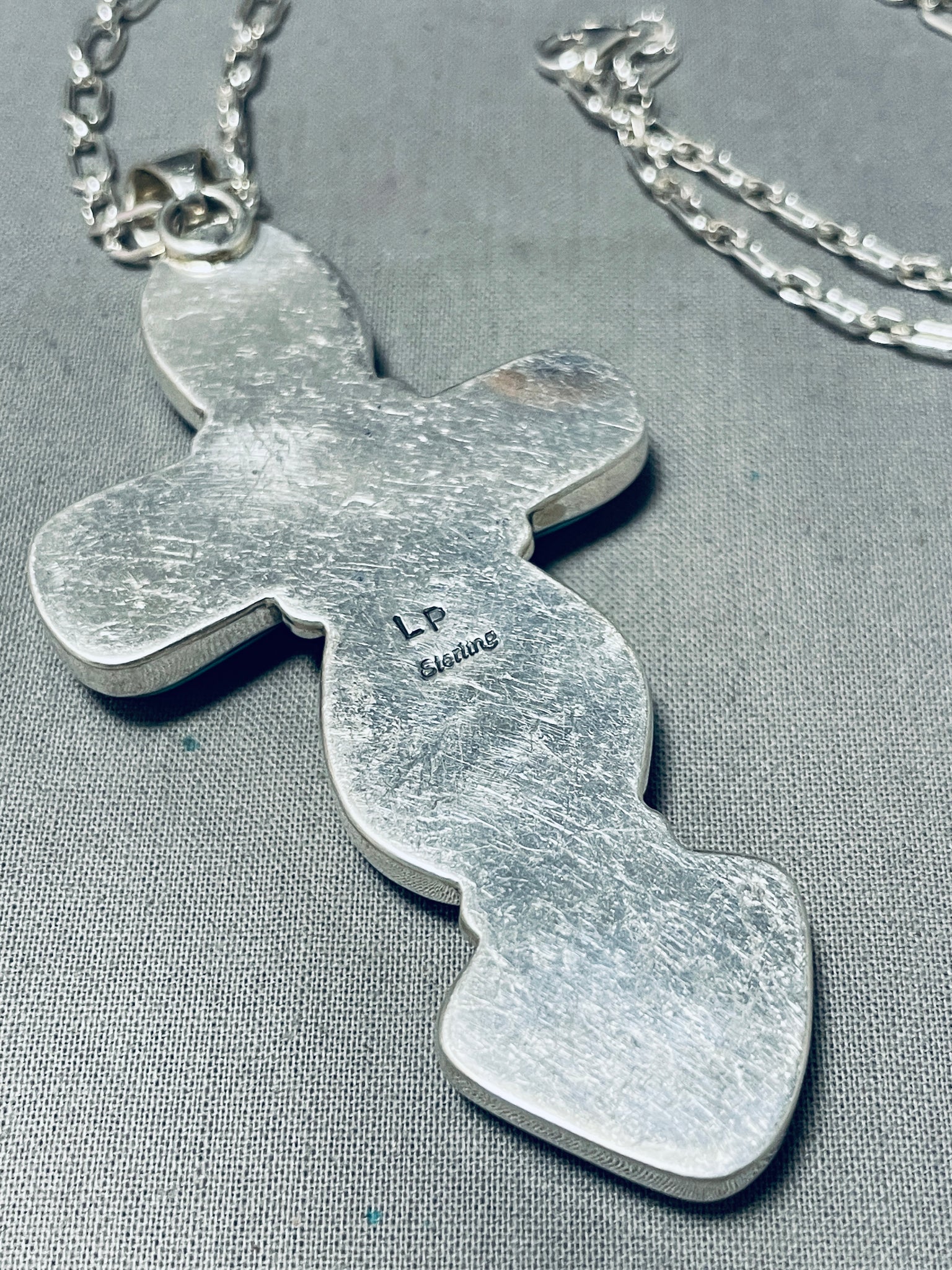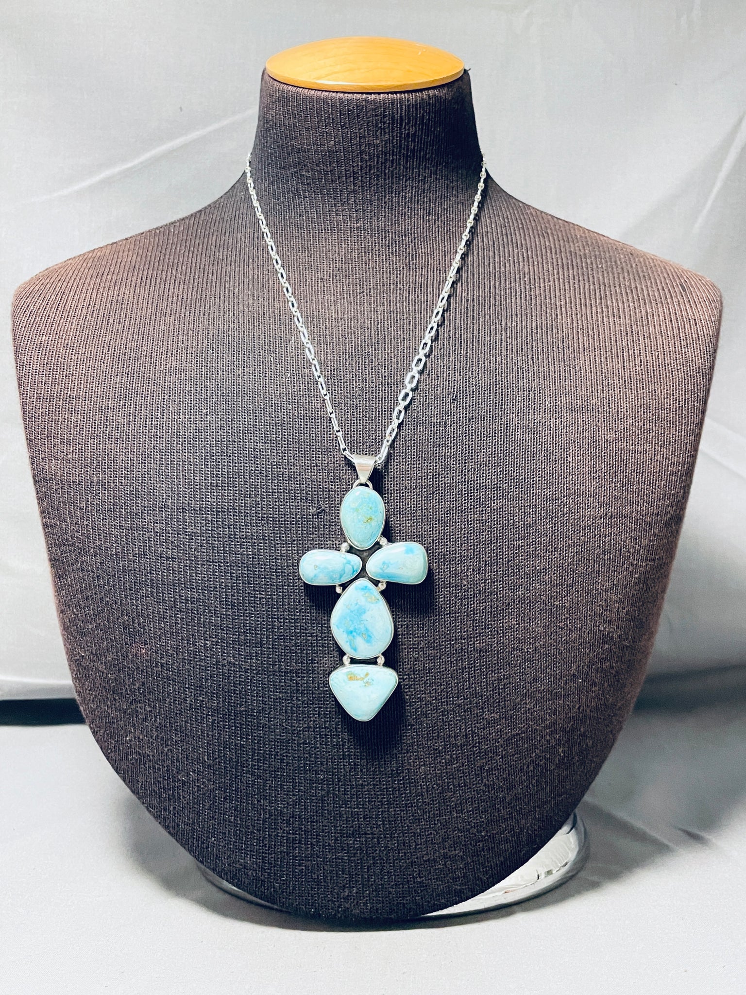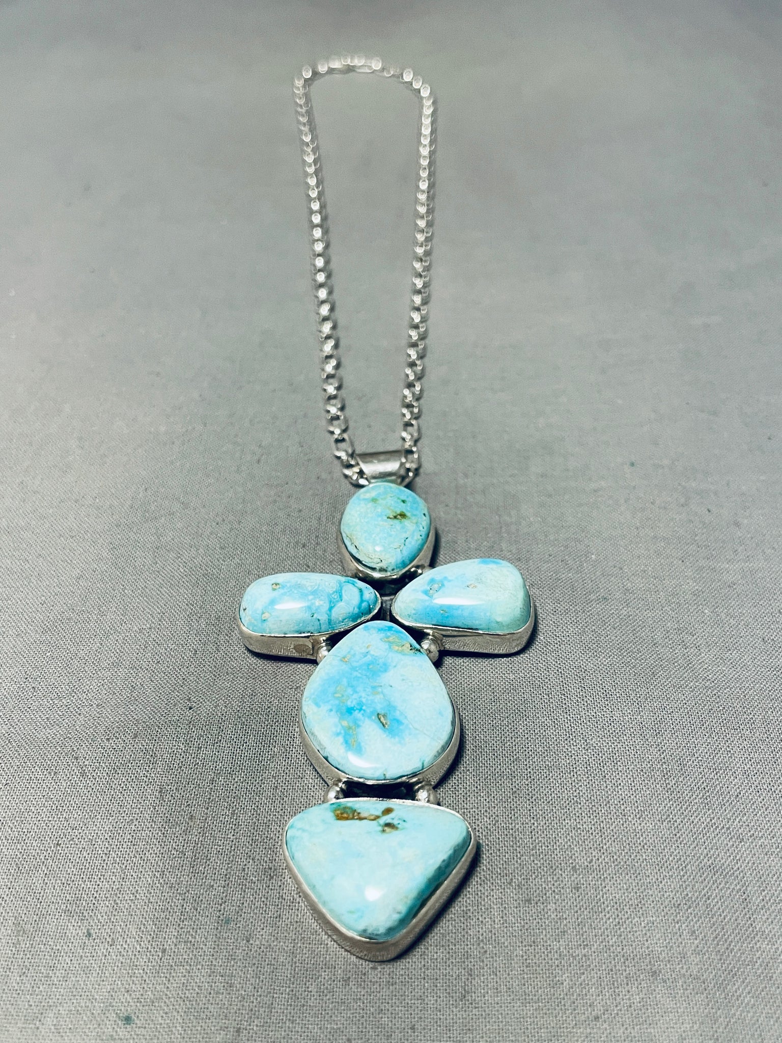 Breathtaking Native American Navajo Blue Gem Turquoise Sterling Silver Cross Necklace