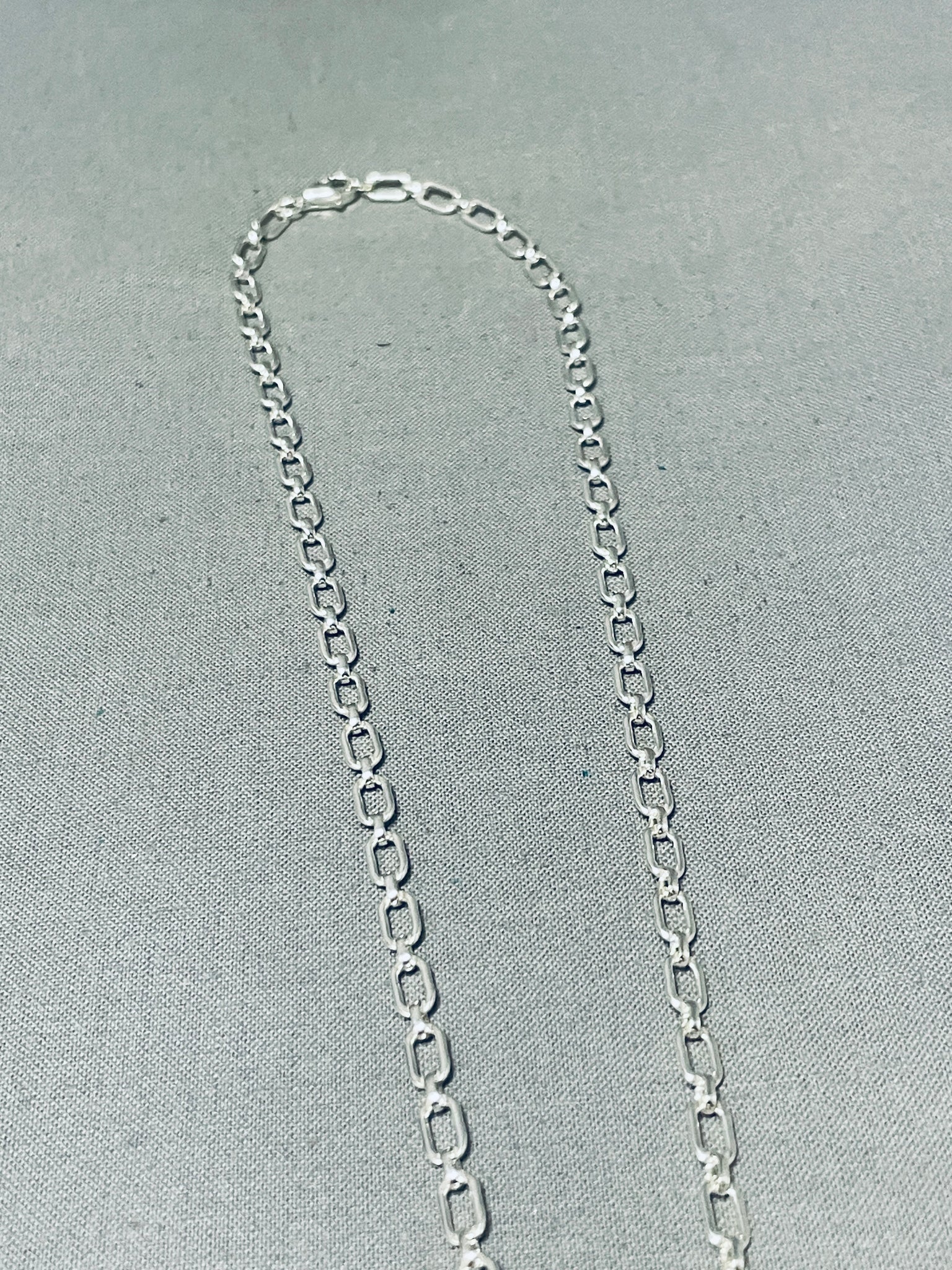 Here we have an exquisite Navajo silver necklace. Where do I begin? The artist has chosen 5 of the most peaceful, beautiful Blue Gem turquoise stones to create this large 3-1/2" x 1-5/8" cross pendant! The shapes are perfectly arranged with silver beads. And it comes with the gorgeous 18" silver chain. The largest of stones measures about 1" x 3/4". Blue Gem turquoise is a highly prized and popular gemstone that is known for its distinctive blue-green color, often resembling the incredible clear blue skies of the Southwest. Blue Gem turquoise is a highly sought-after variety of turquoise known for its vibrant blue color and distinctive black or brown matrix patterns. Blue Gem turquoise is valued for its beauty and rarity, and it has been used in Native American jewelry for many years. Blue Gem turquoise jewelry is highly prized by collectors and enthusiasts due to its rich color and unique matrix patterns. The stone's vibrant blue hue adds a pop of color to any jewelry piece, making it a captivating choice for those seeking unique and beautiful Native American jewelry. Sterling silver. Signed by Navajo artist, LP. Sturdy 40 grams.