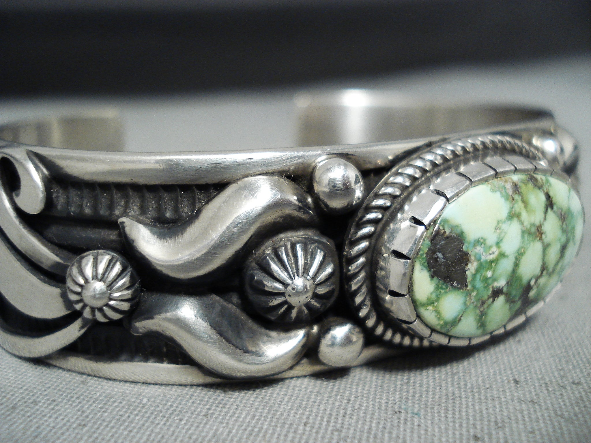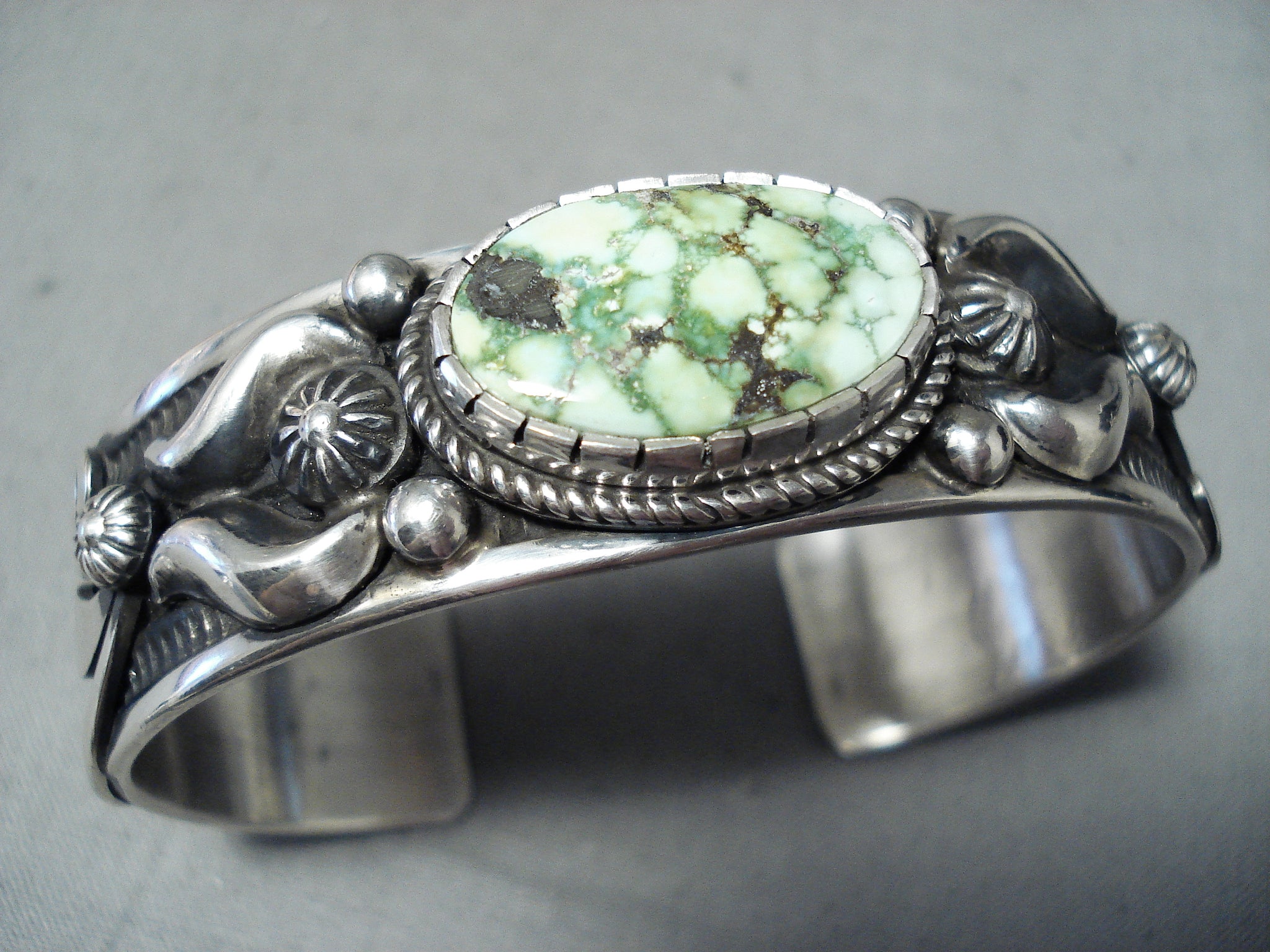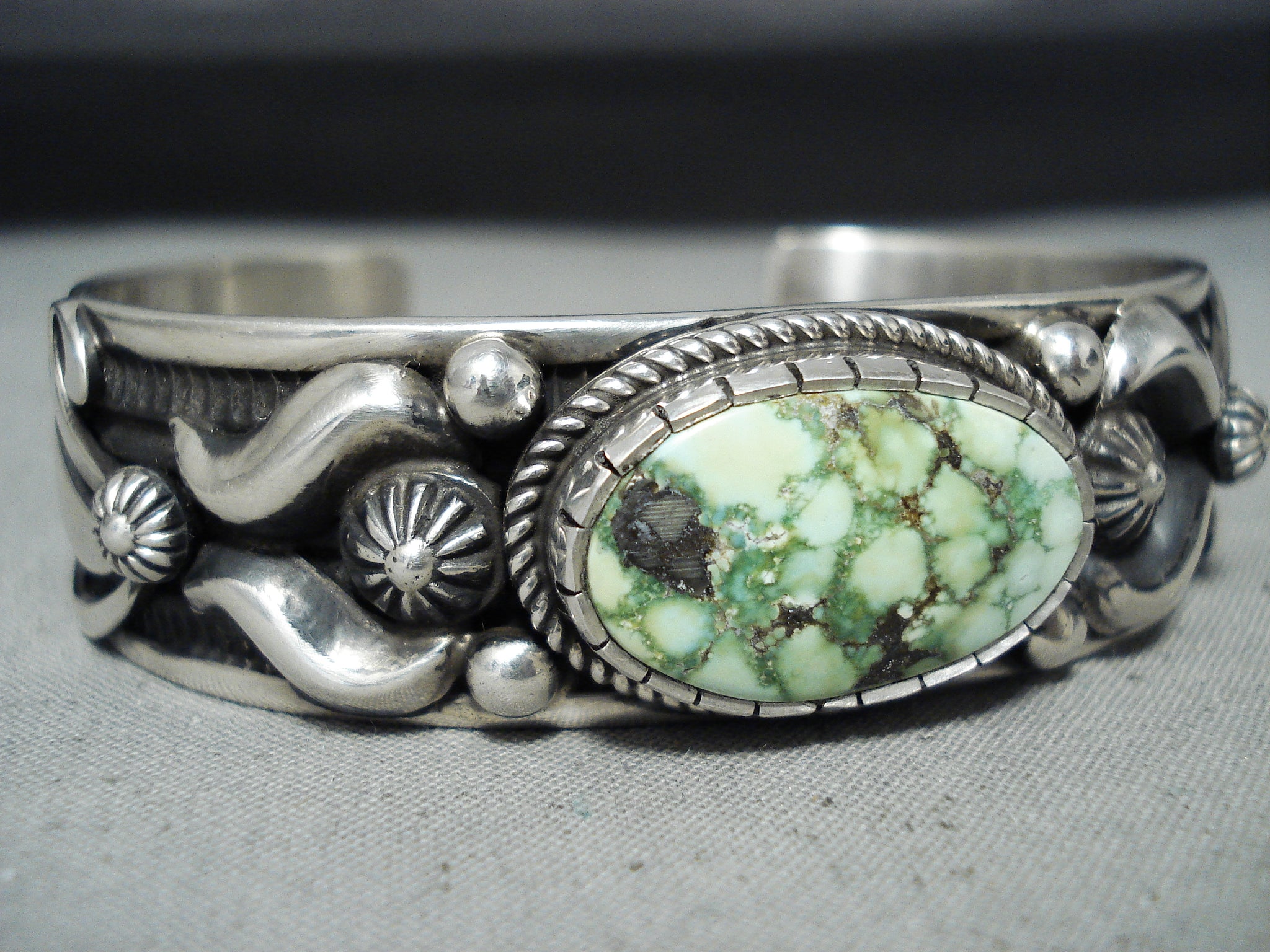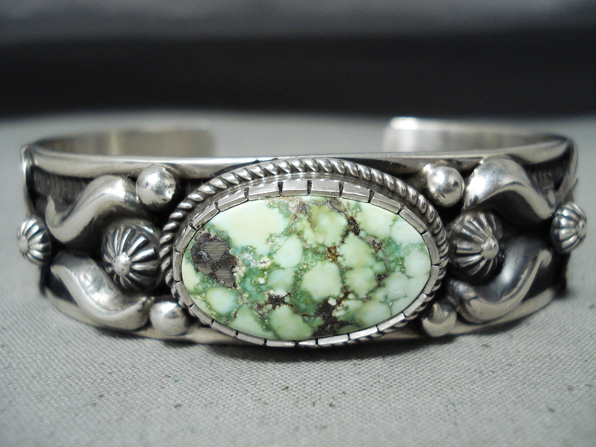 Breathtaking Native American Navajo Green Spiderweb Turquoise Sterling Silver Bracelet