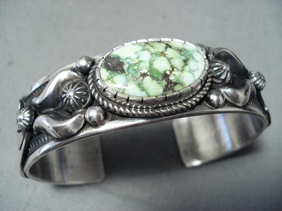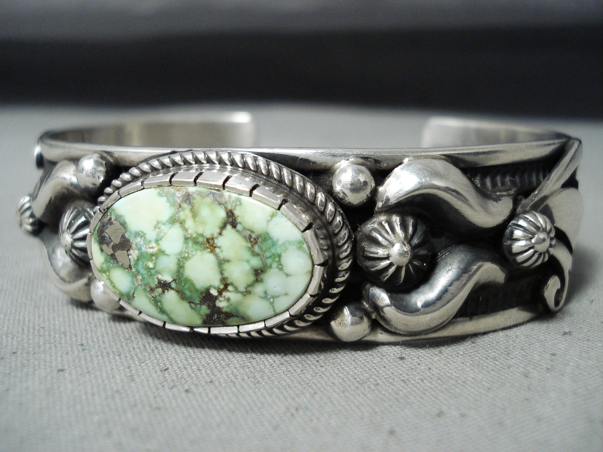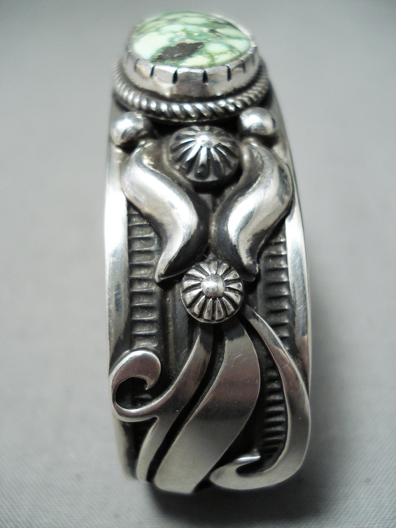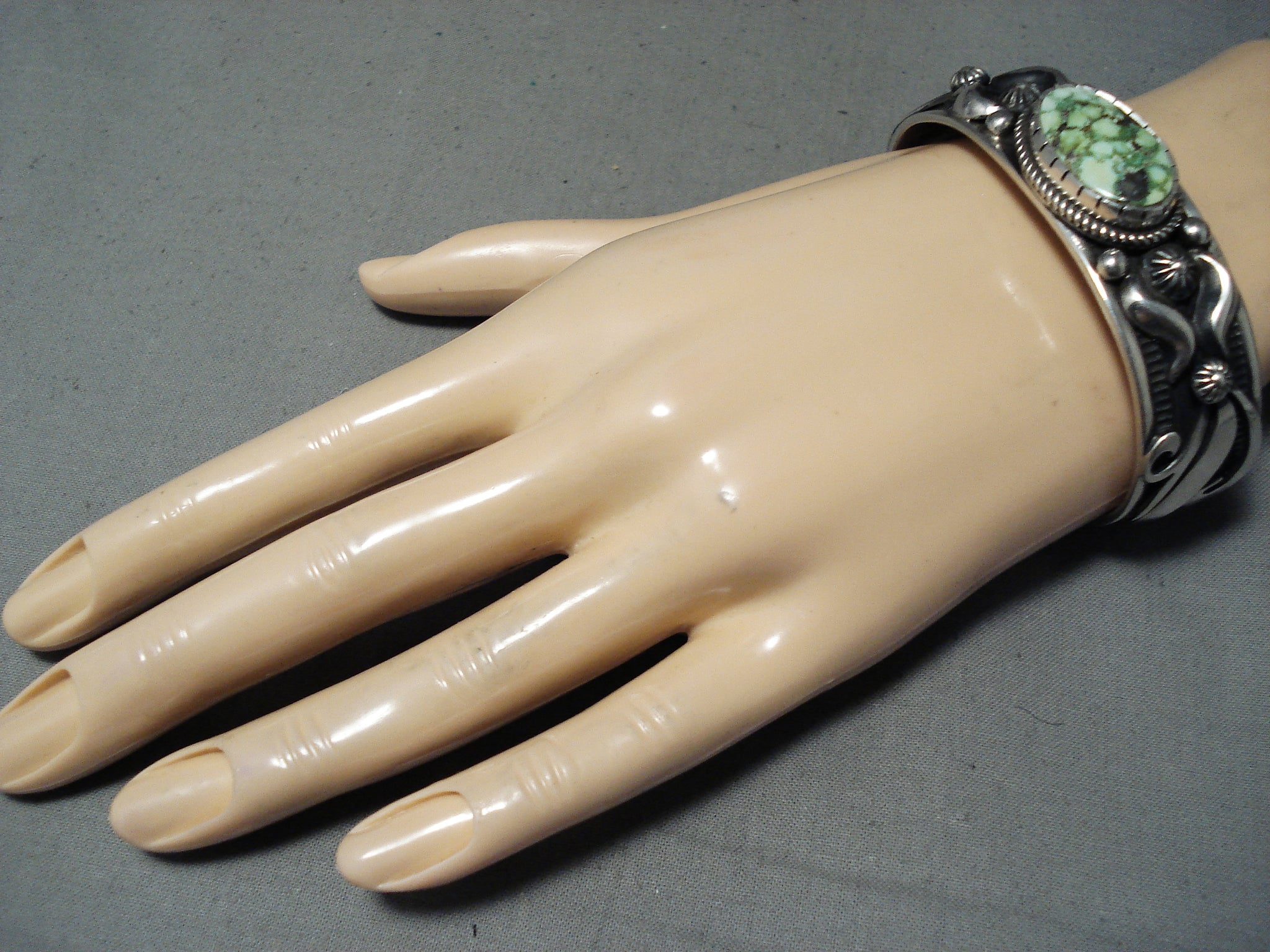 Breathtaking Native American Navajo Green Spiderweb Turquoise Sterling Silver Bracelet