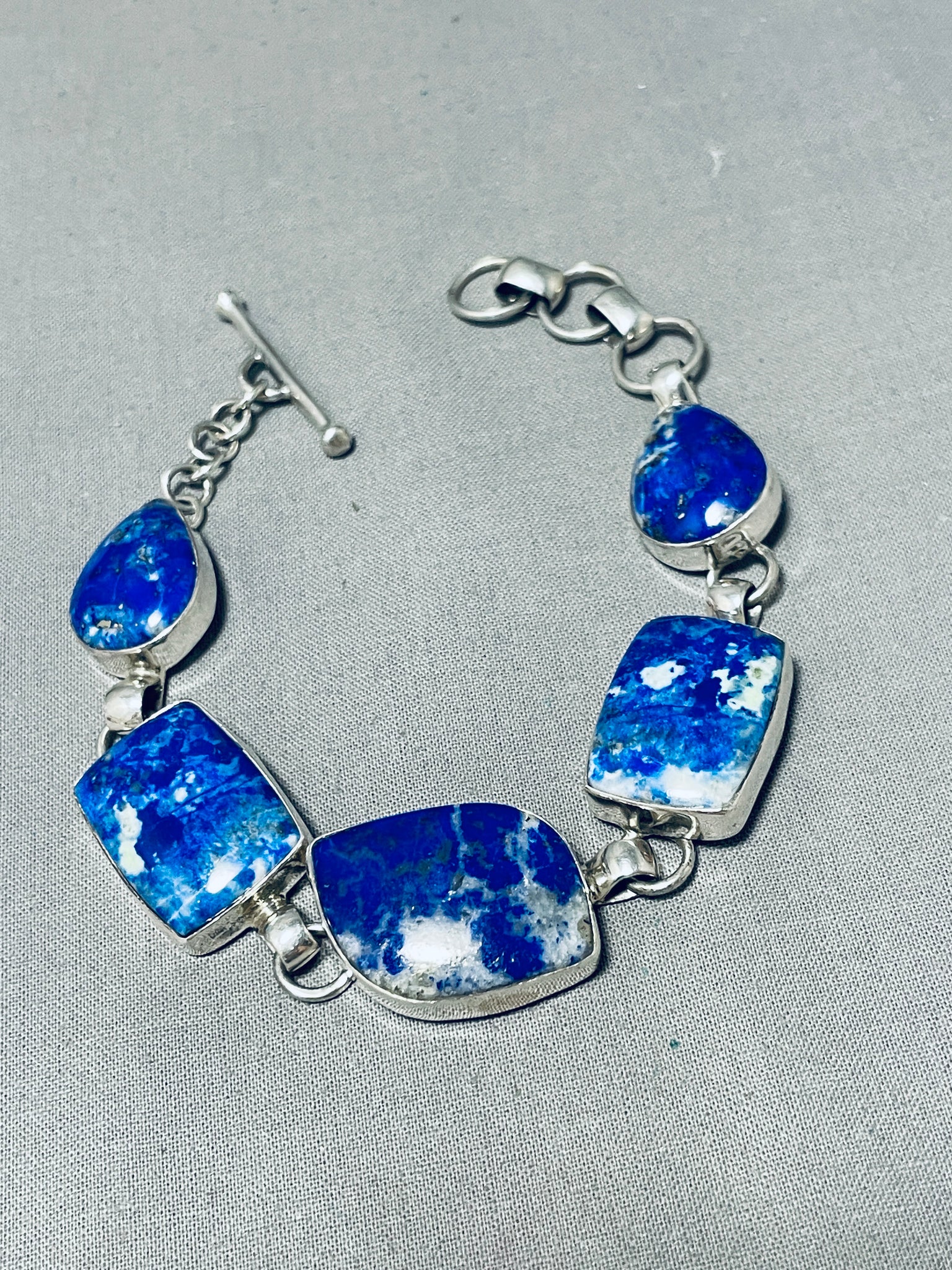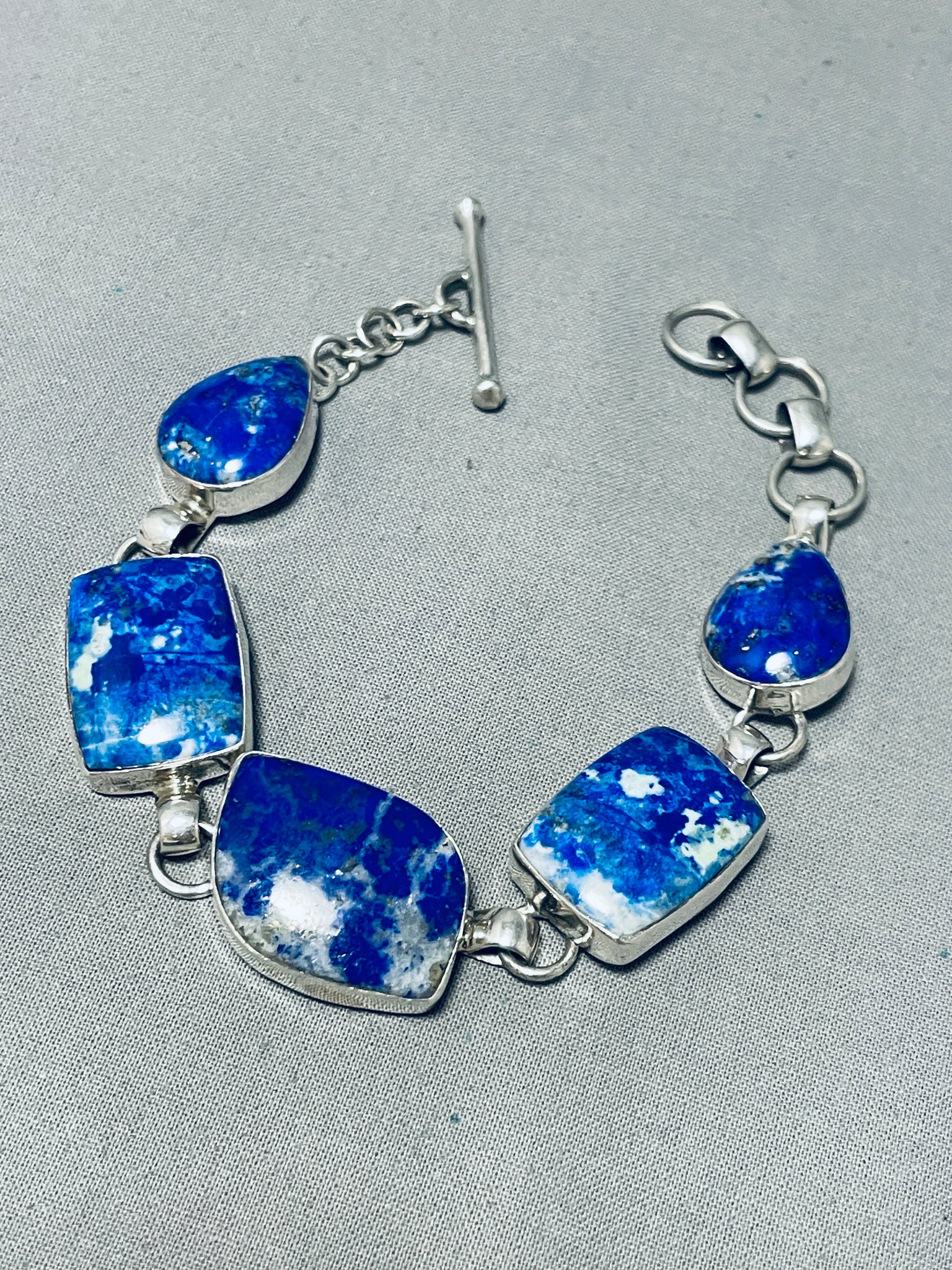 Breathtaking Native American Navajo Lapis Sterling Silver Link Bracelet