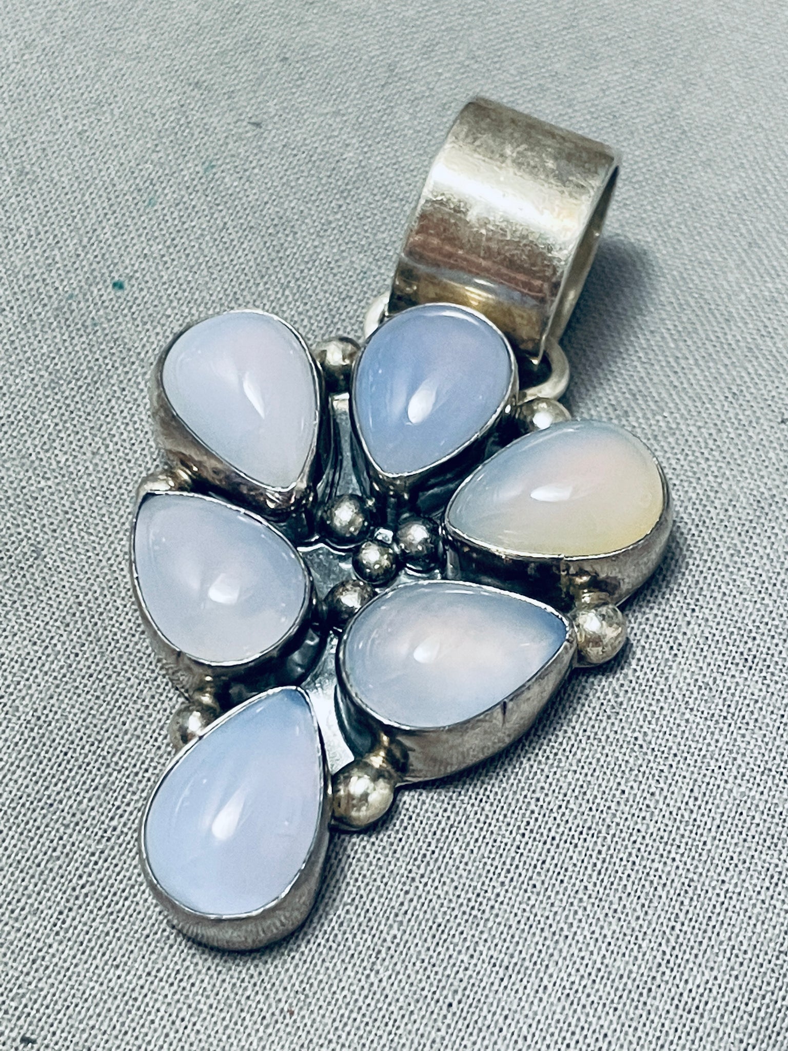 Breathtaking Native American Navajo Moonstone Sterling Silver Pendant Signed