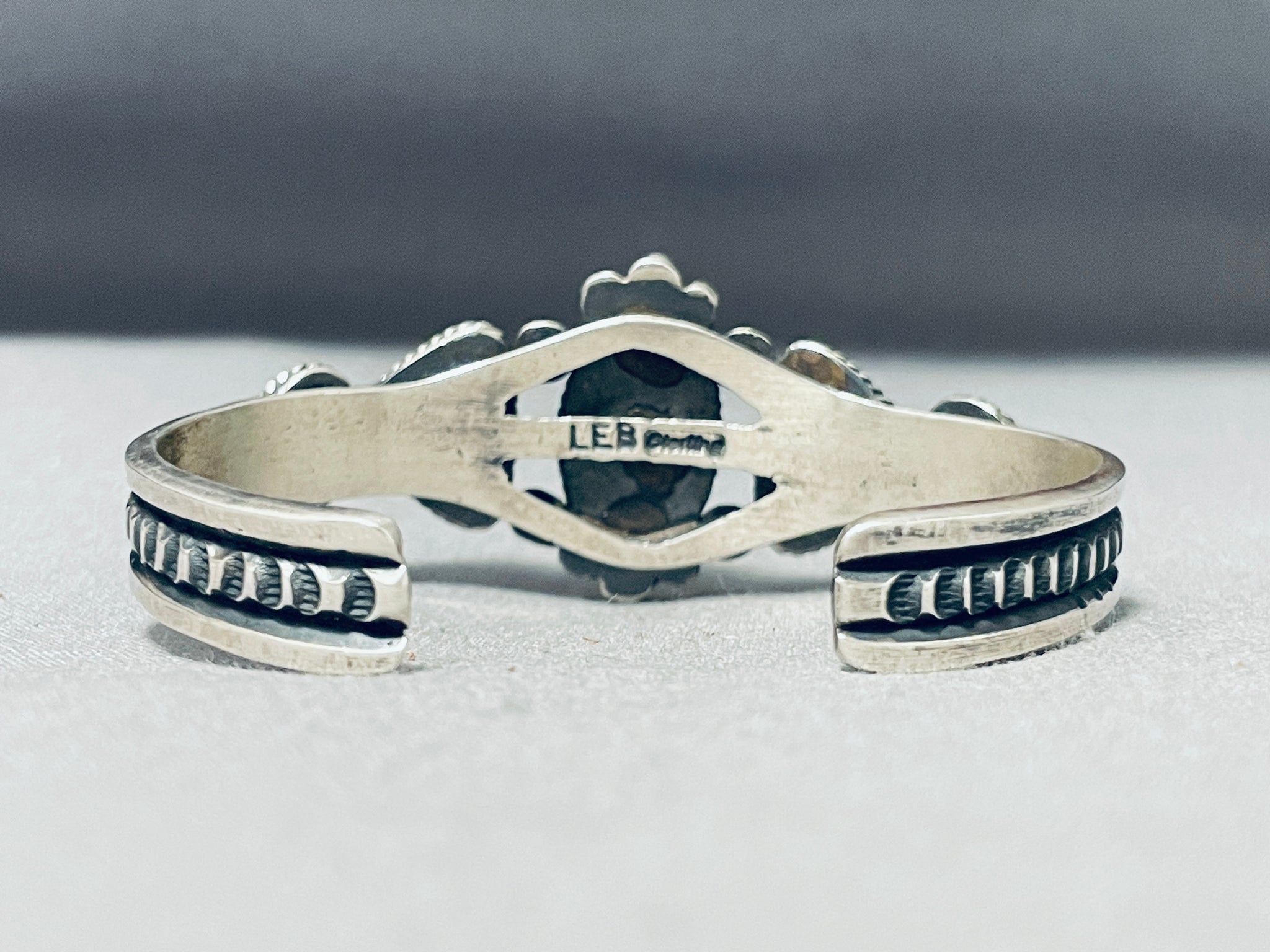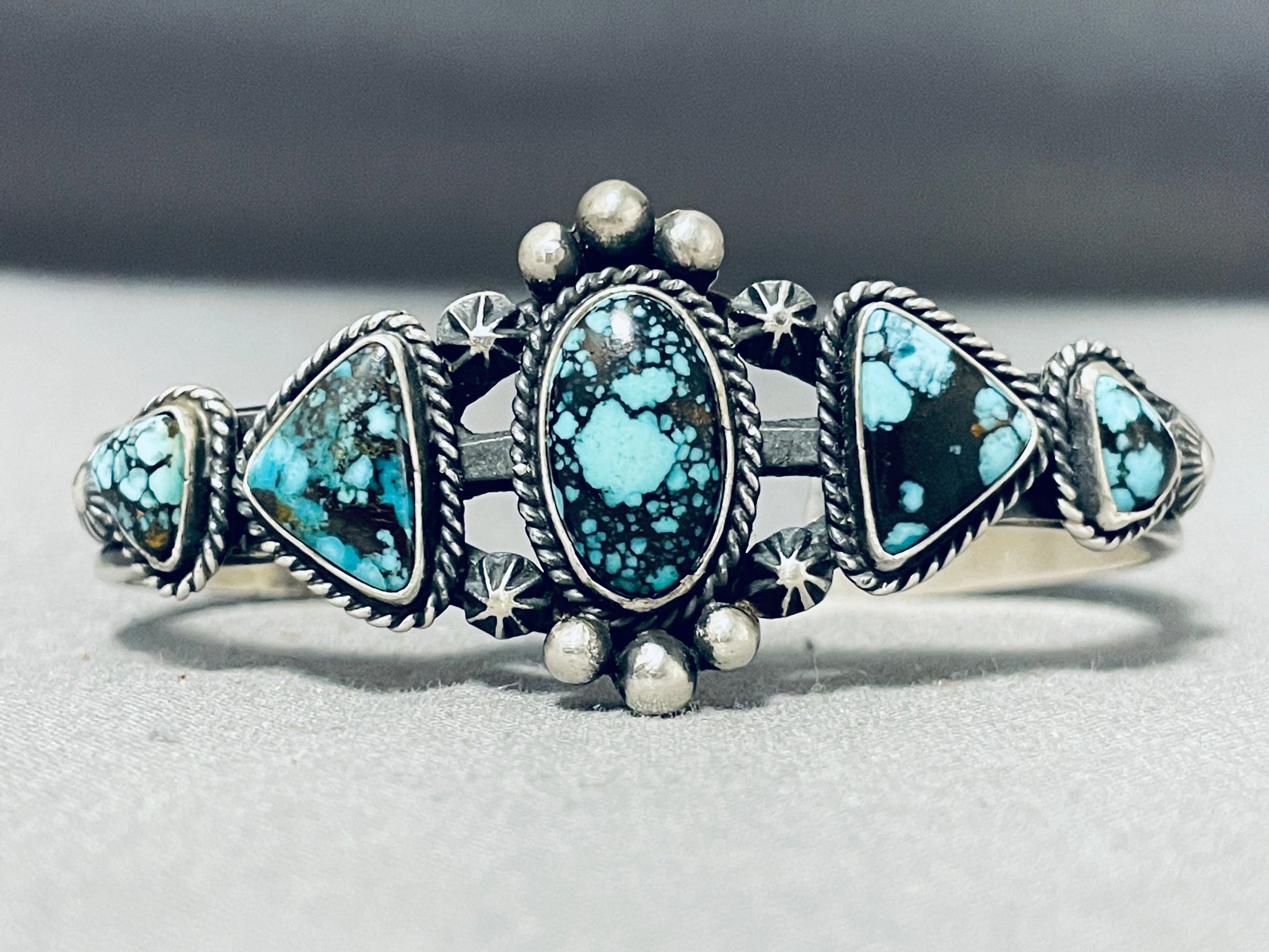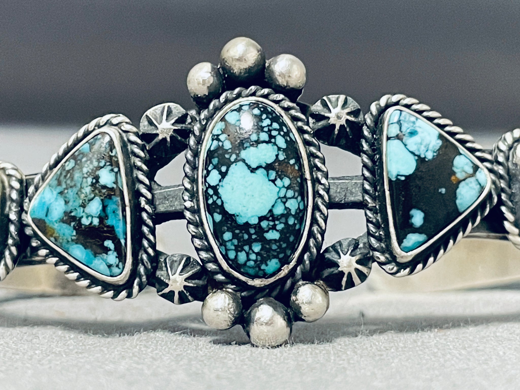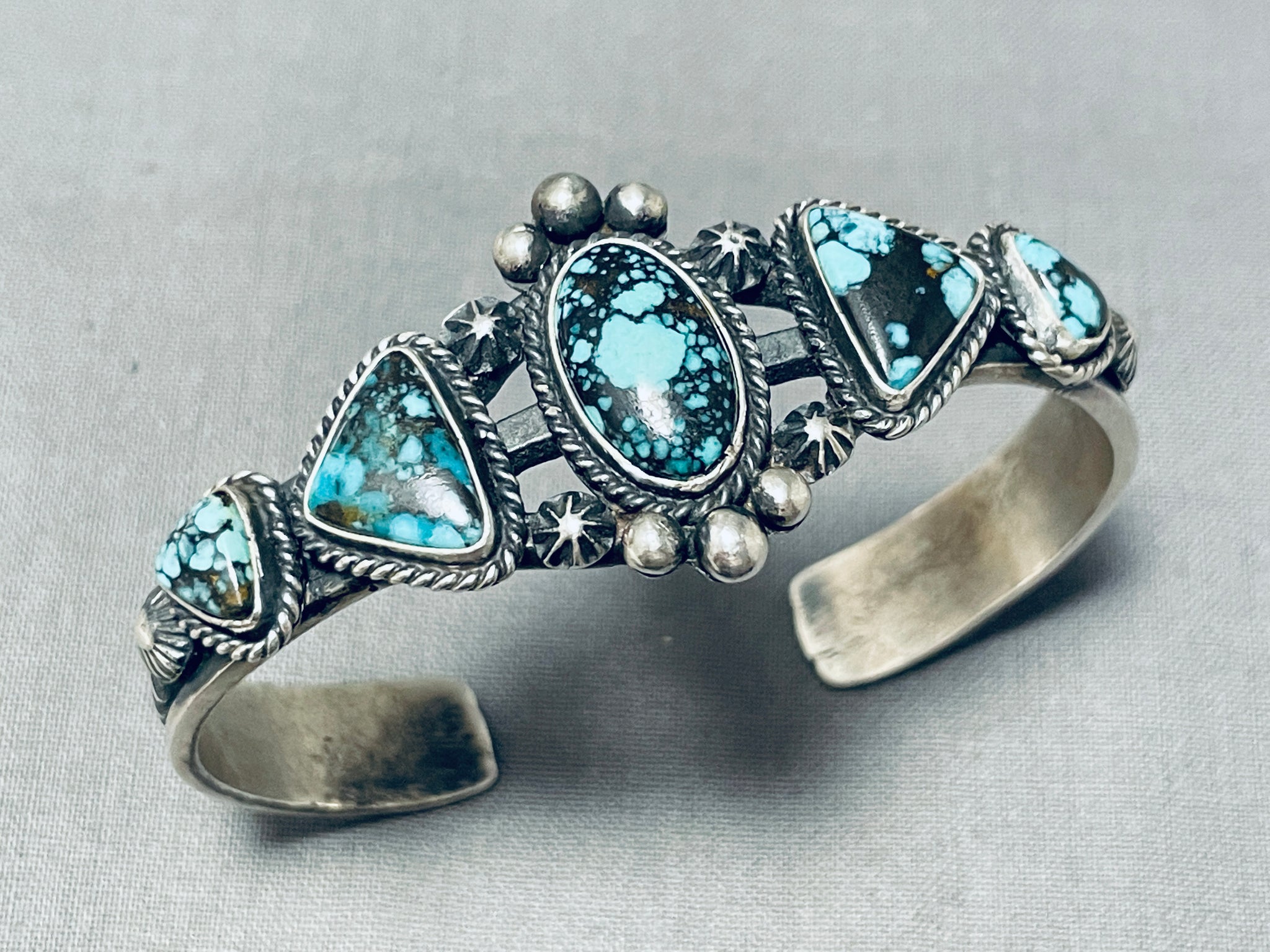 Breathtaking Native American Navajo Spiderweb Turquoise Sterling Silver Bracelet Signed