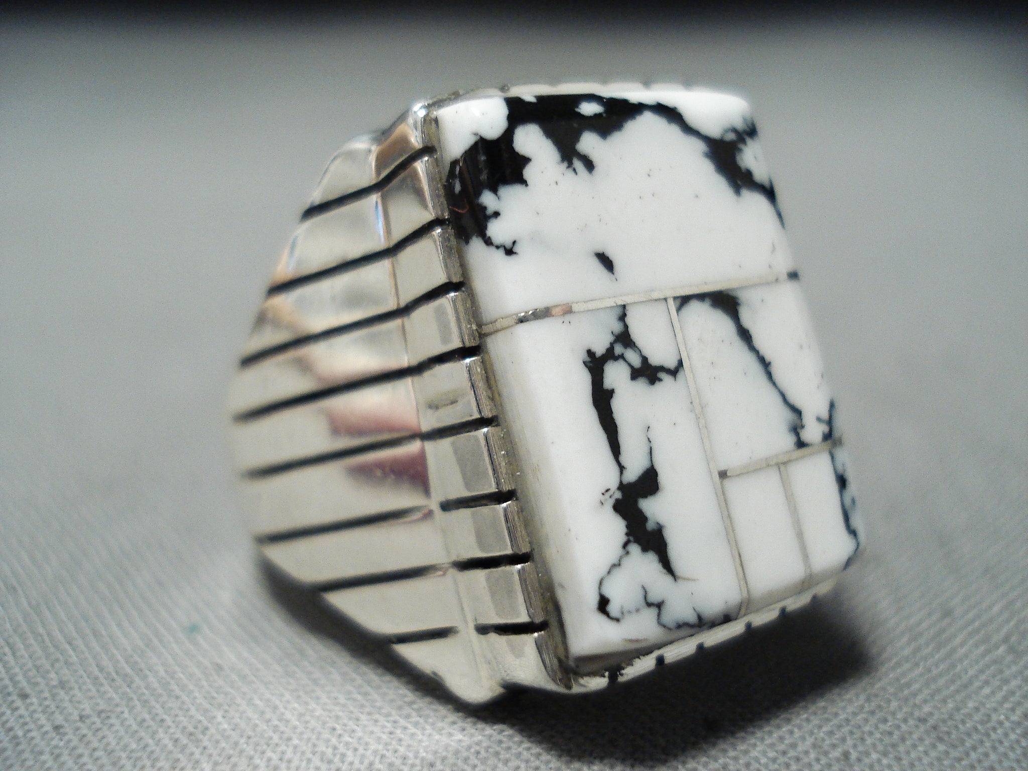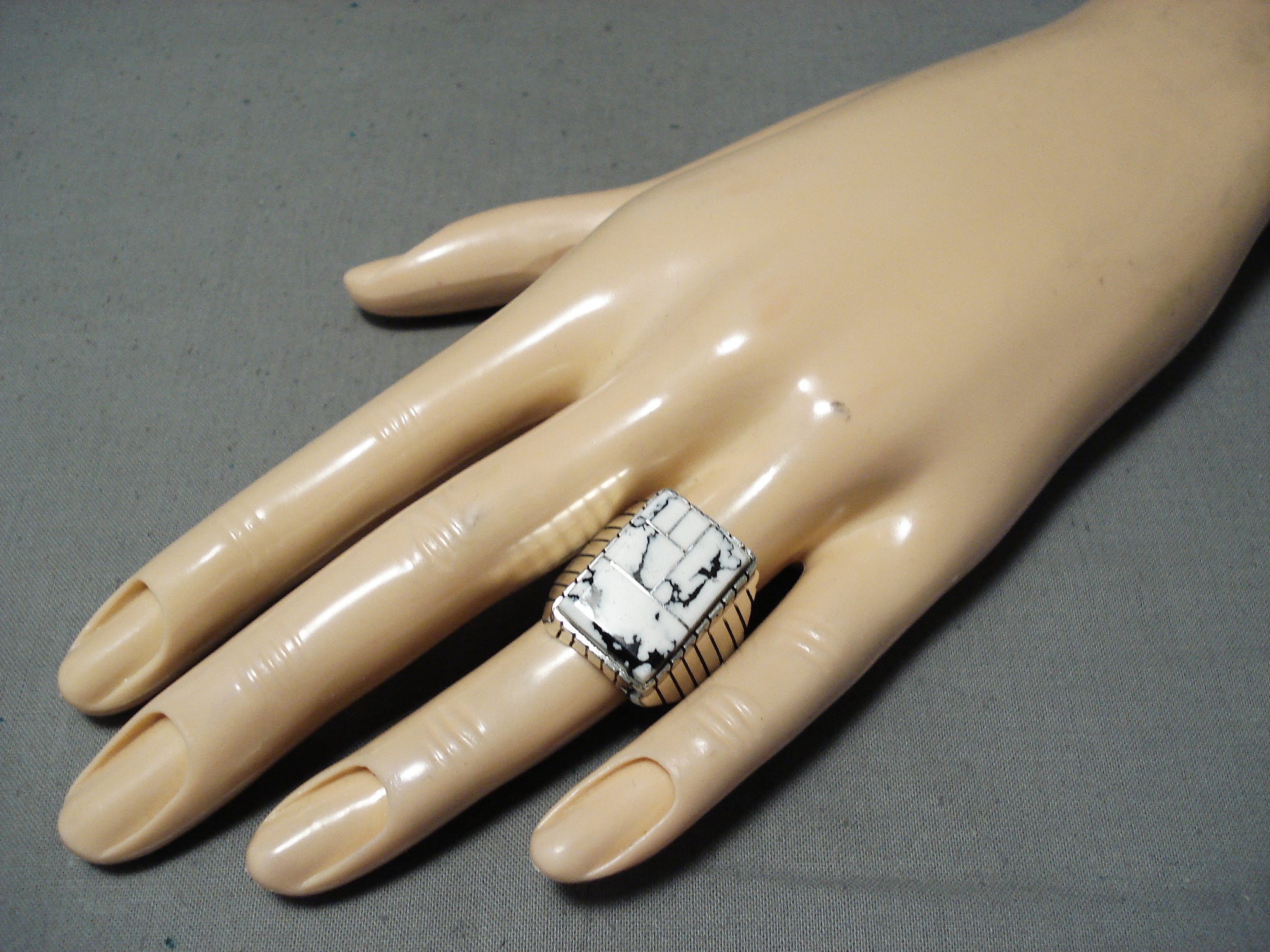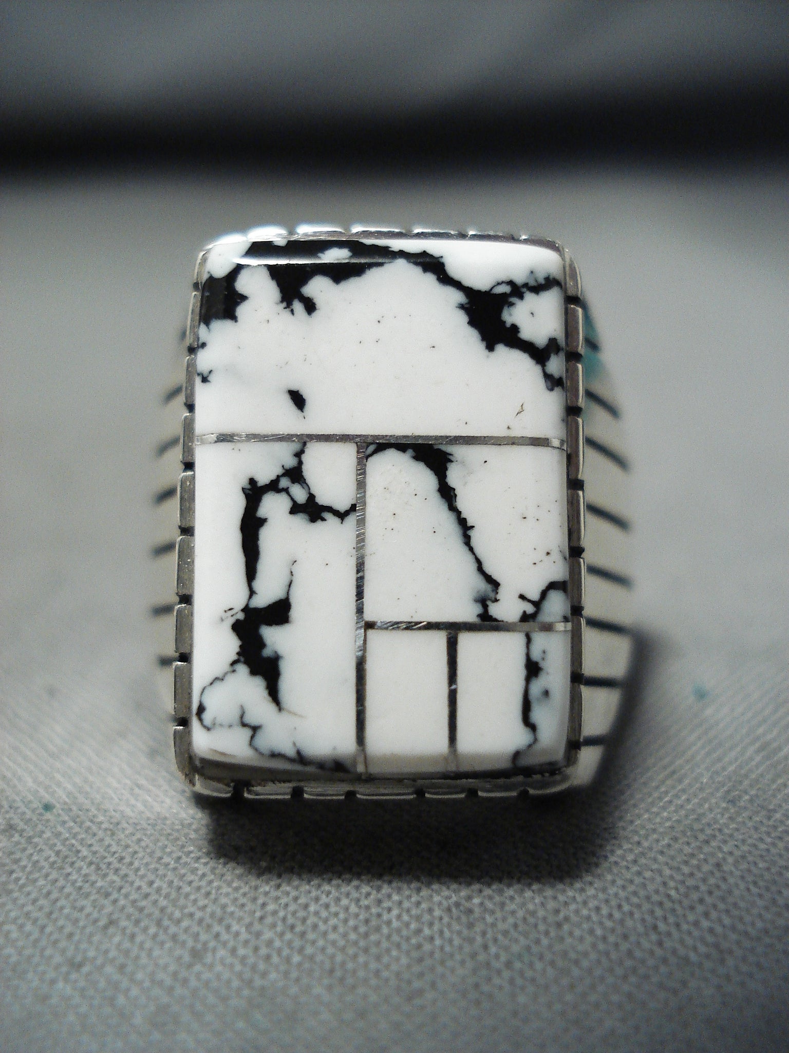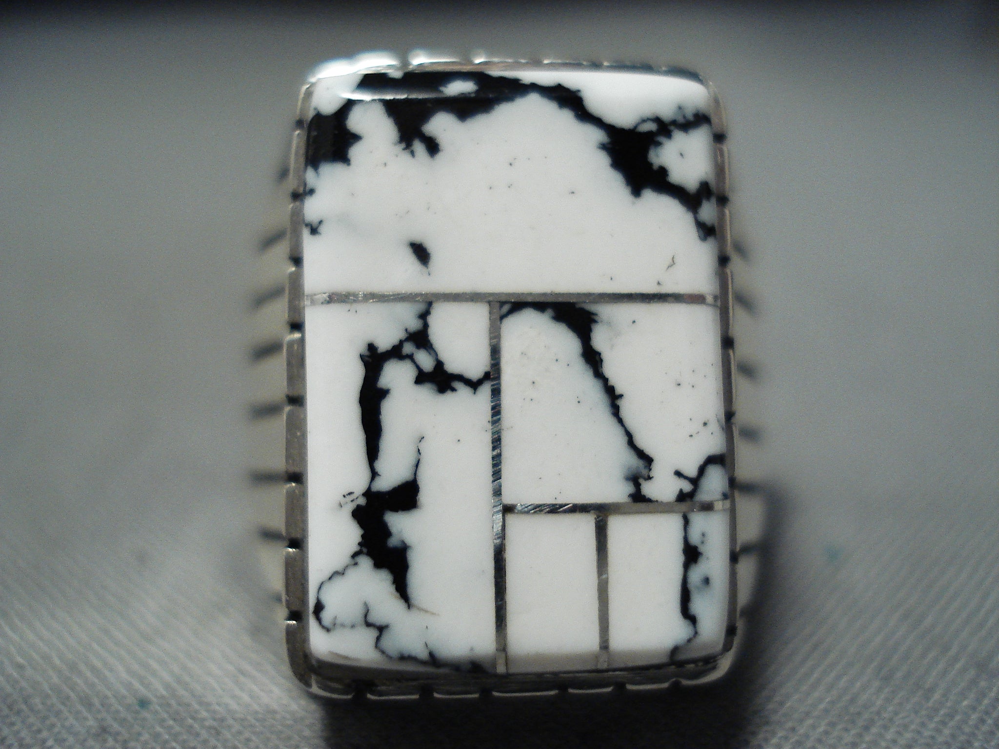 Breathtaking Native American Navajo White Buffalo Turquoise Sterling Silver Ring