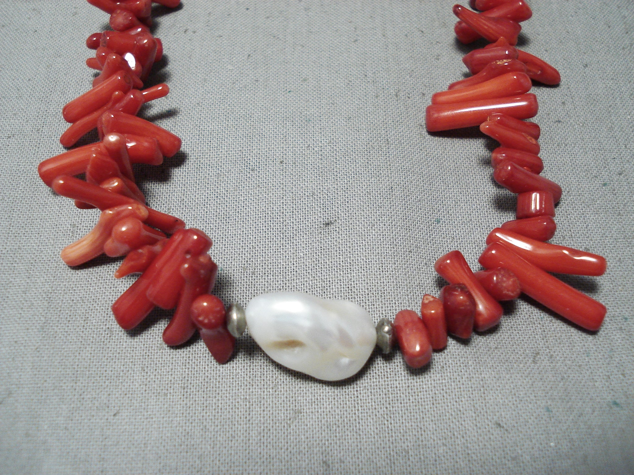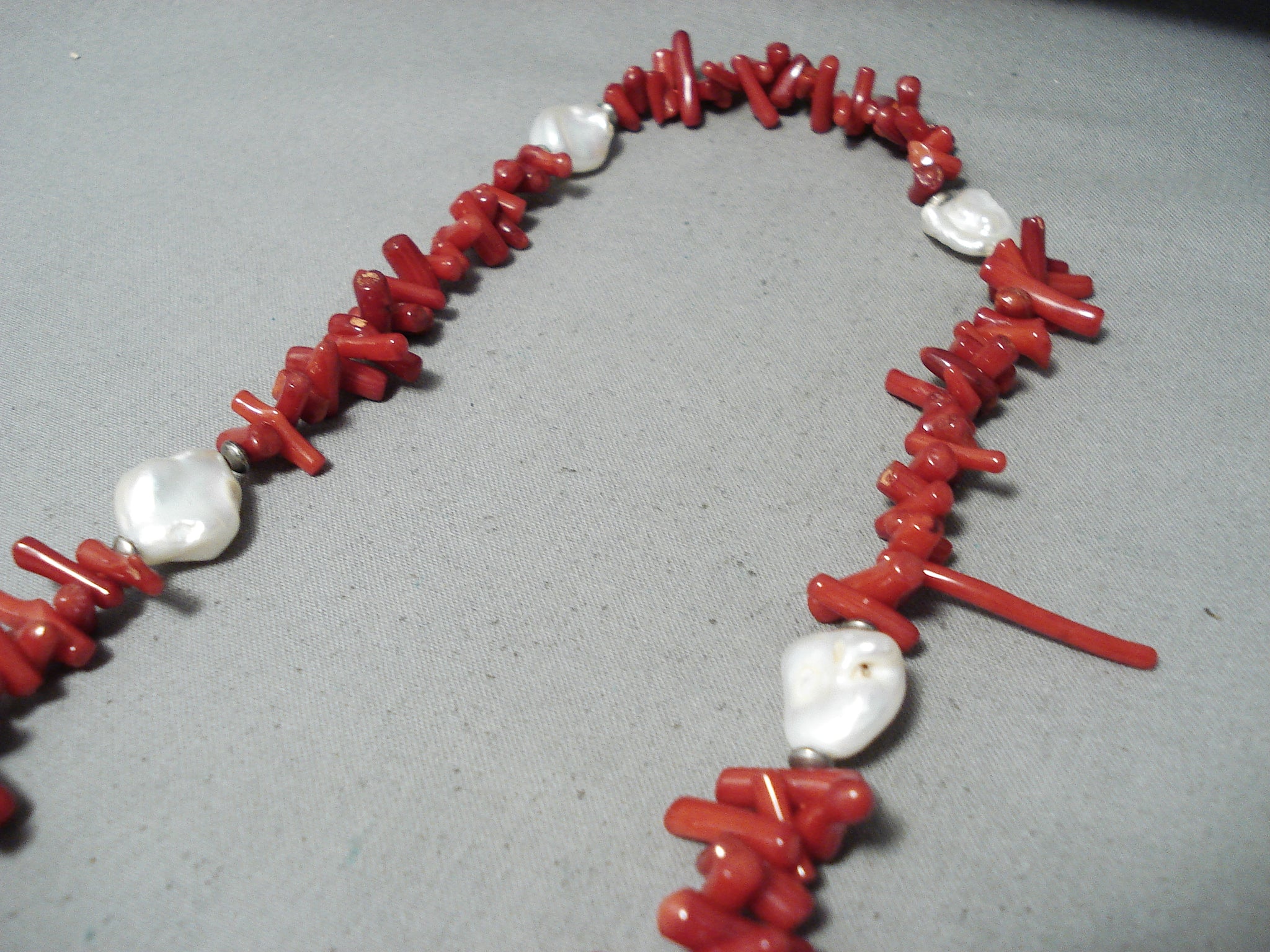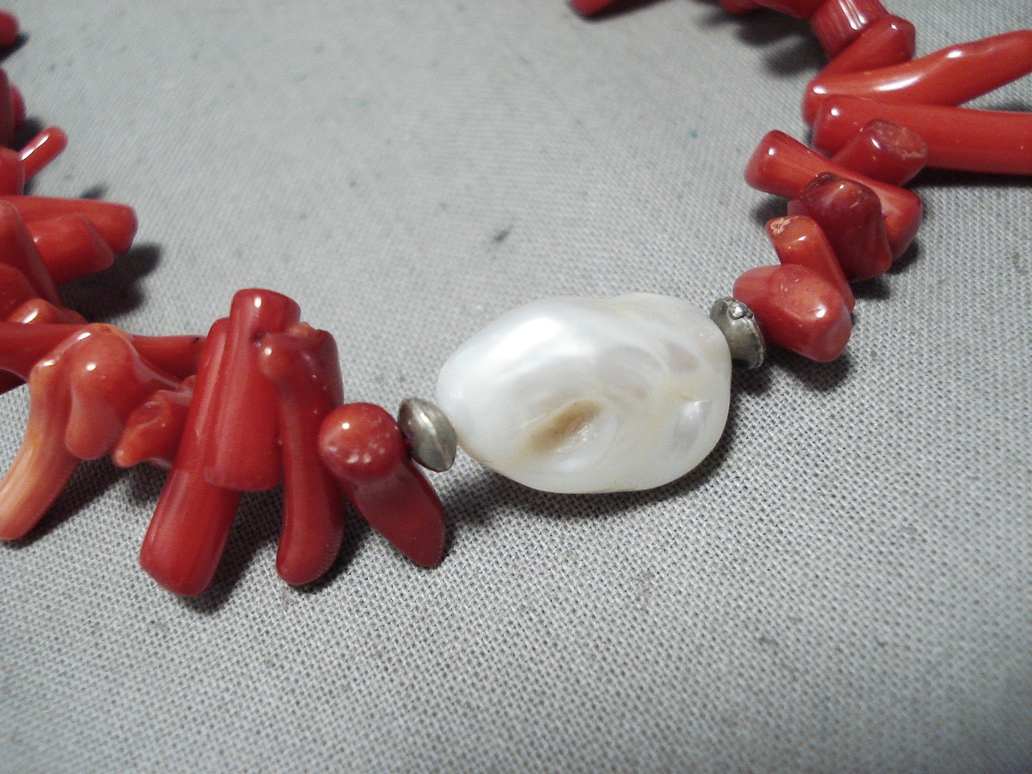 Breathtaking Navajo Native American Corals Freshwater Pearls Necklace