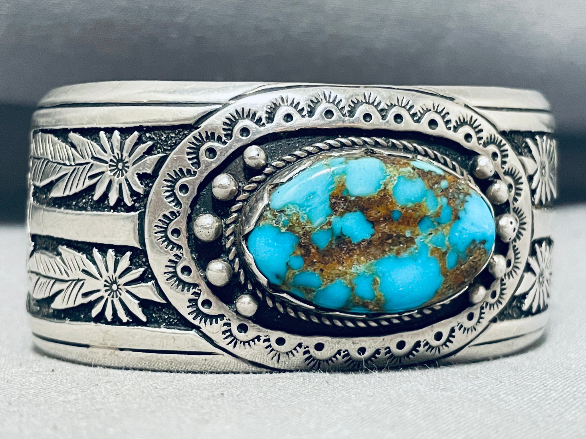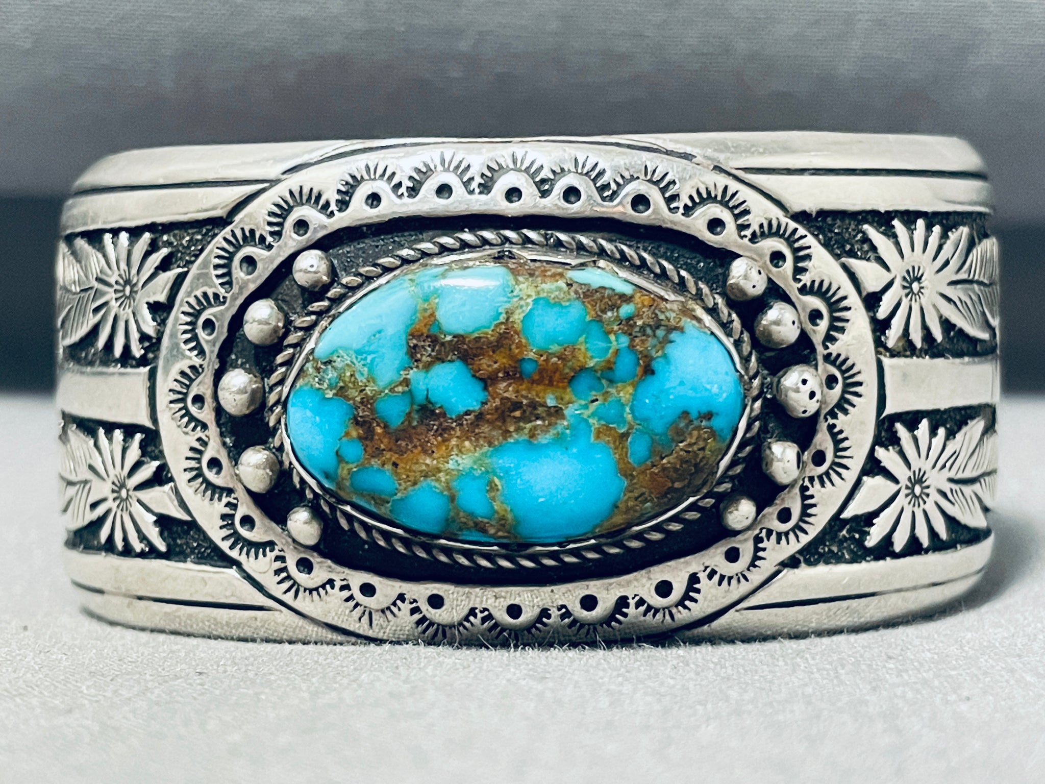 Breathtaking Signed Native American Navajo Candelaria Turquoise Sterling Silver Bracelet