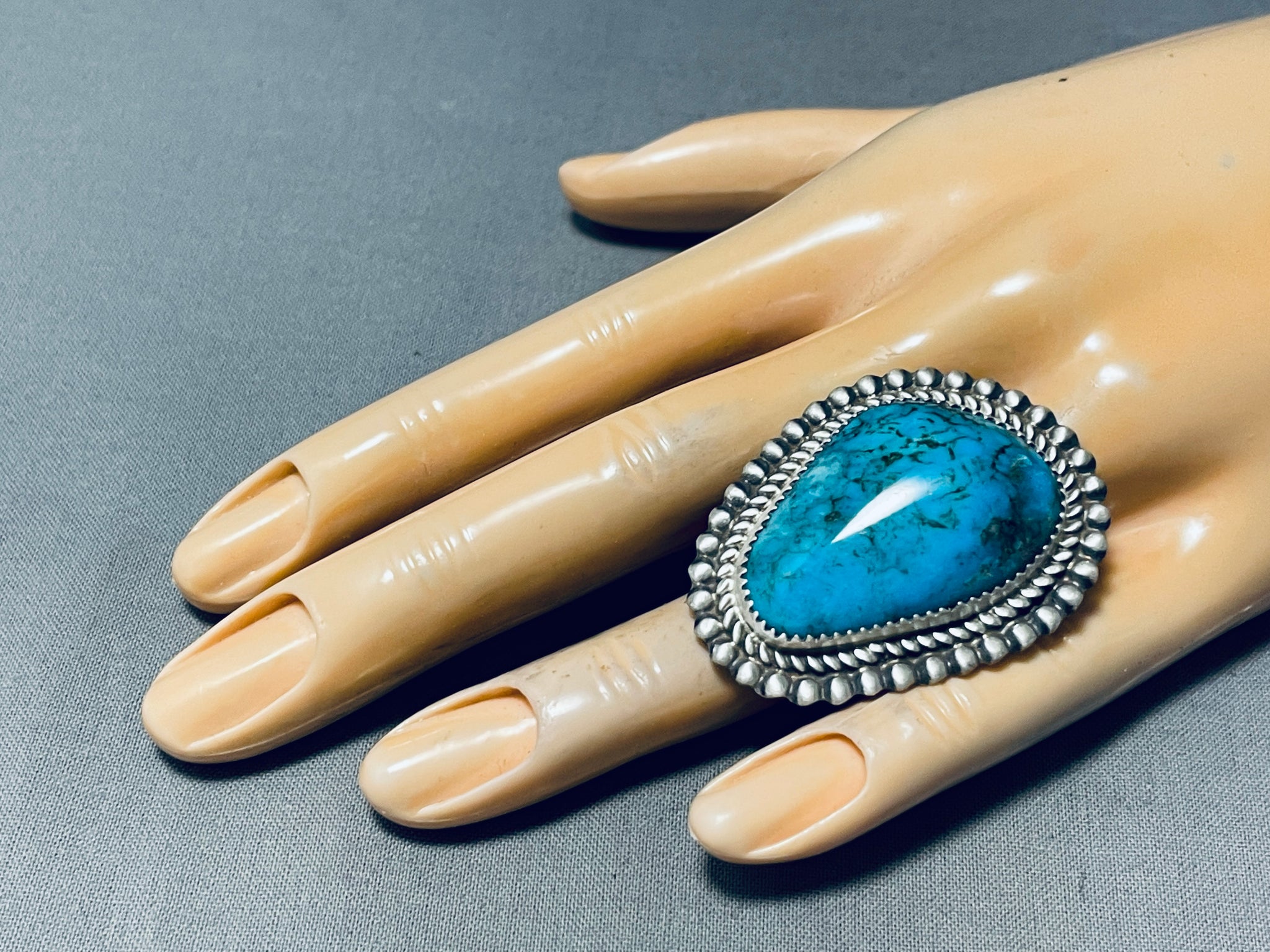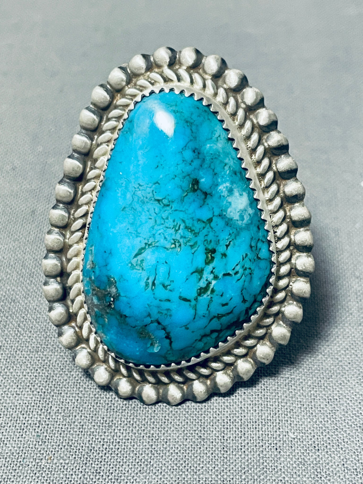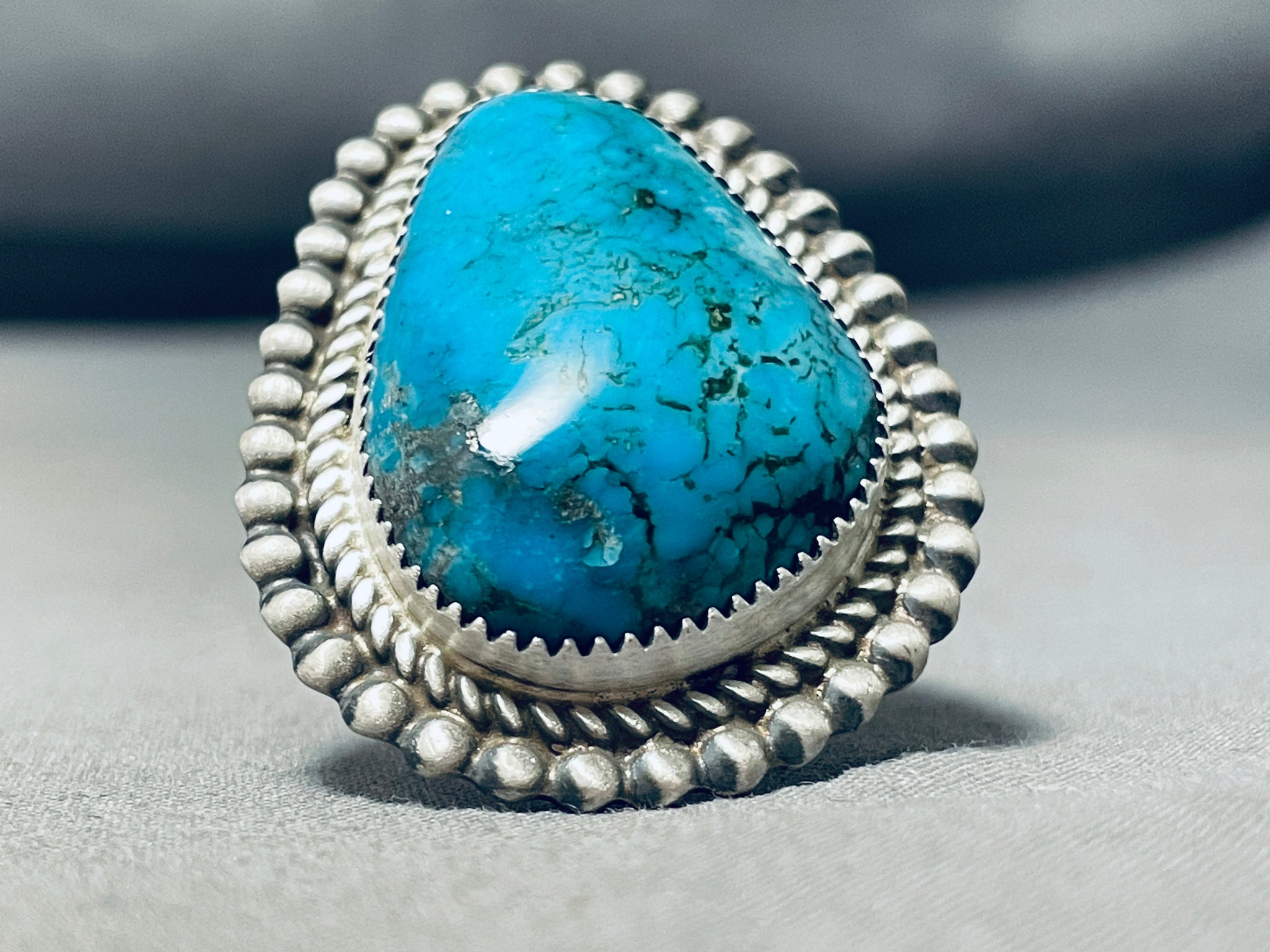 Breathtaking Signed Native American Navajo Pilot Mountain Turquoise Sterling Silver Ring