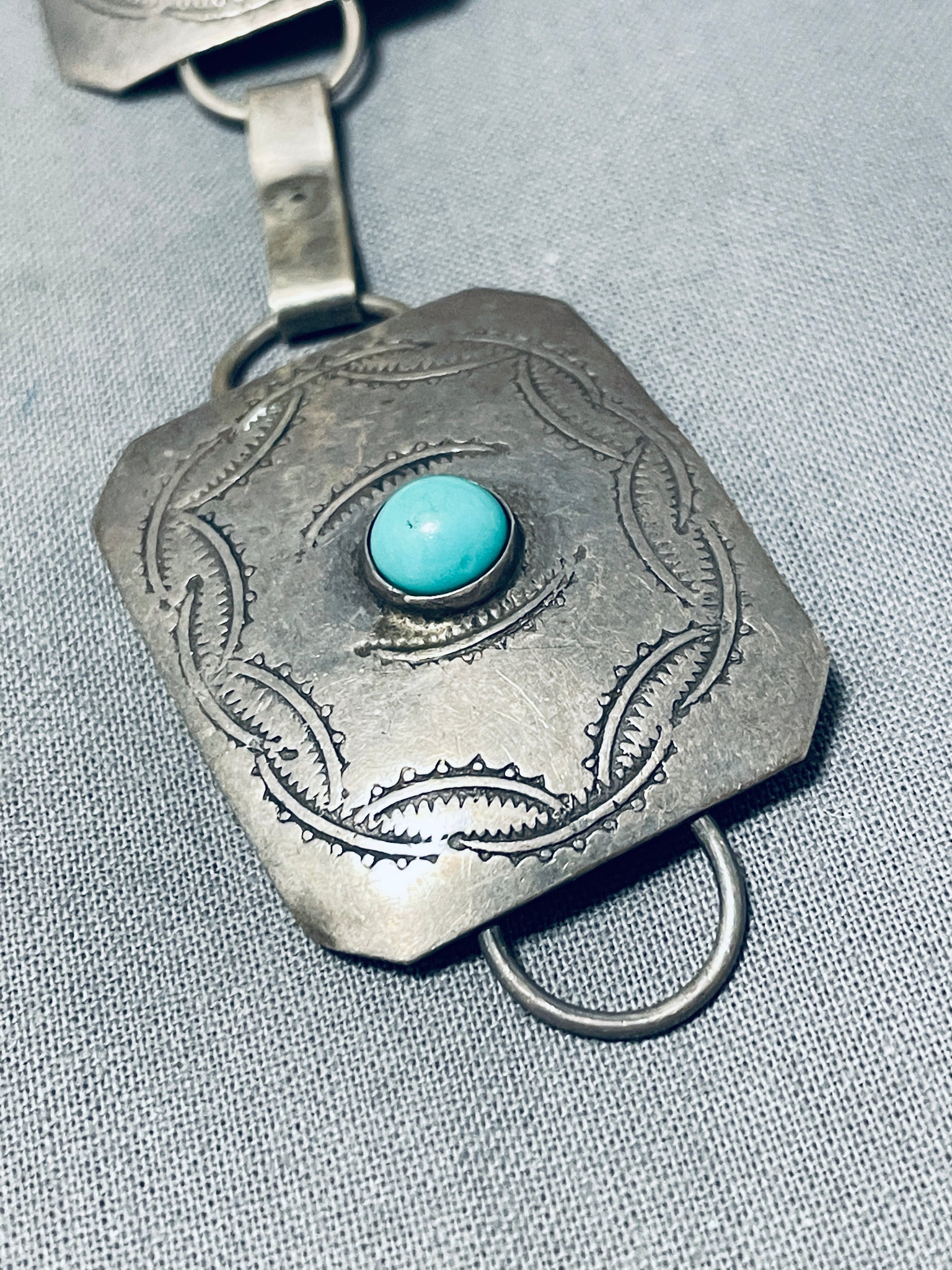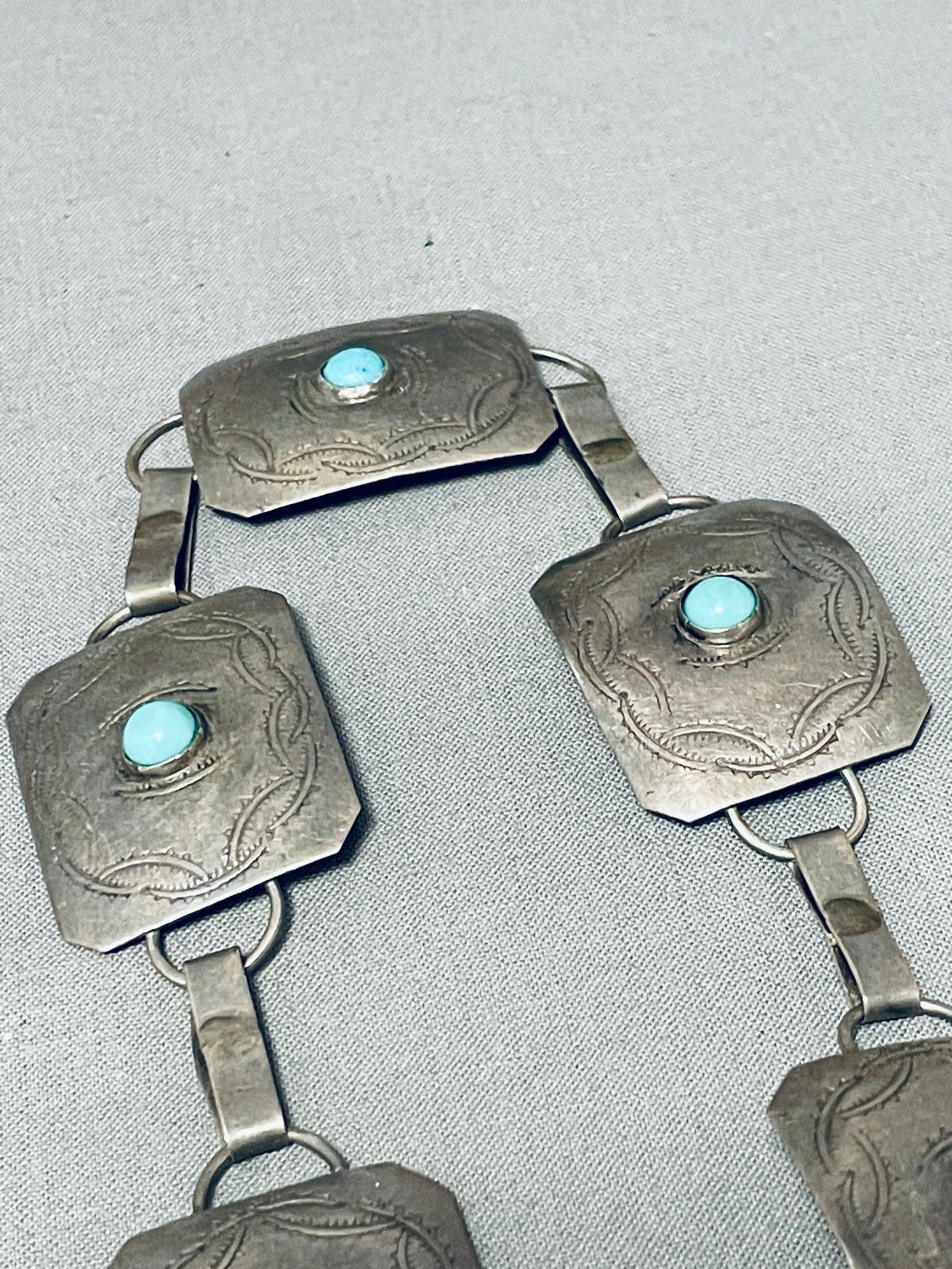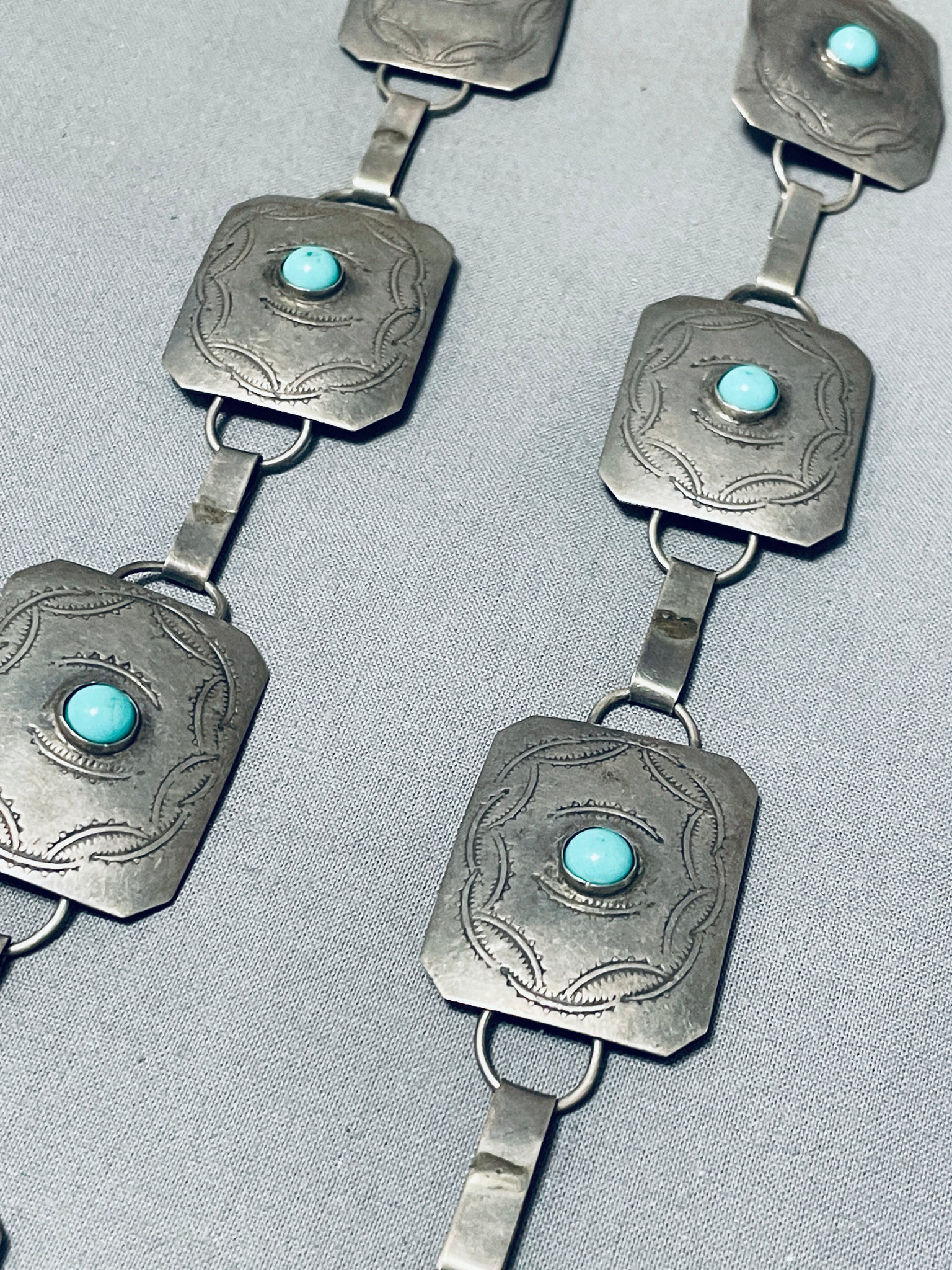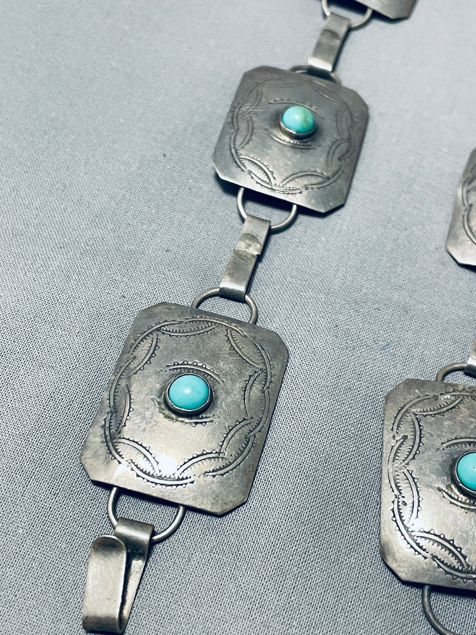 Breathtaking Vintage Native American Navajo Blue Gem Turquoise Sterling Silver Concho Belt