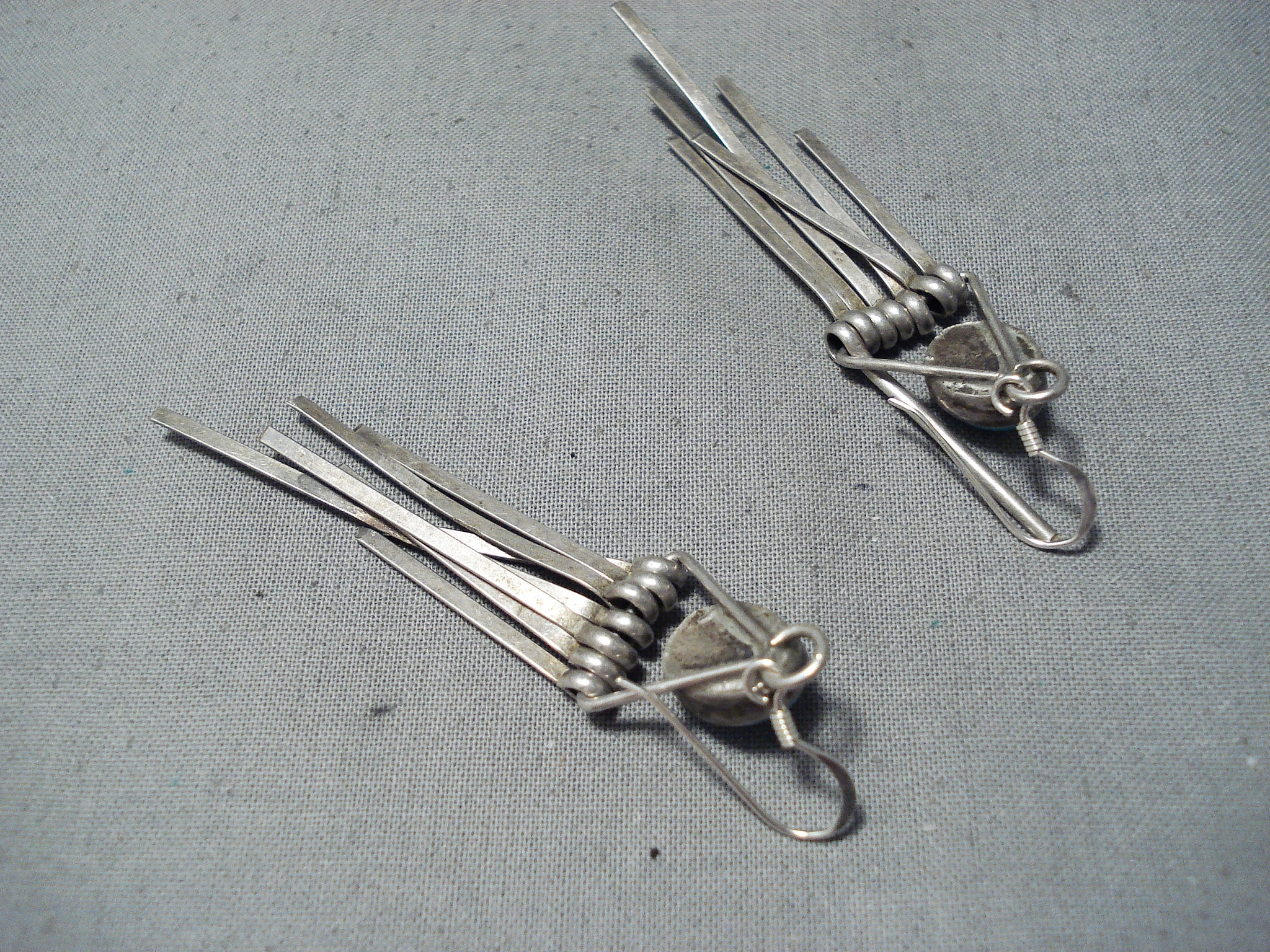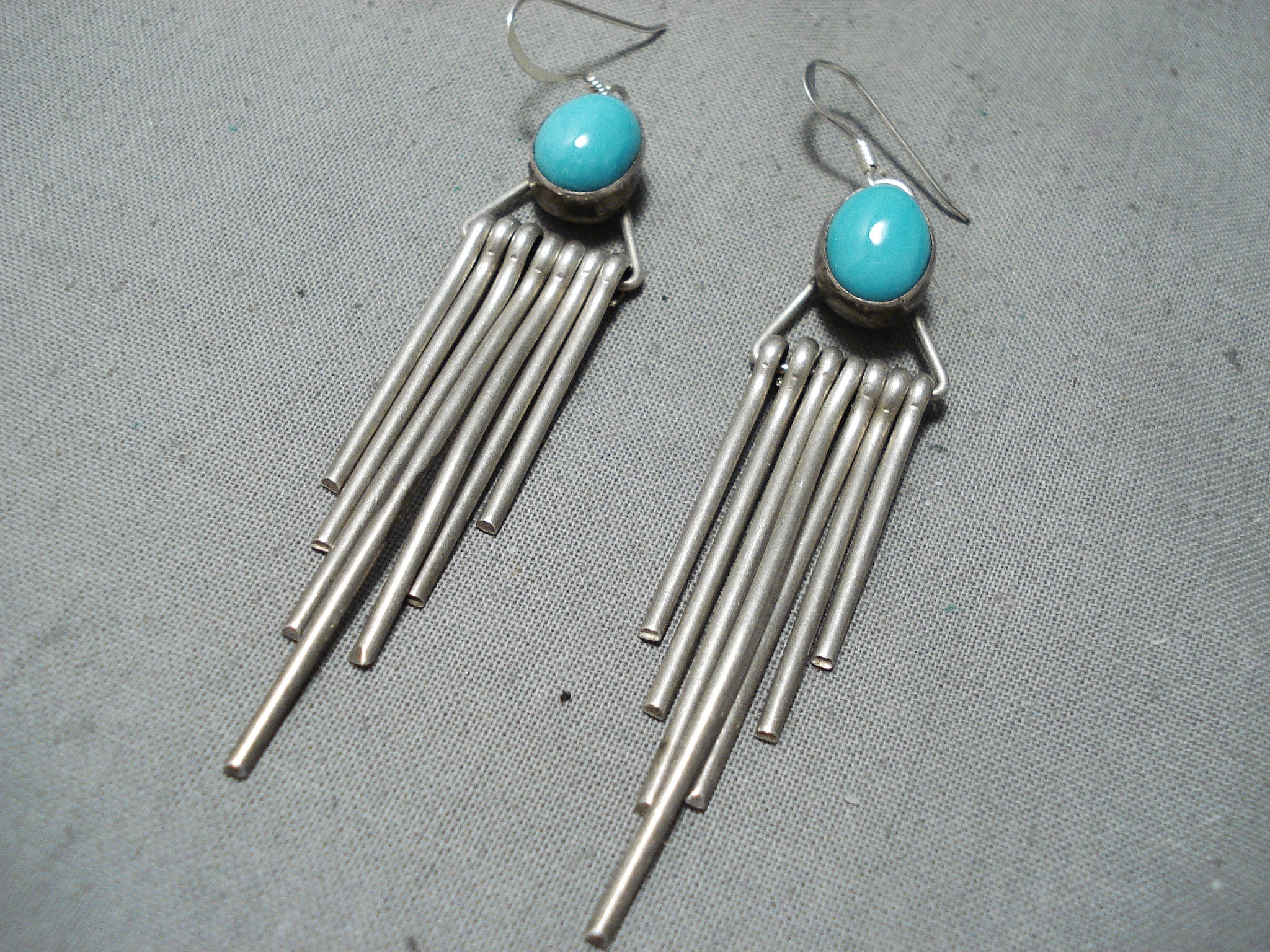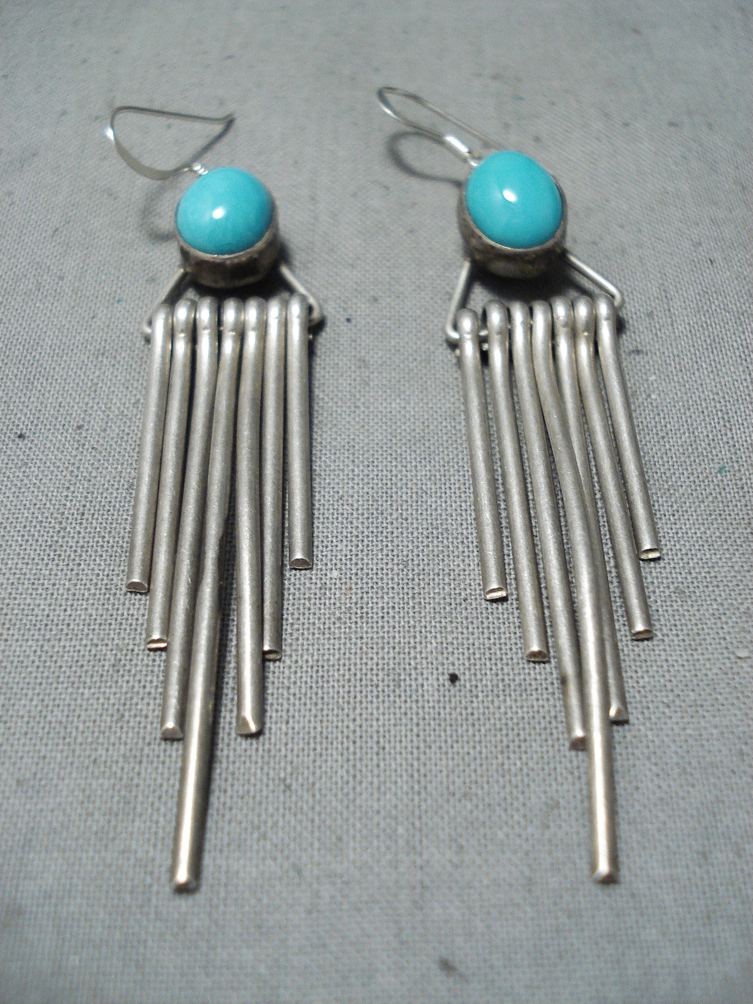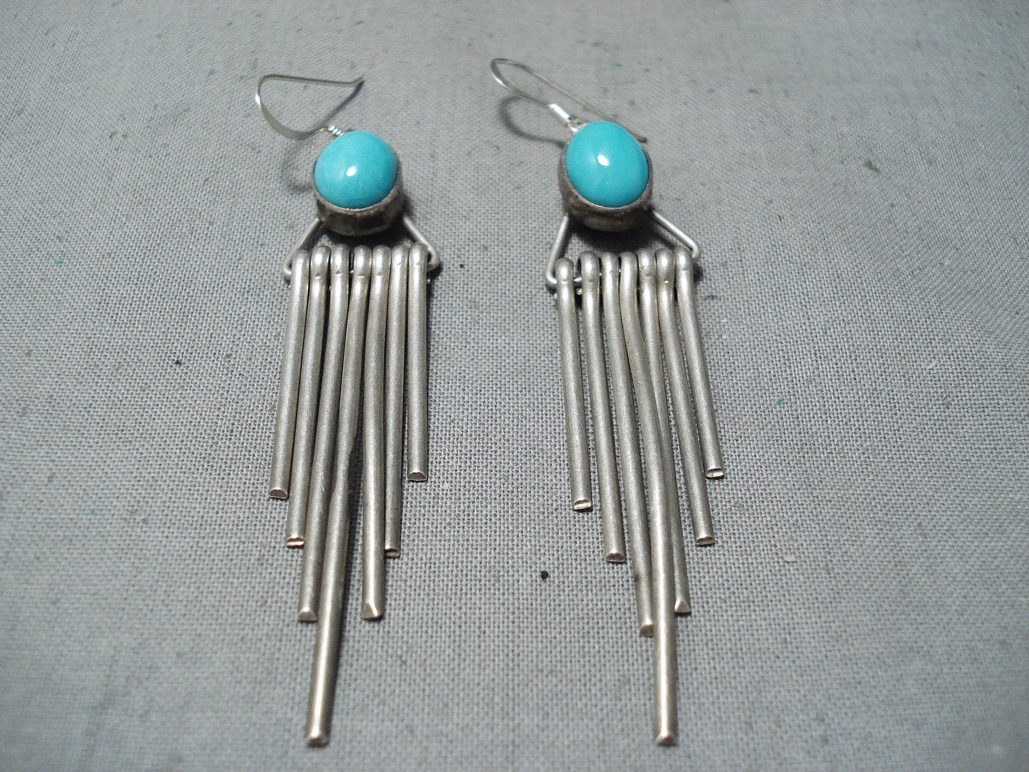 Breathtaking Vintage Native American Navajo Blue Gem Turquoise Sterling Silver Earrings