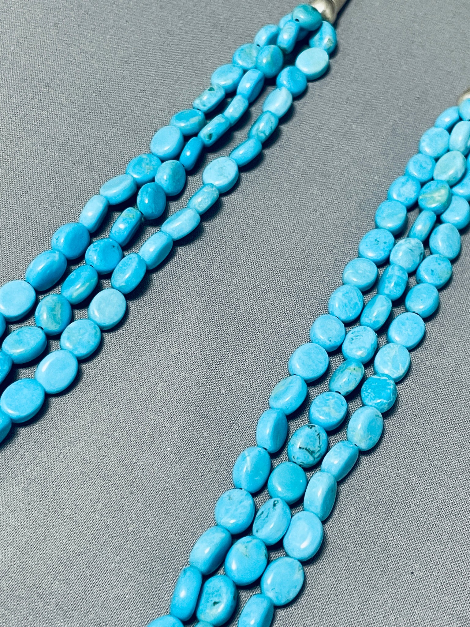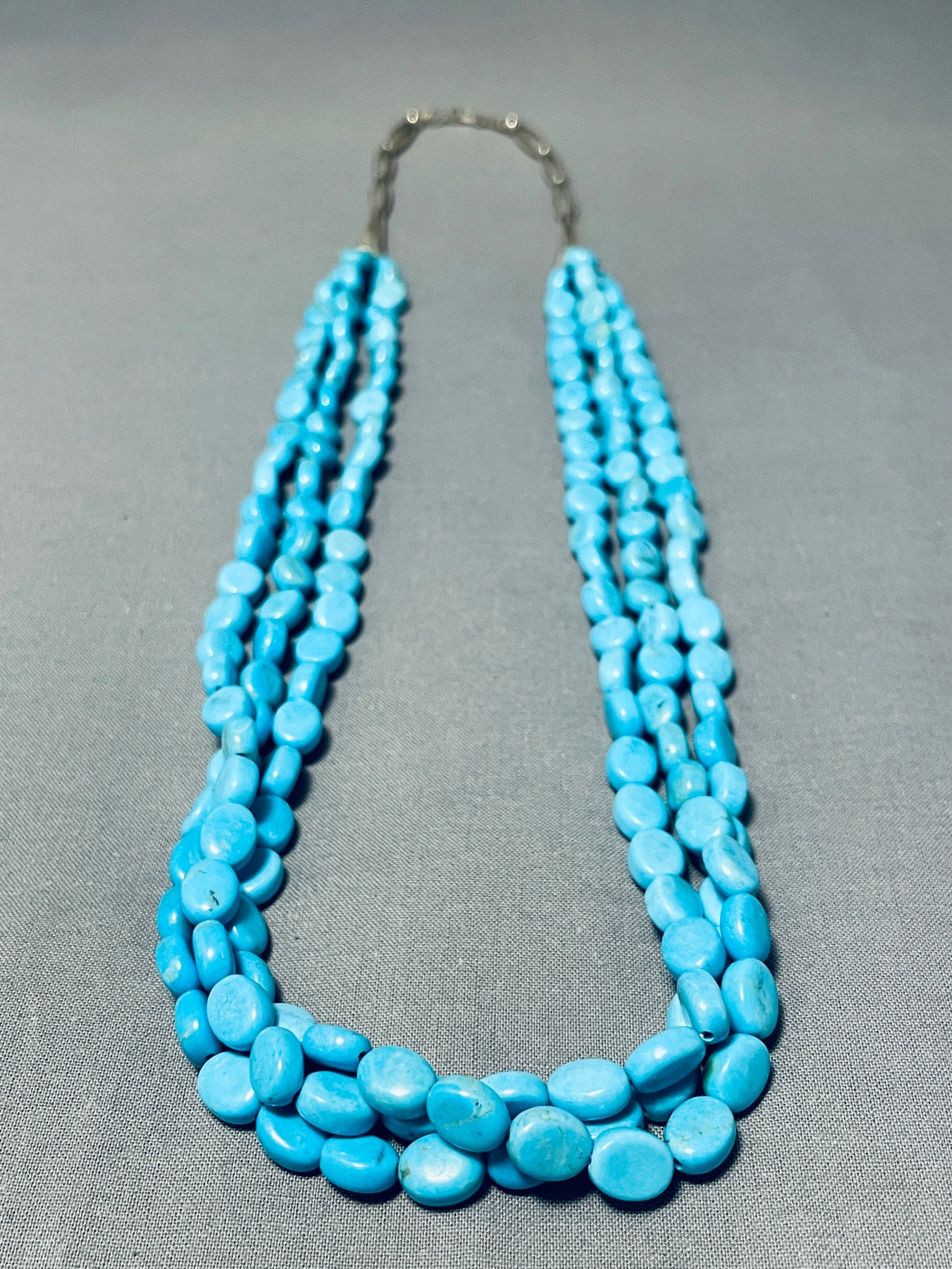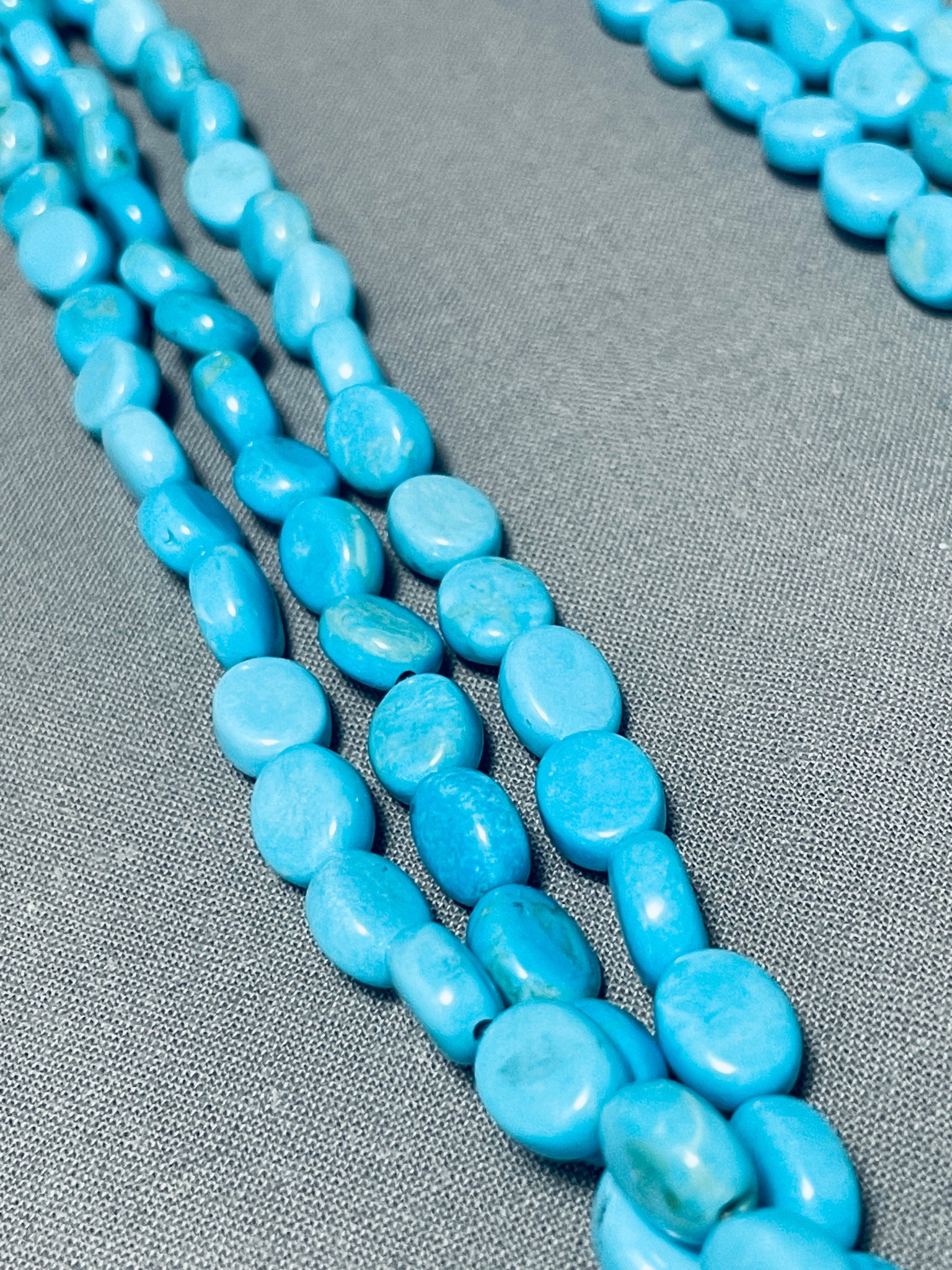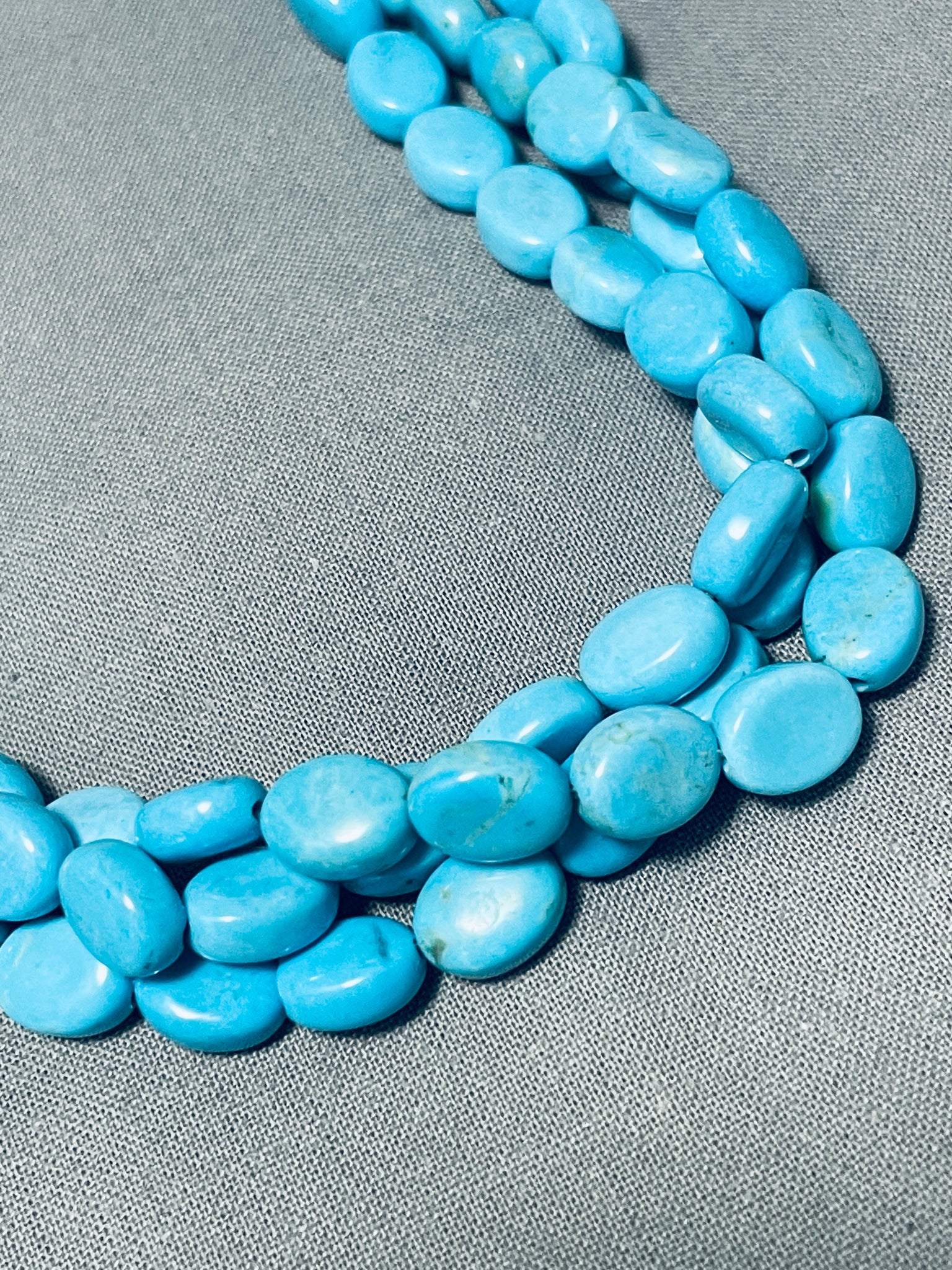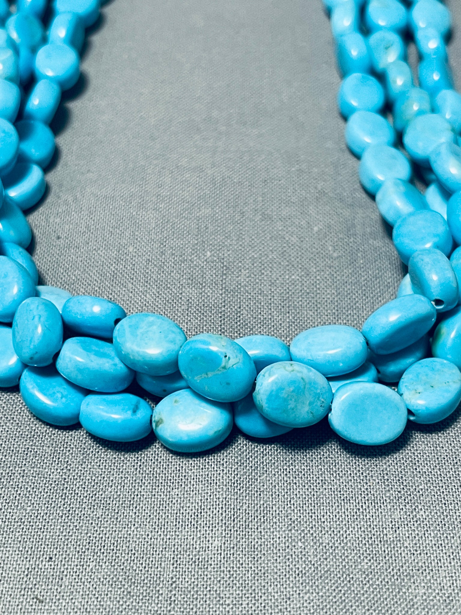 Breathtaking Vintage Native American Navajo Blue Gem Turquoise Sterling Silver Necklace
