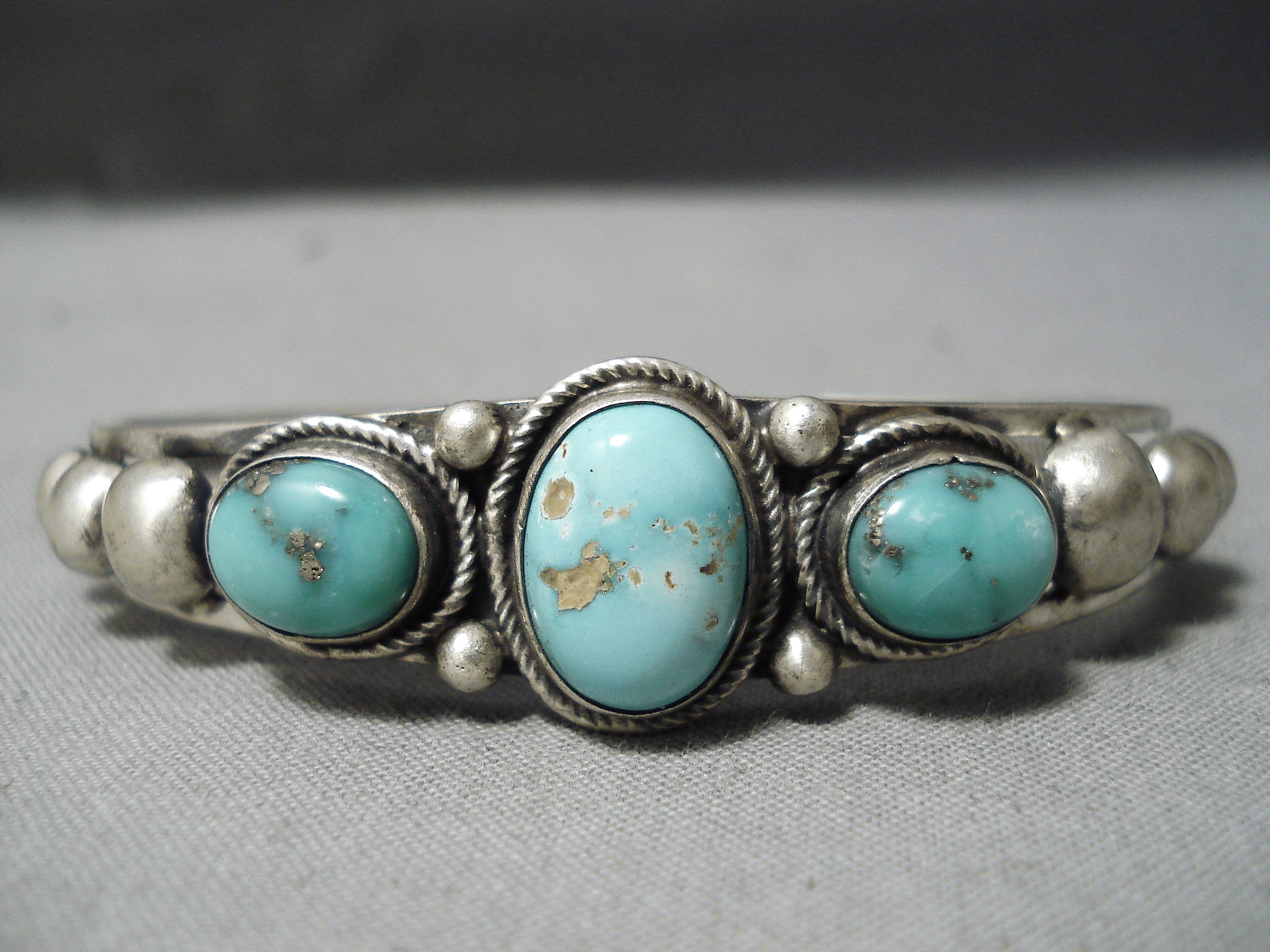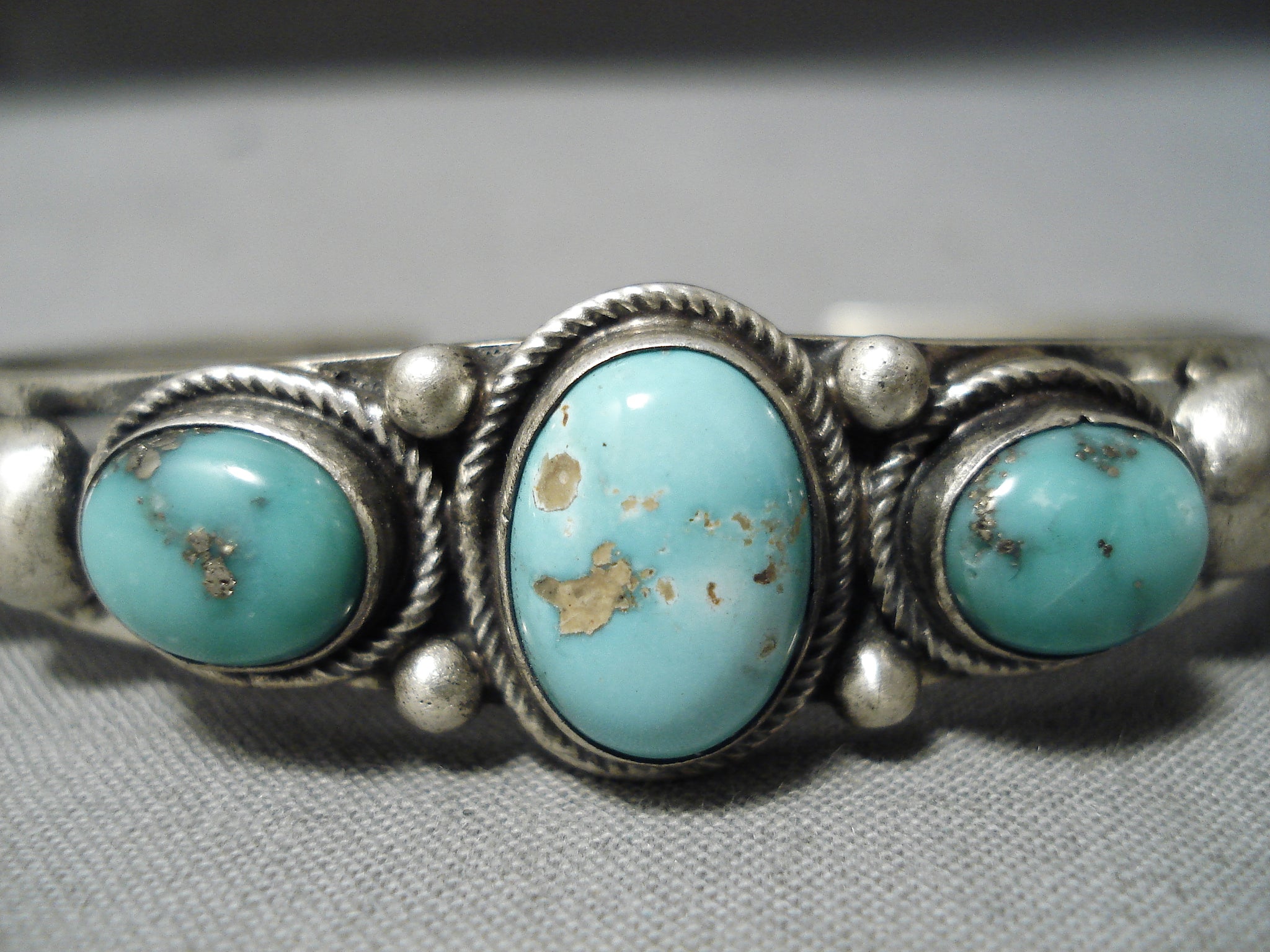 Breathtaking Vintage Native American Navajo Carico Lake Turquoise Sterling Silver Bracelet