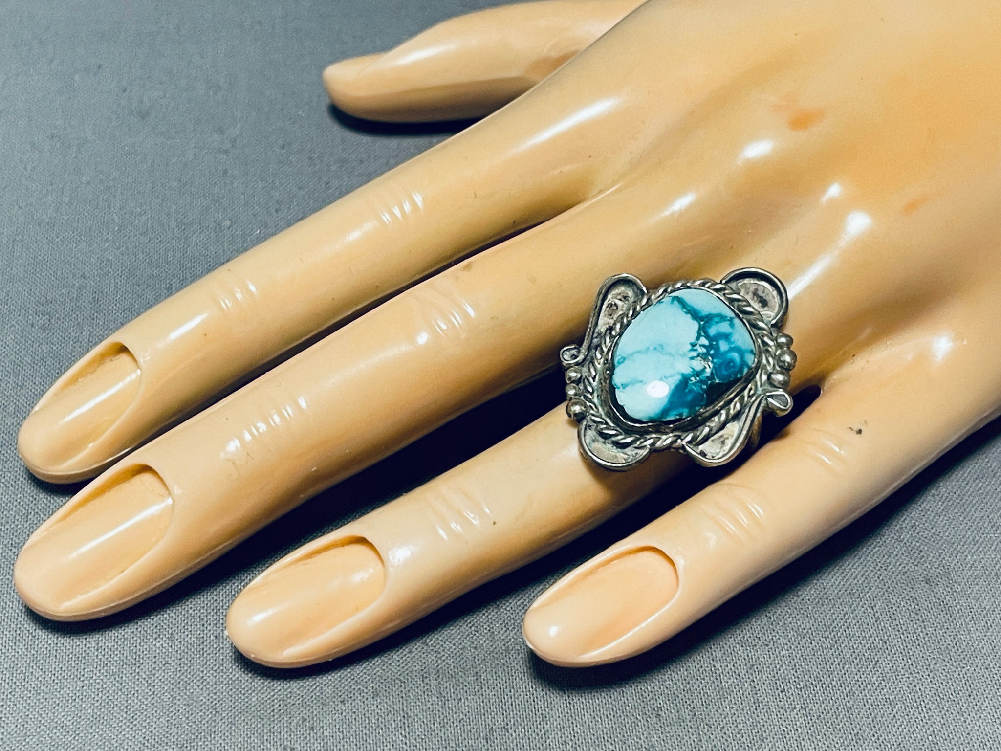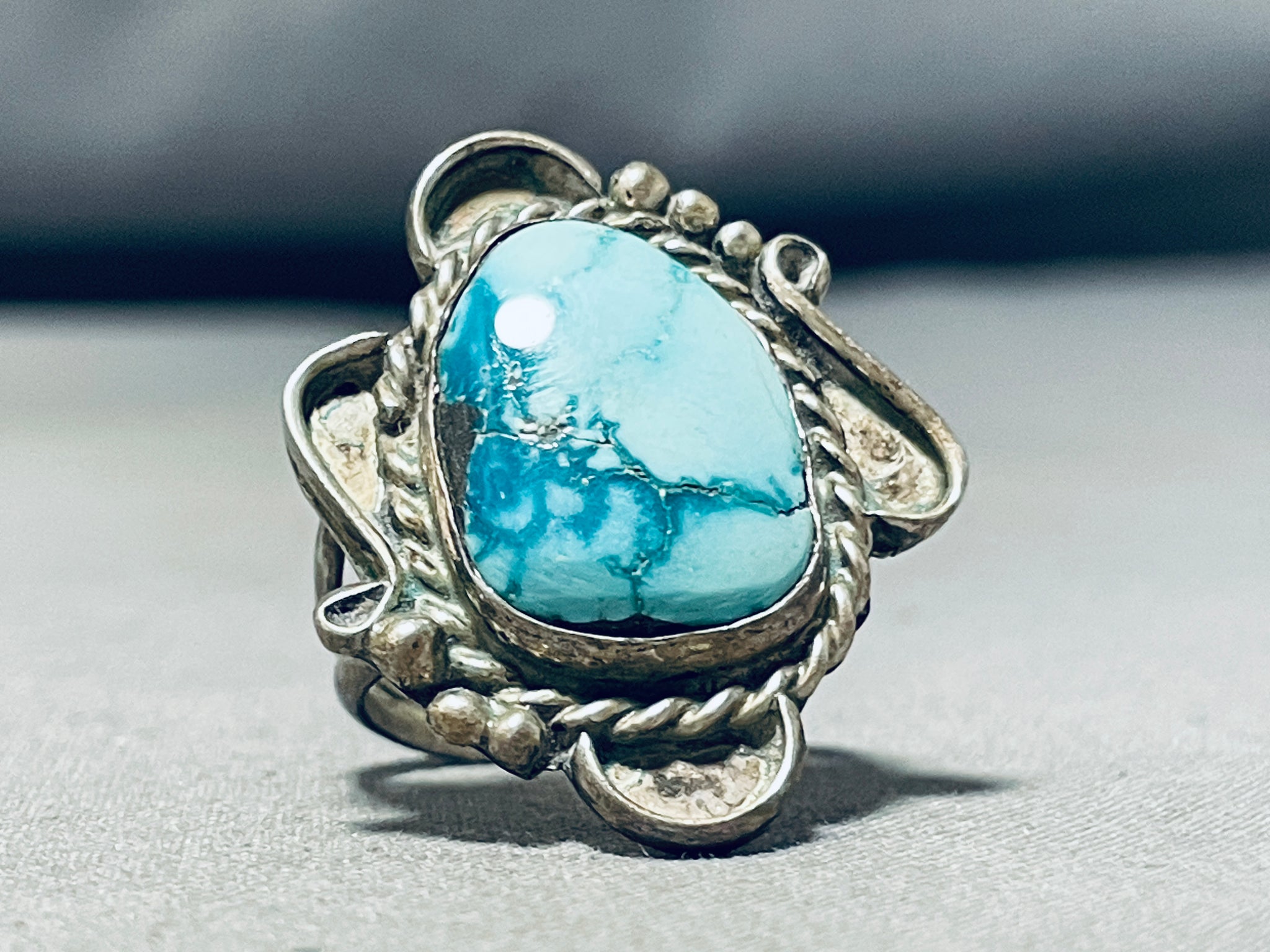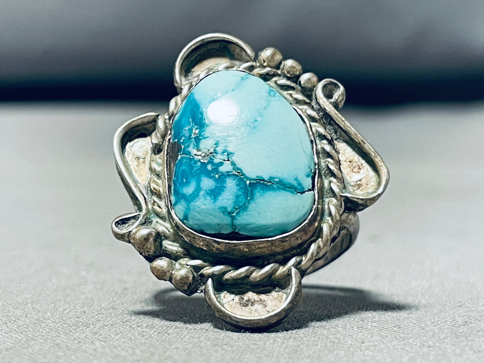 Breathtaking Vintage Native American Navajo Carico Lake Turquoise Sterling Silver Ring
