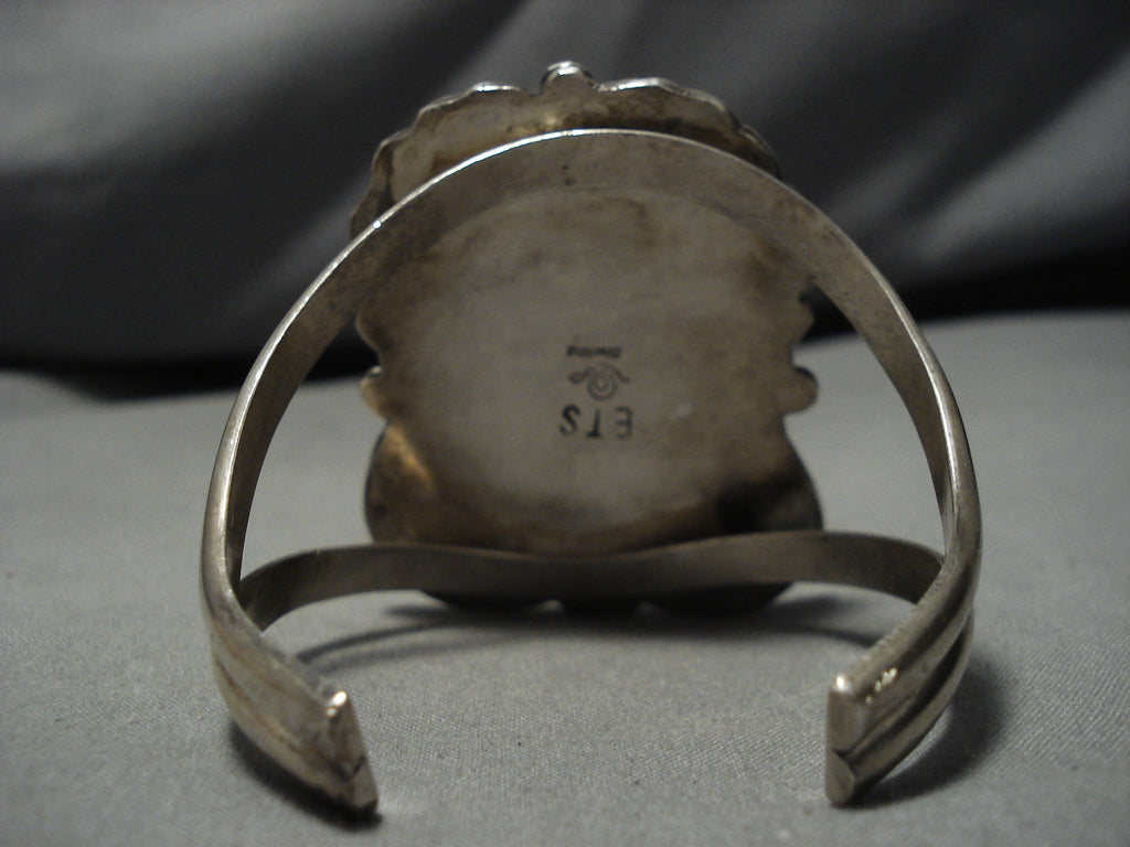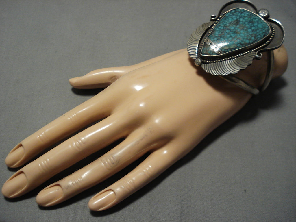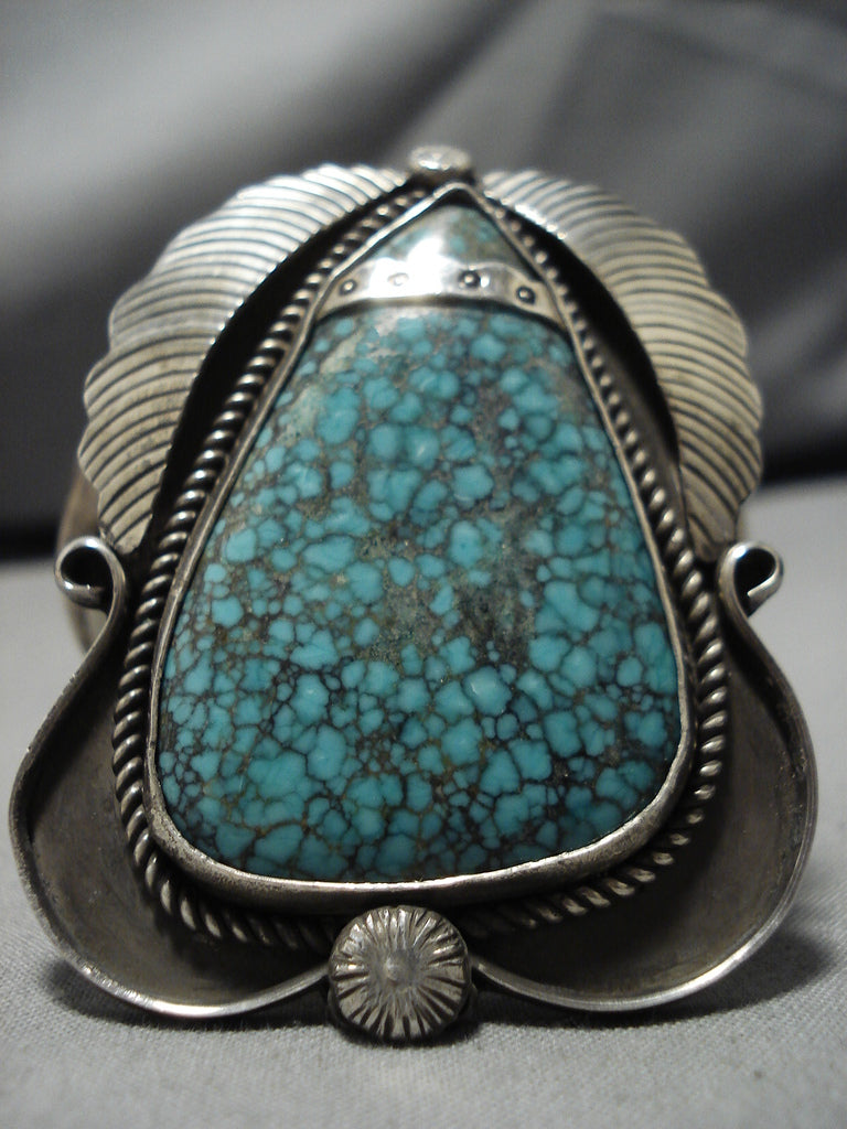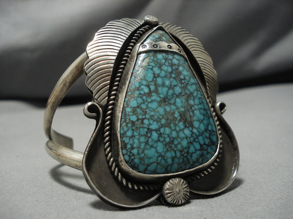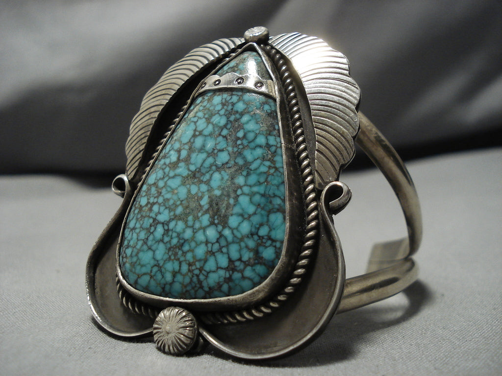 Breathtaking Vintage Native American Navajo Green Spiderweb Turquoise Sterling Silver Bracelet
