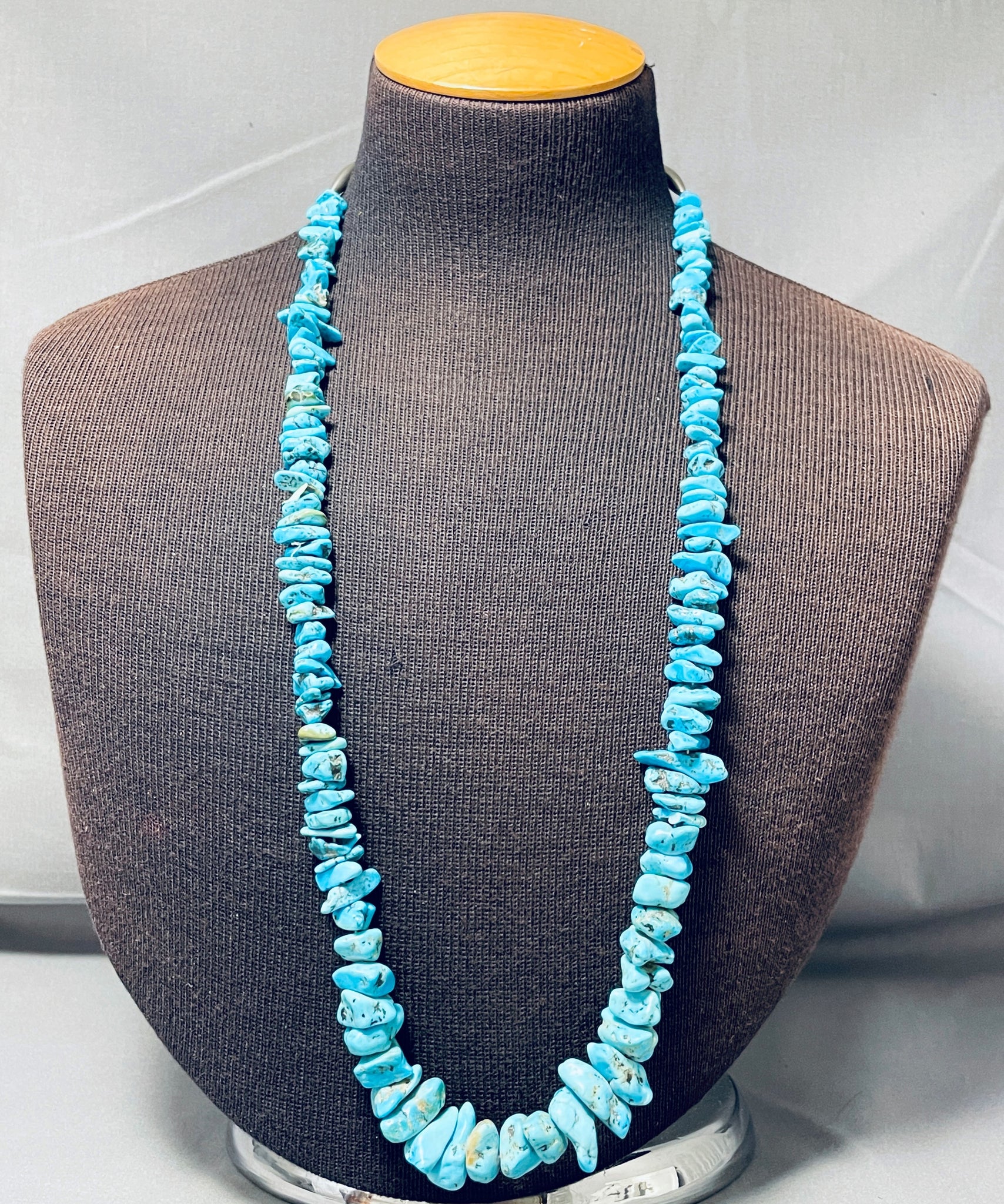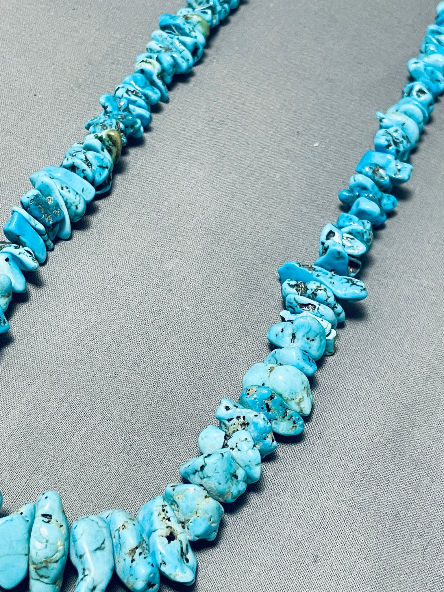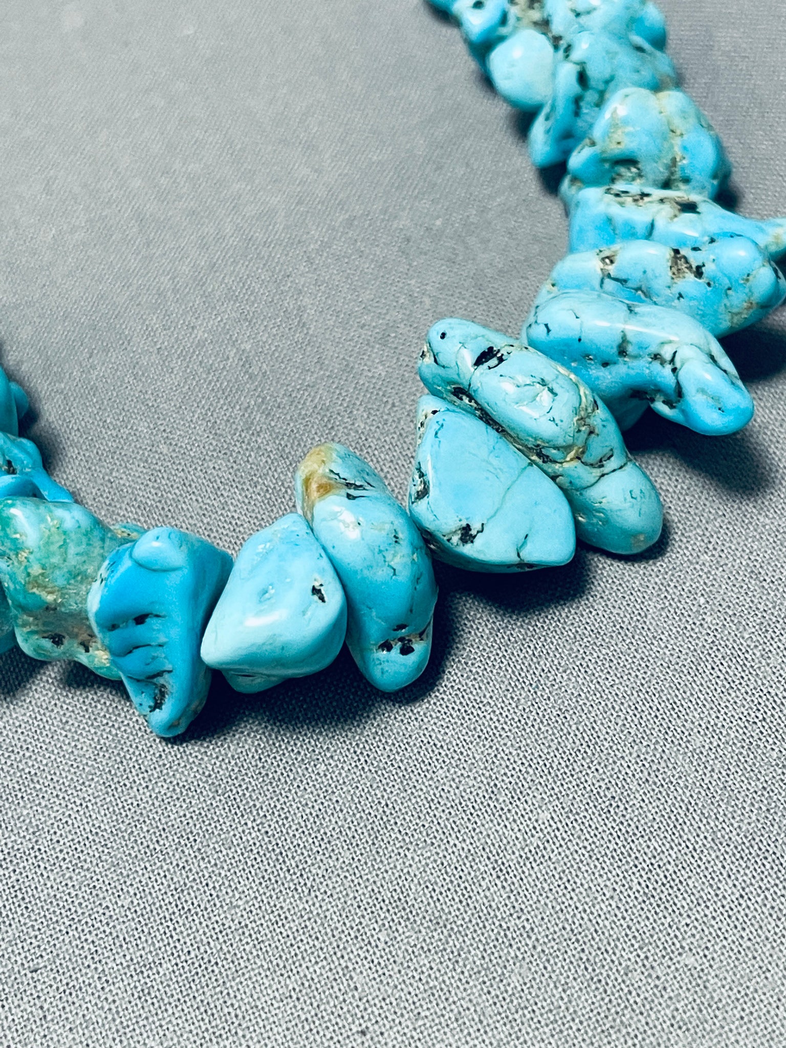Breathtaking Vintage Native American Navajo Turquoise Chunk Sterling Silver Necklace