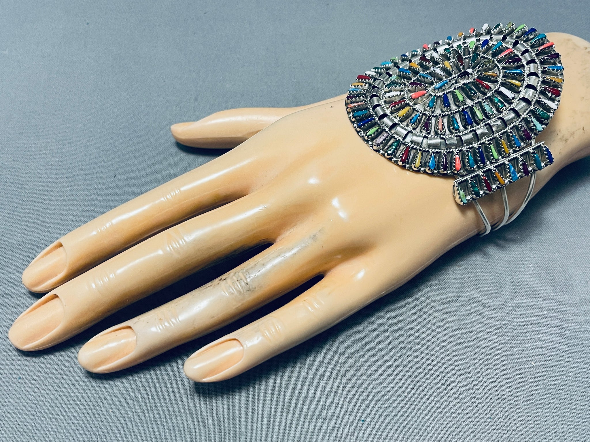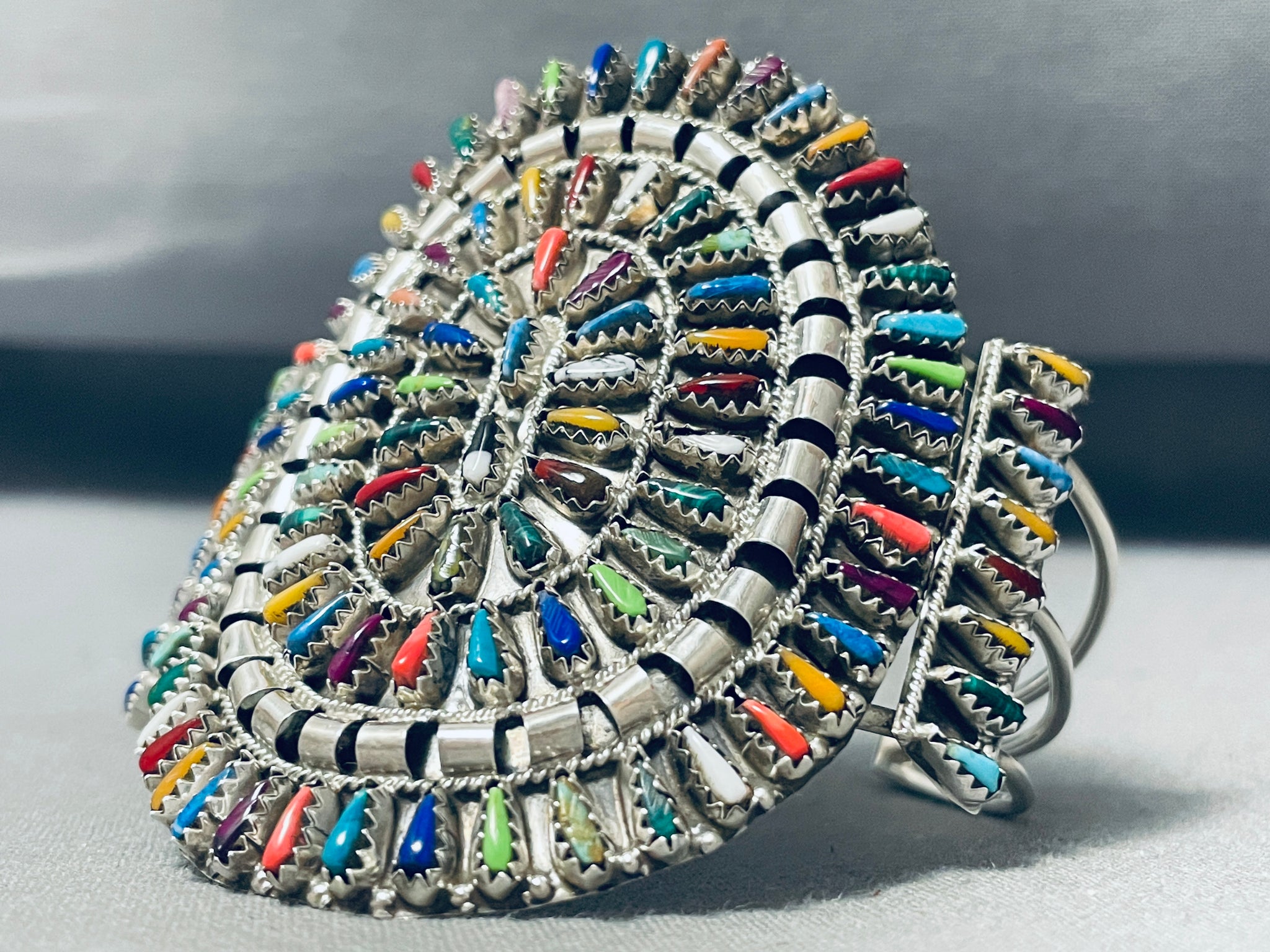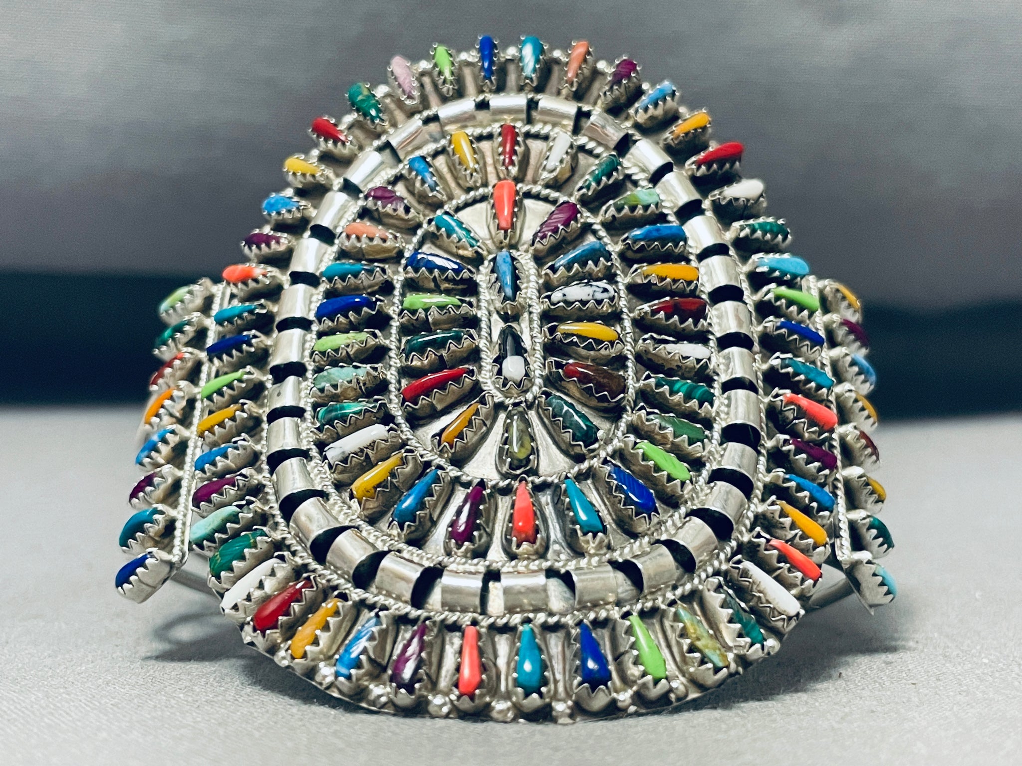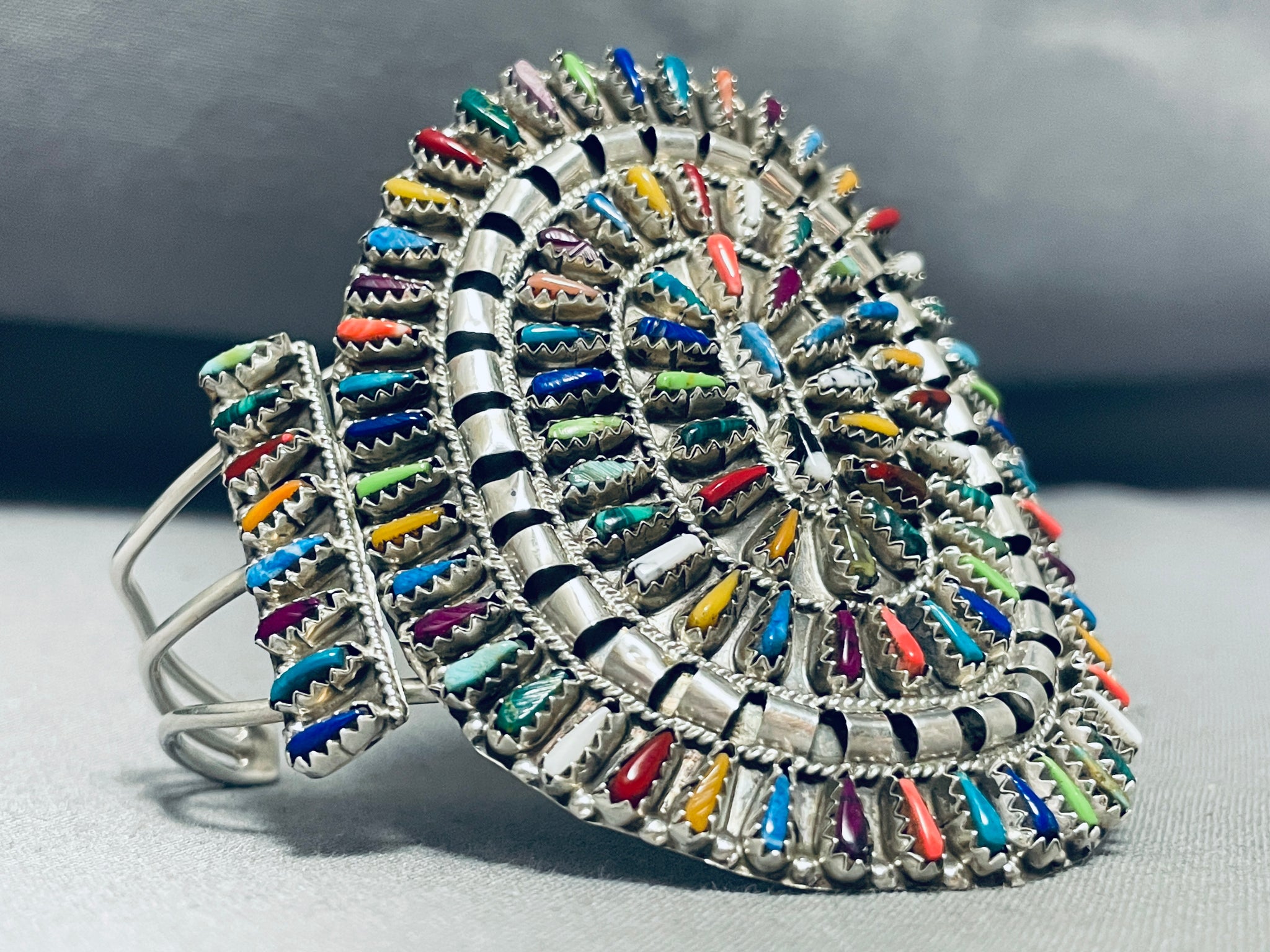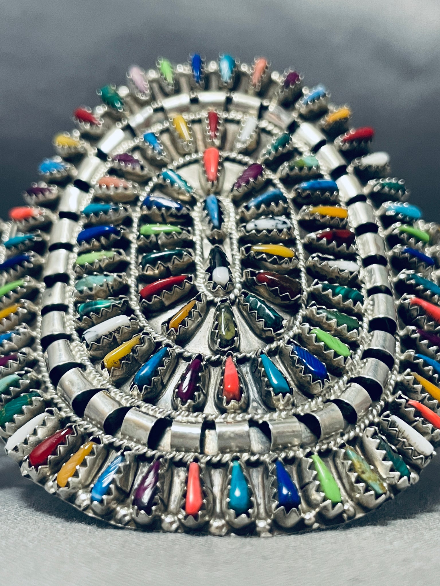 Breathtaking Vintage Native American Navajo Turquoise + Multi Sterling Silver Bracelet