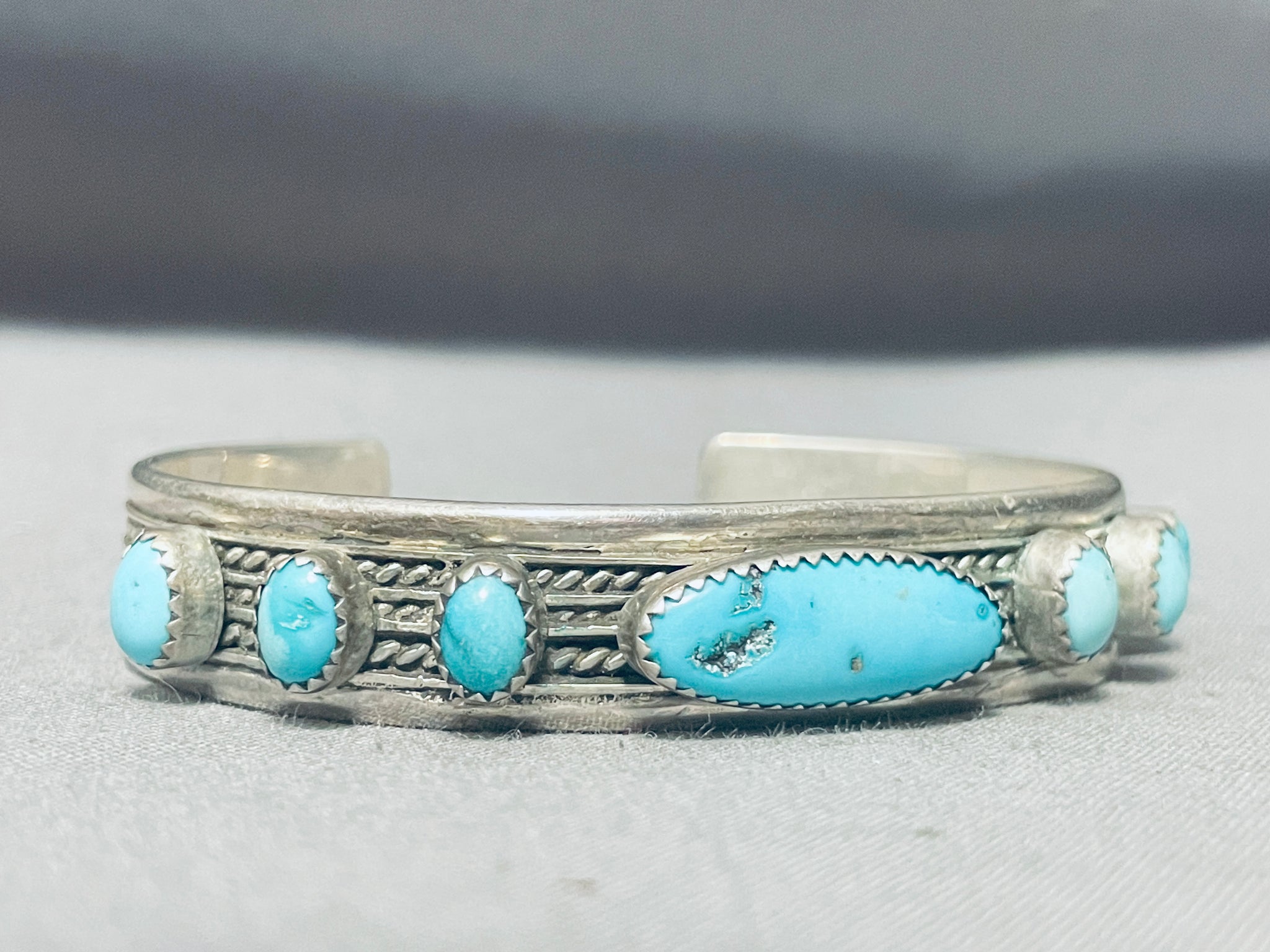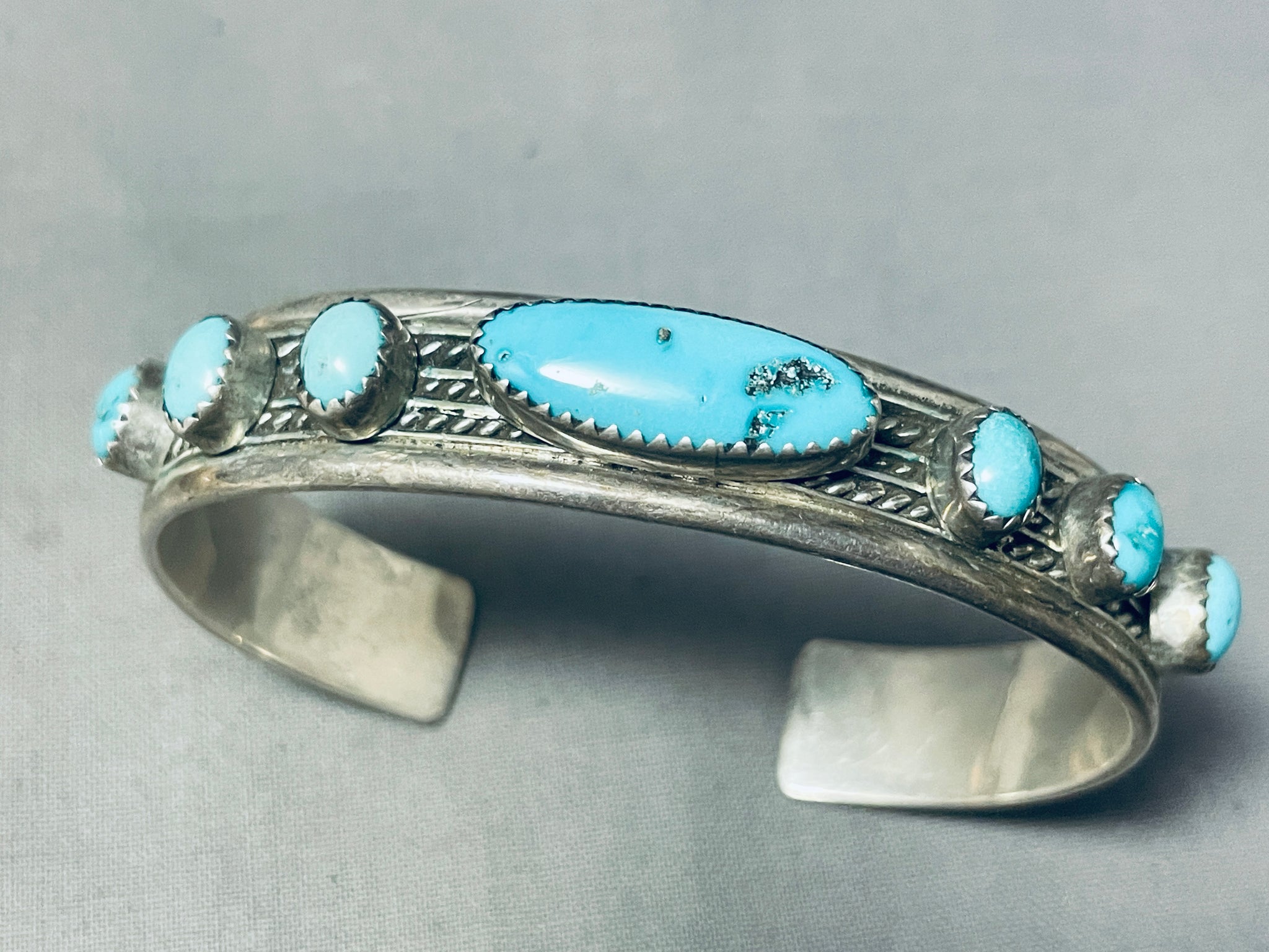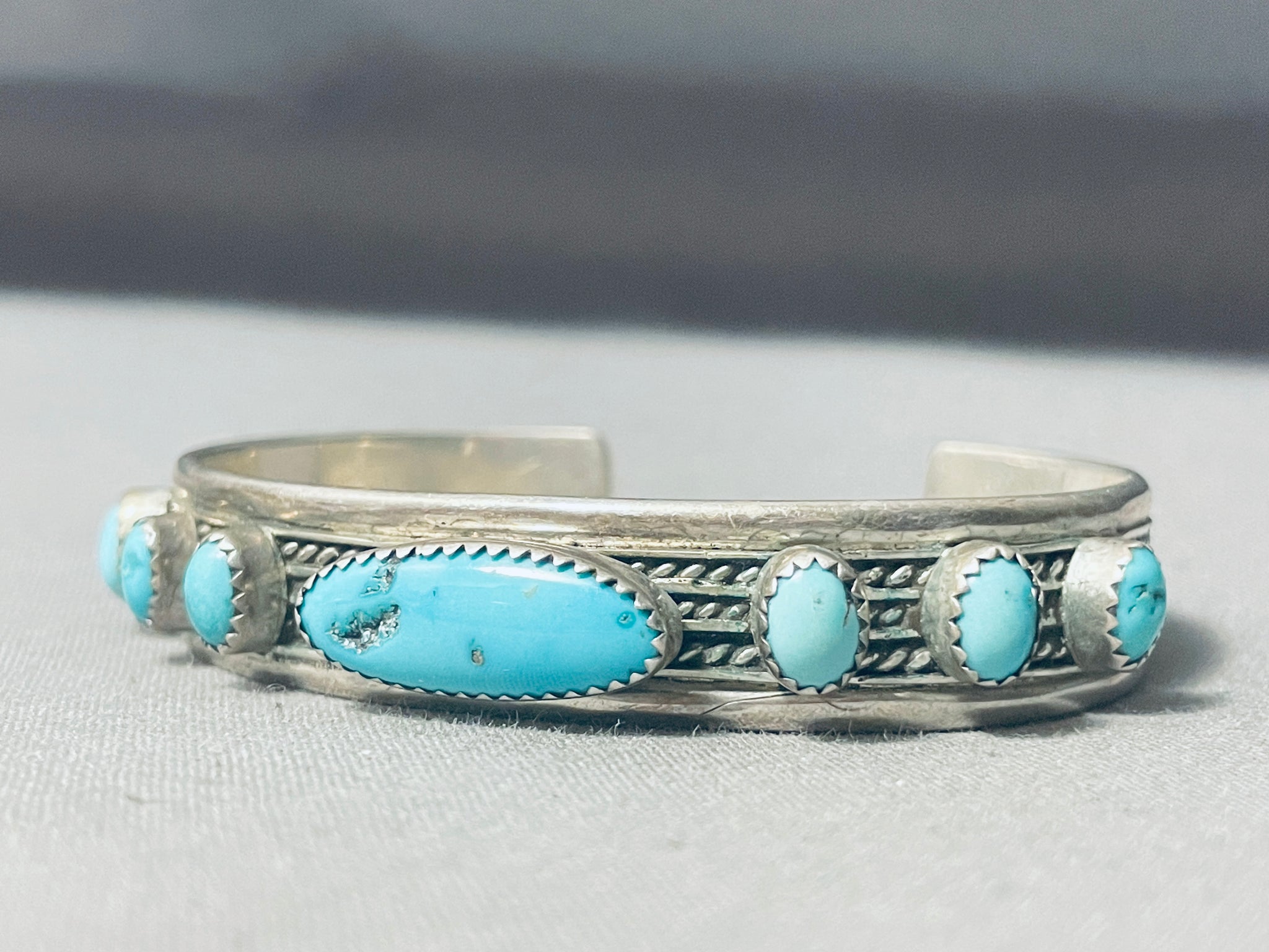 Breathtaking Vintage Native American Navajo Turquoise Row Sterling Silver Bracelet Cuff