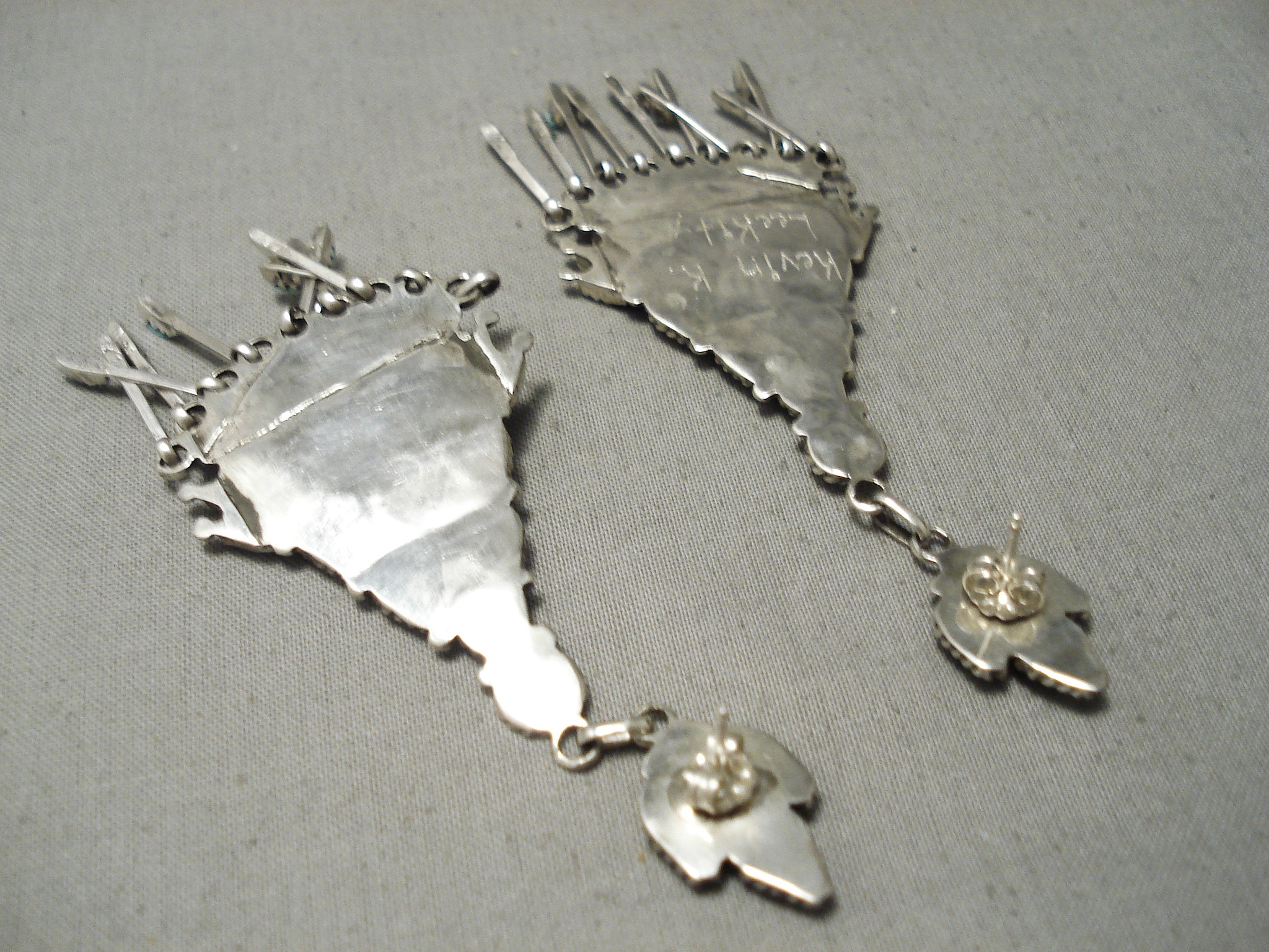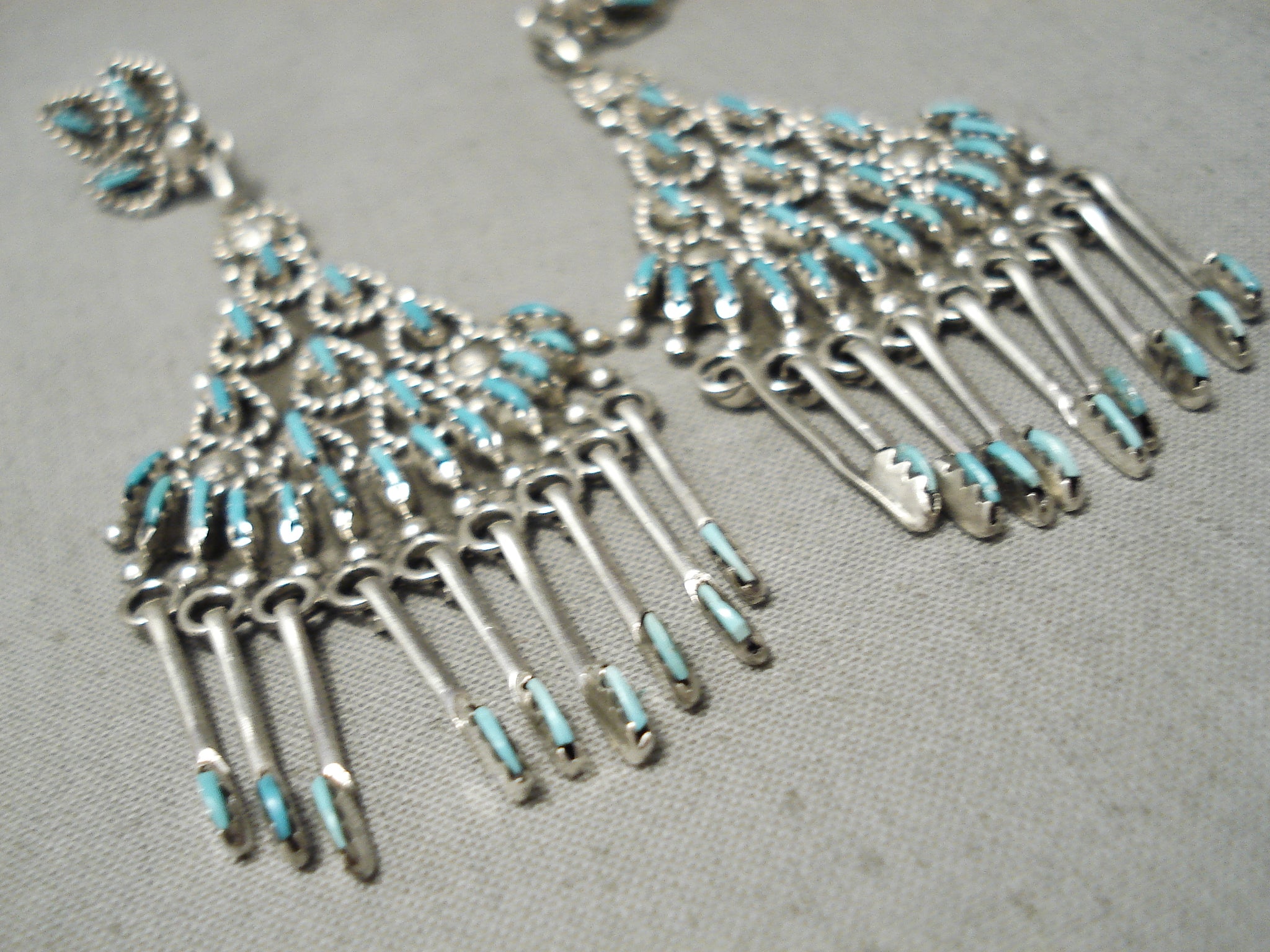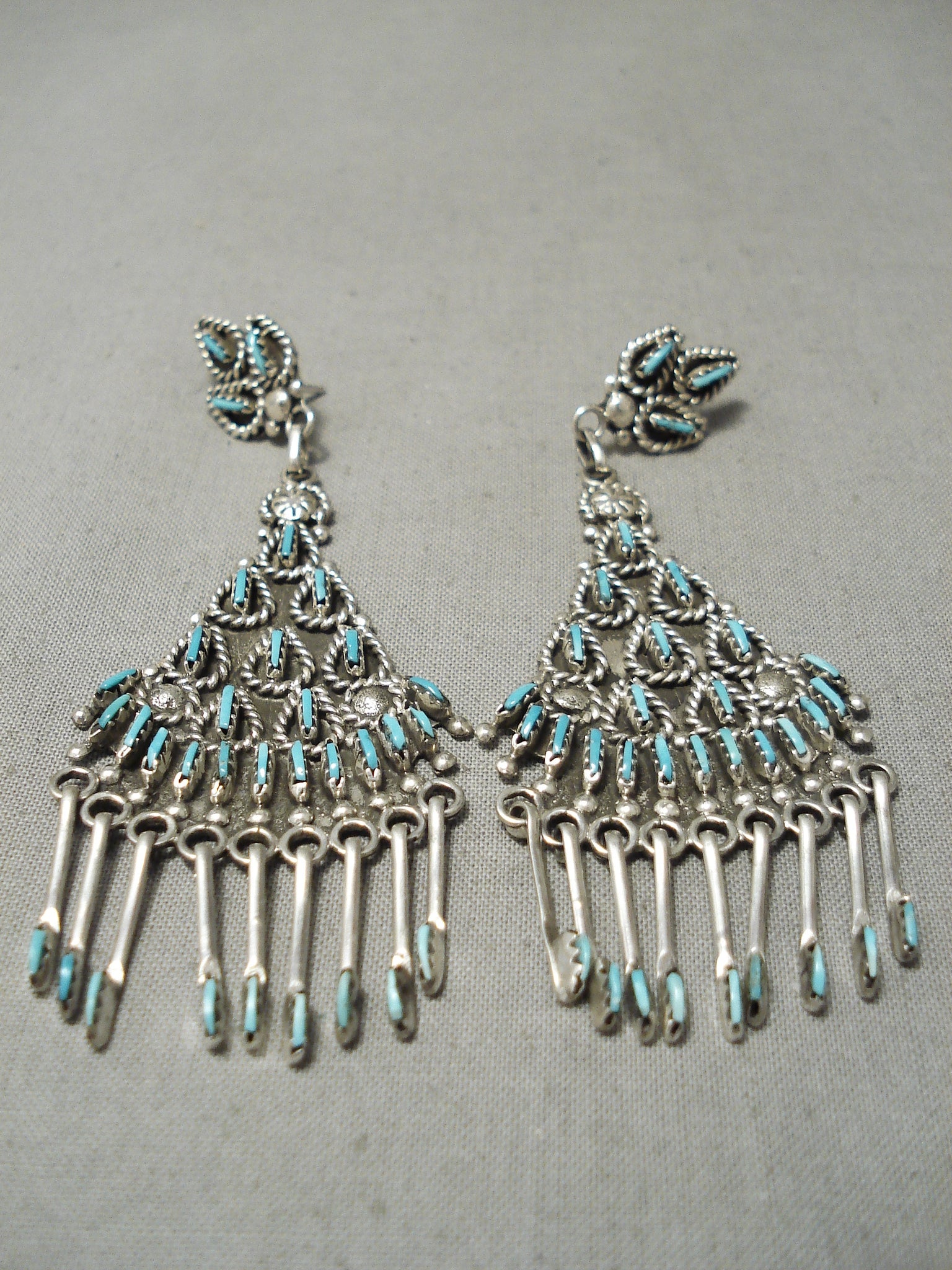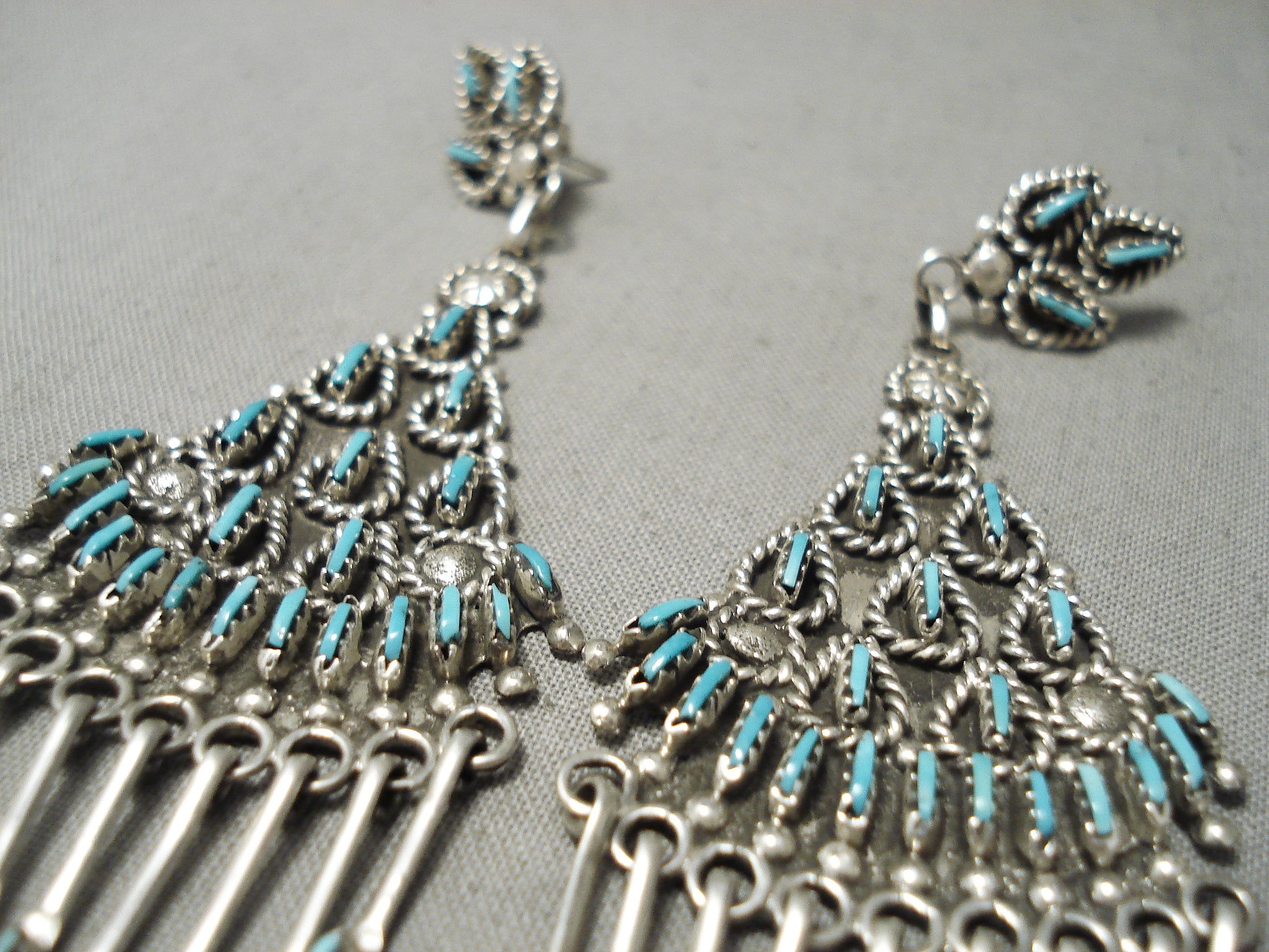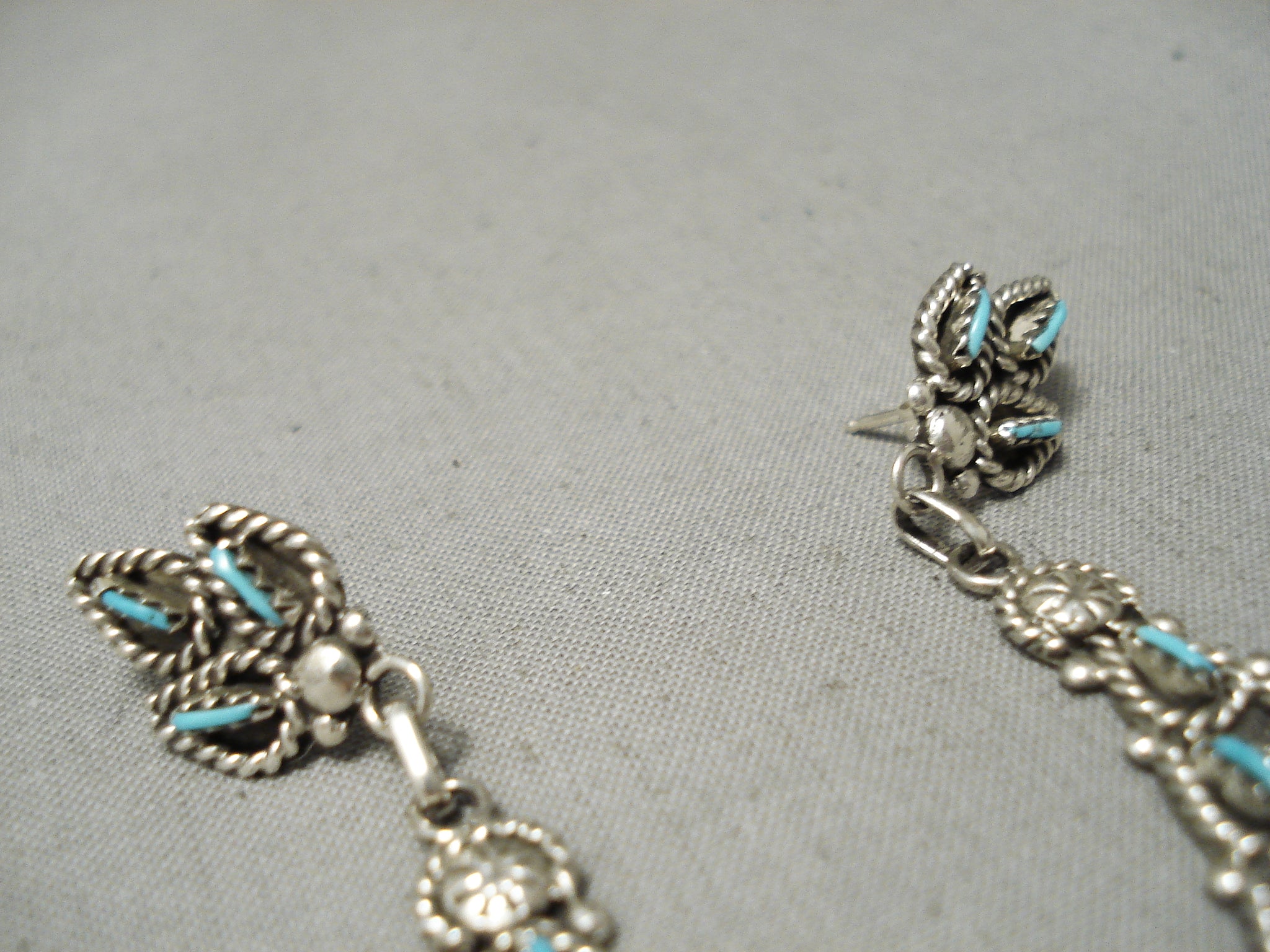 Breathtaking Vintage Native American Zuni American Turquoise Sterling Silver Dangle Earrings