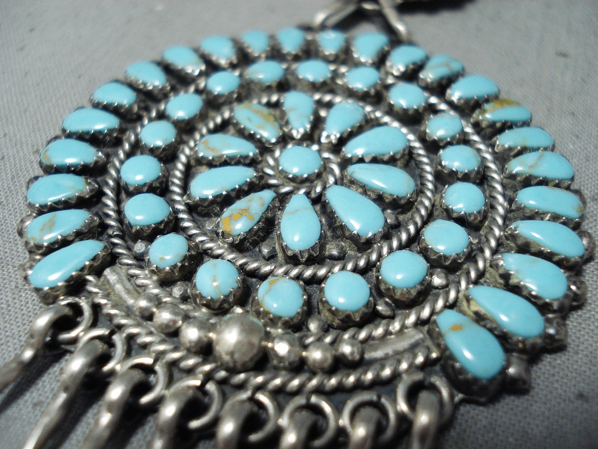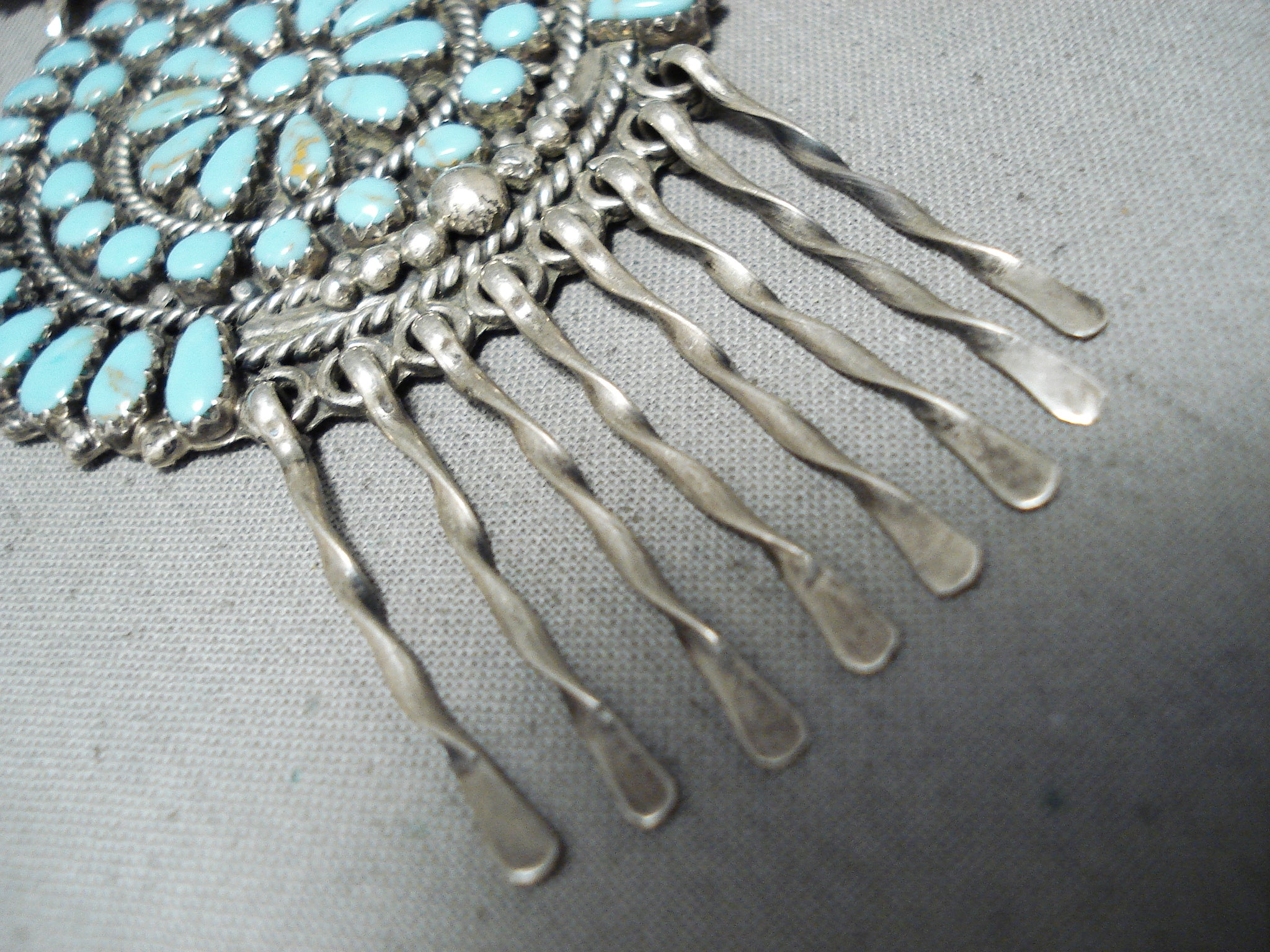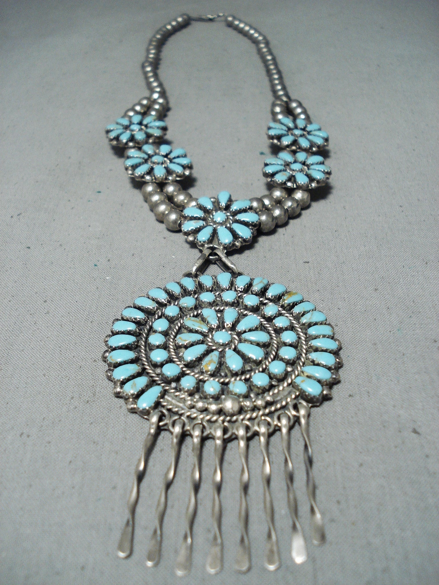 Breathtaking Vintage Native American Zuni Turquoise Sterling Silver Necklace
