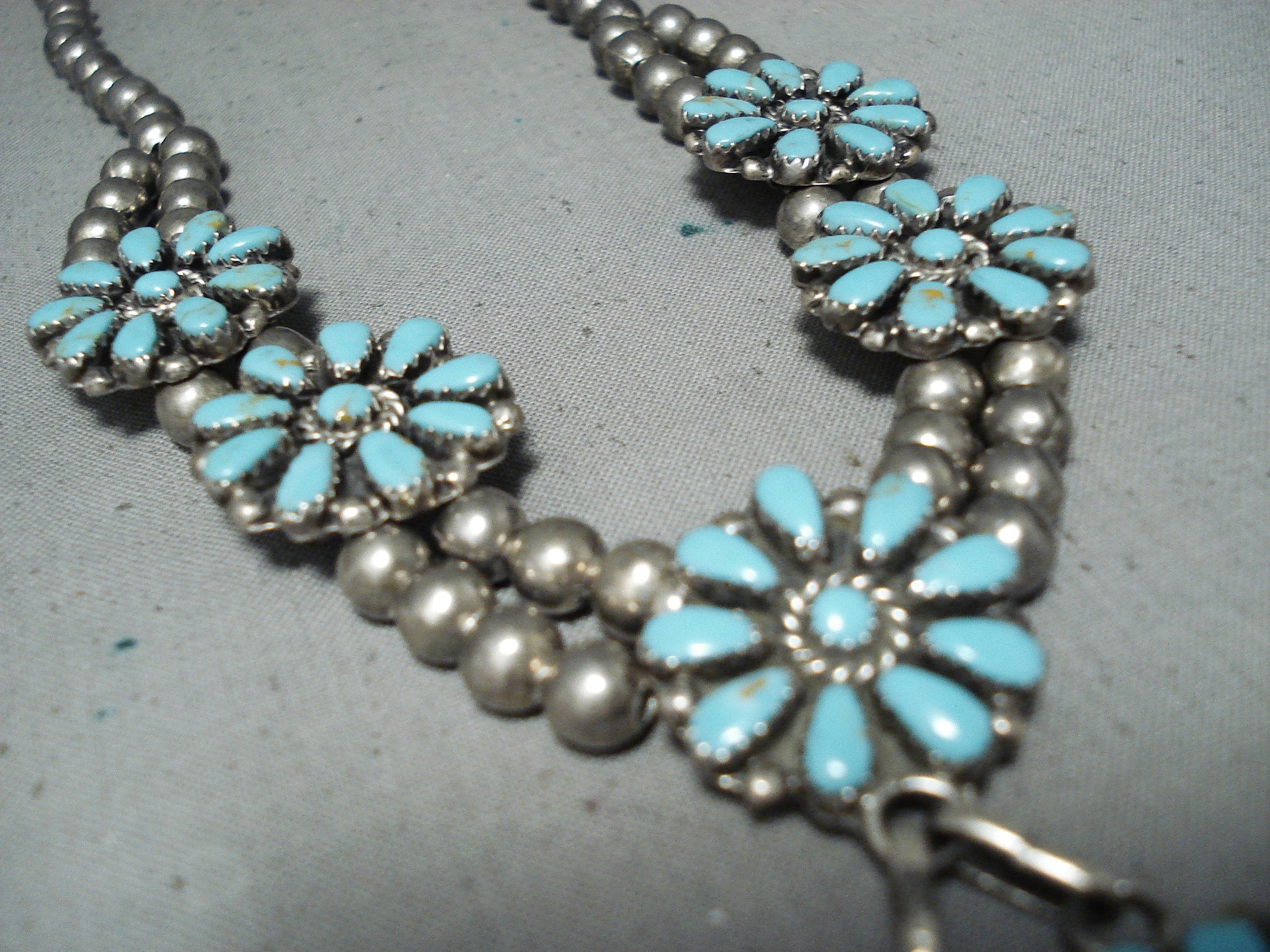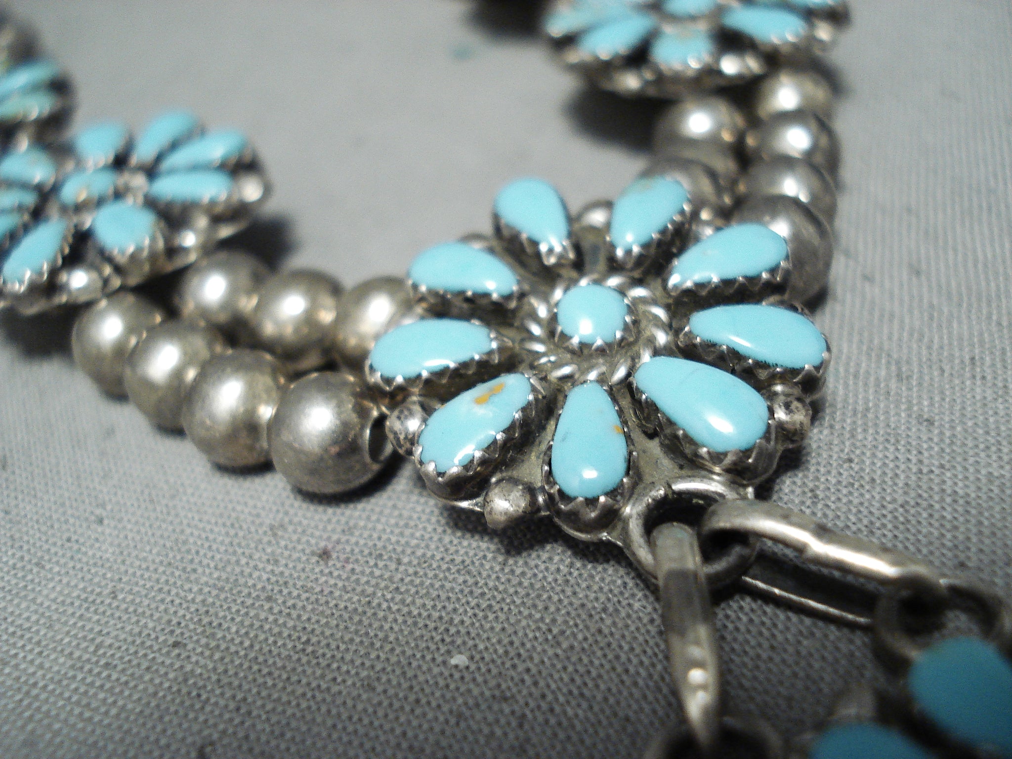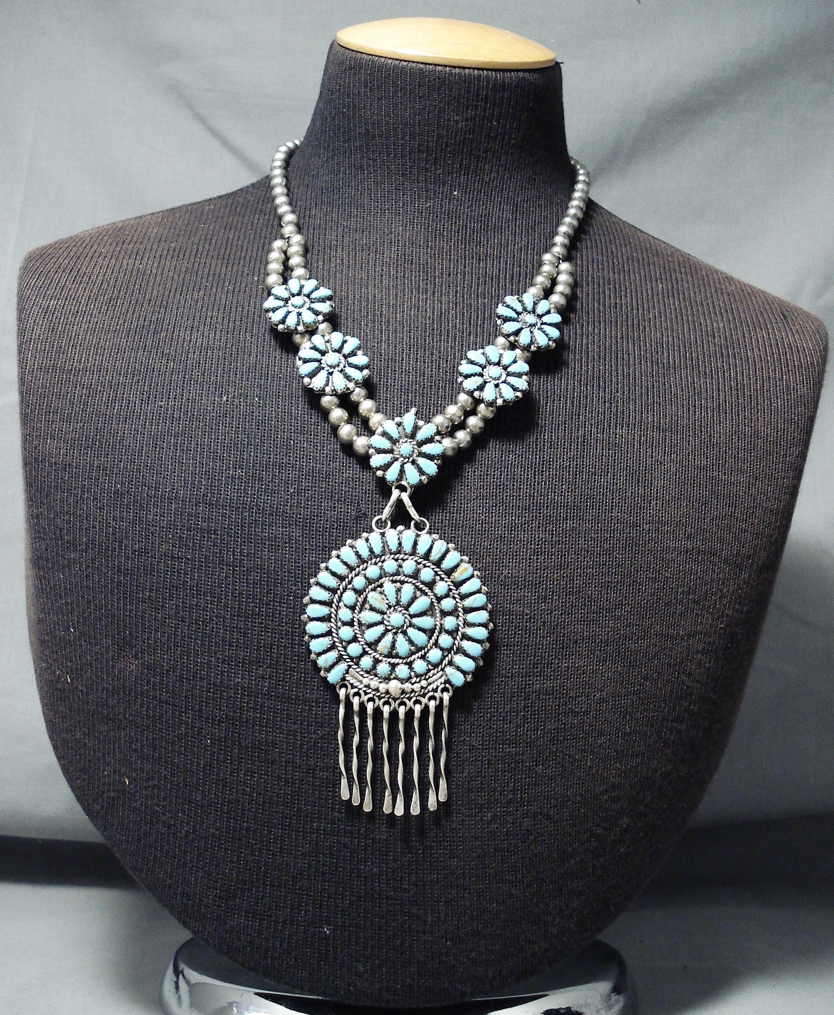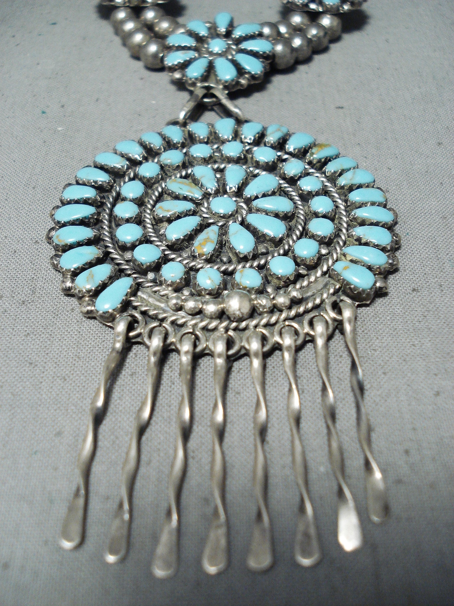 Breathtaking Vintage Native American Zuni Turquoise Sterling Silver Necklace
