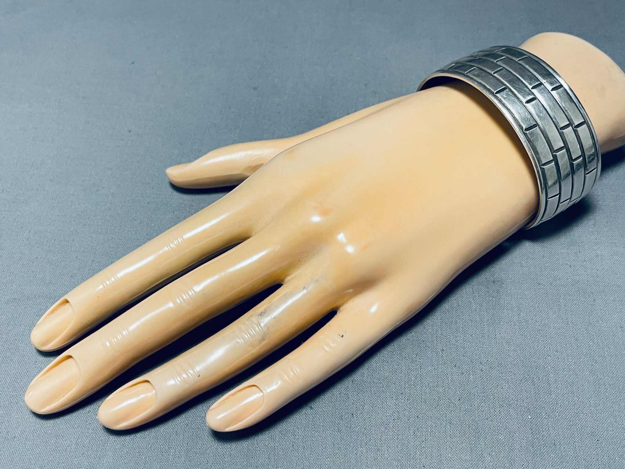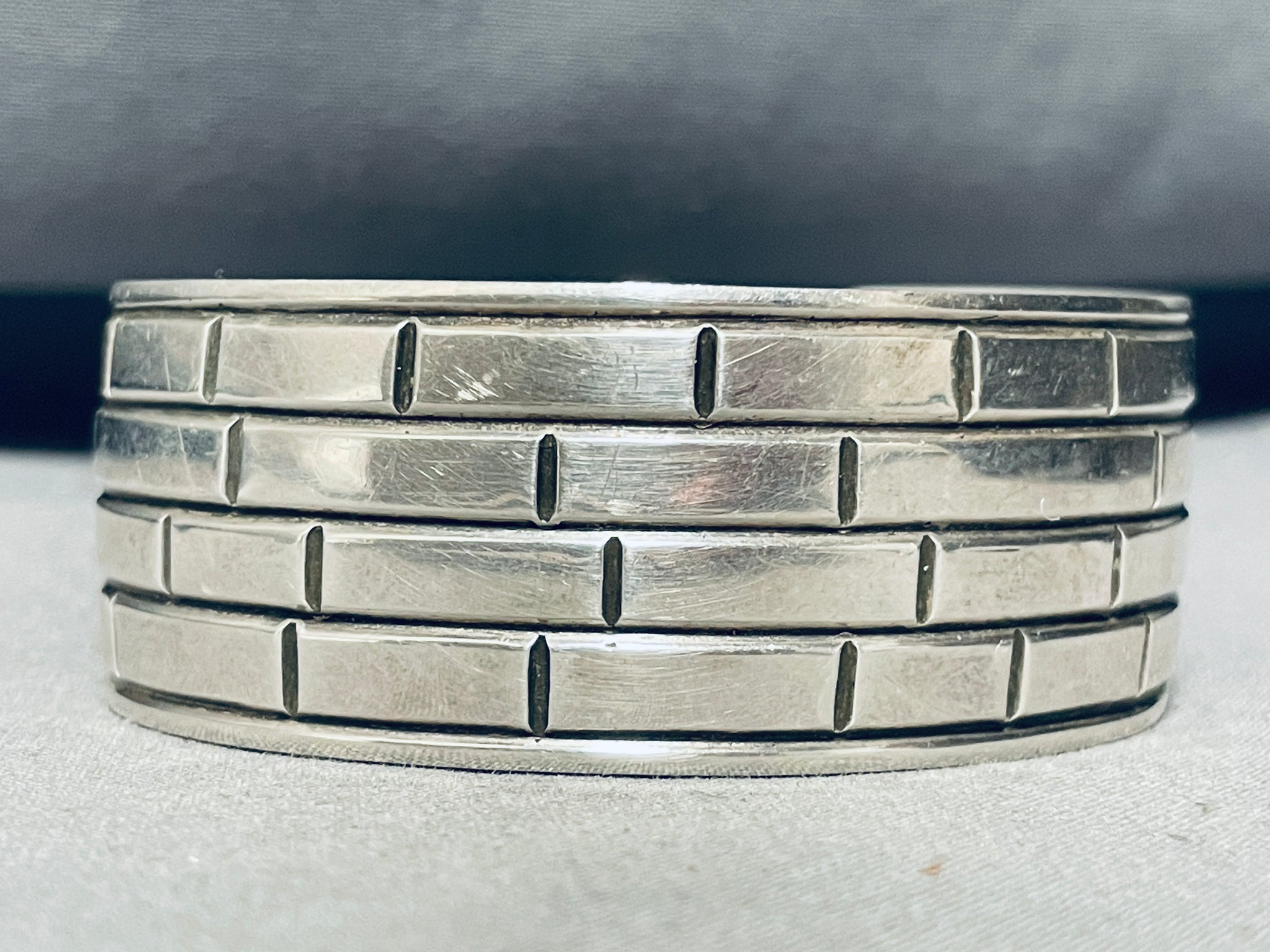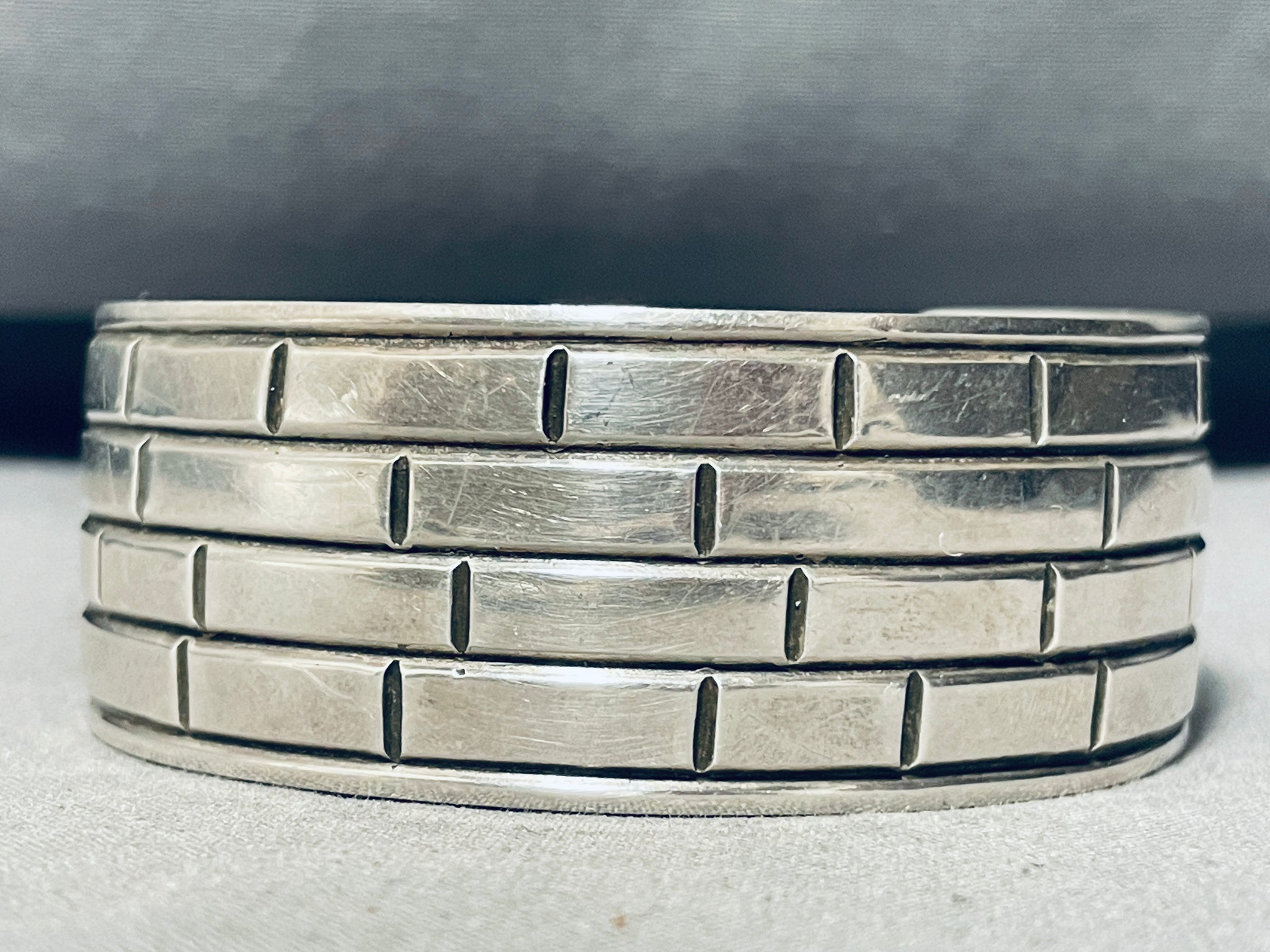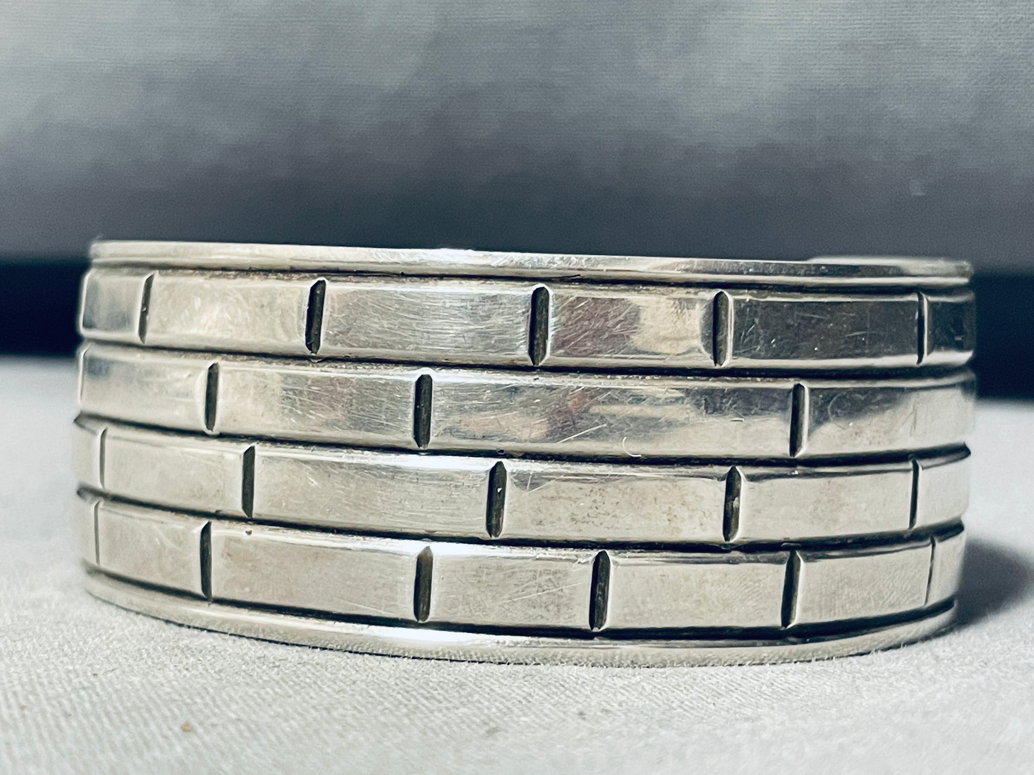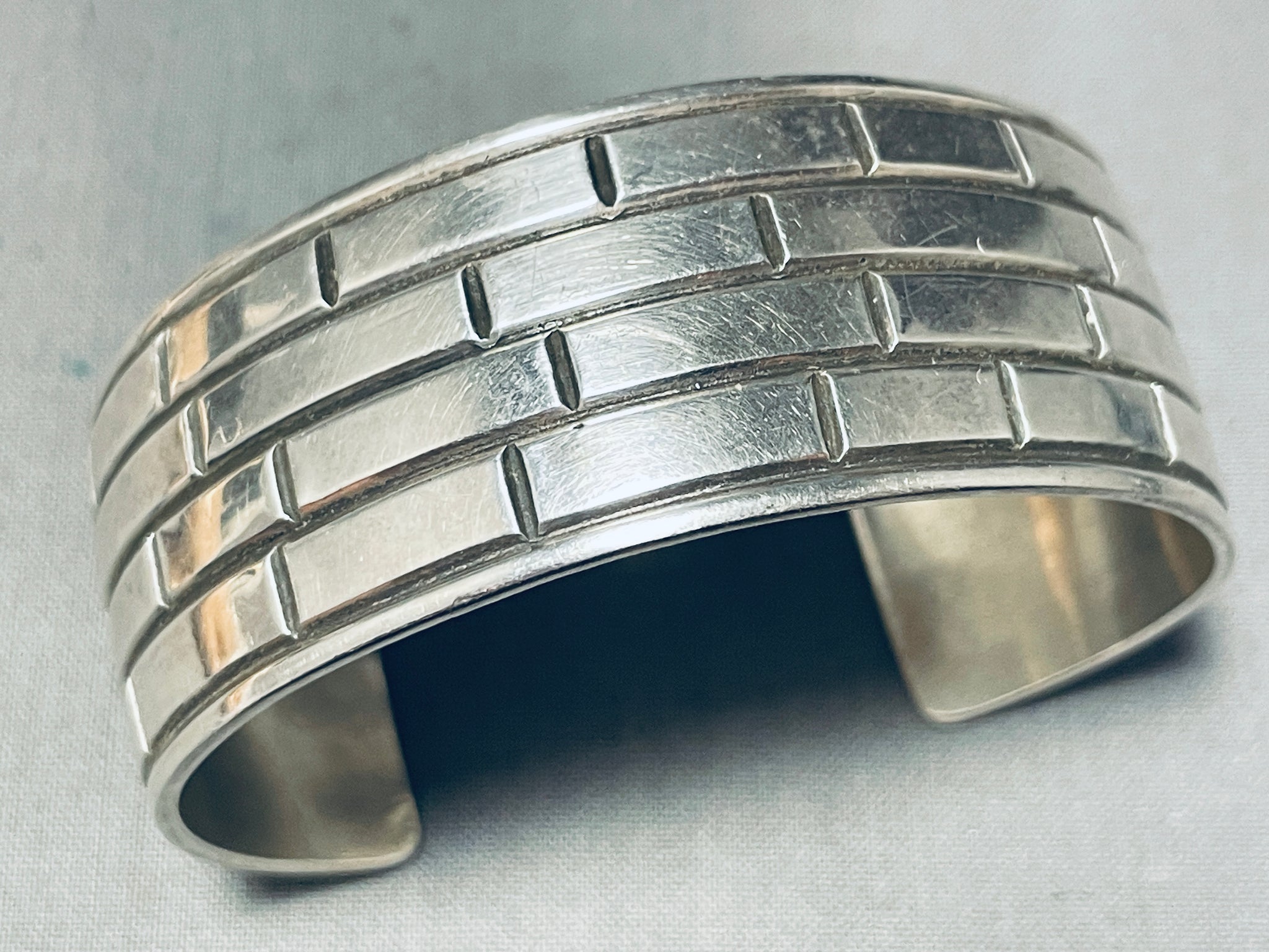 Brick Wall! Vintage Native American Navajo Hand Etched Sterling Silver Bracelet Cuff