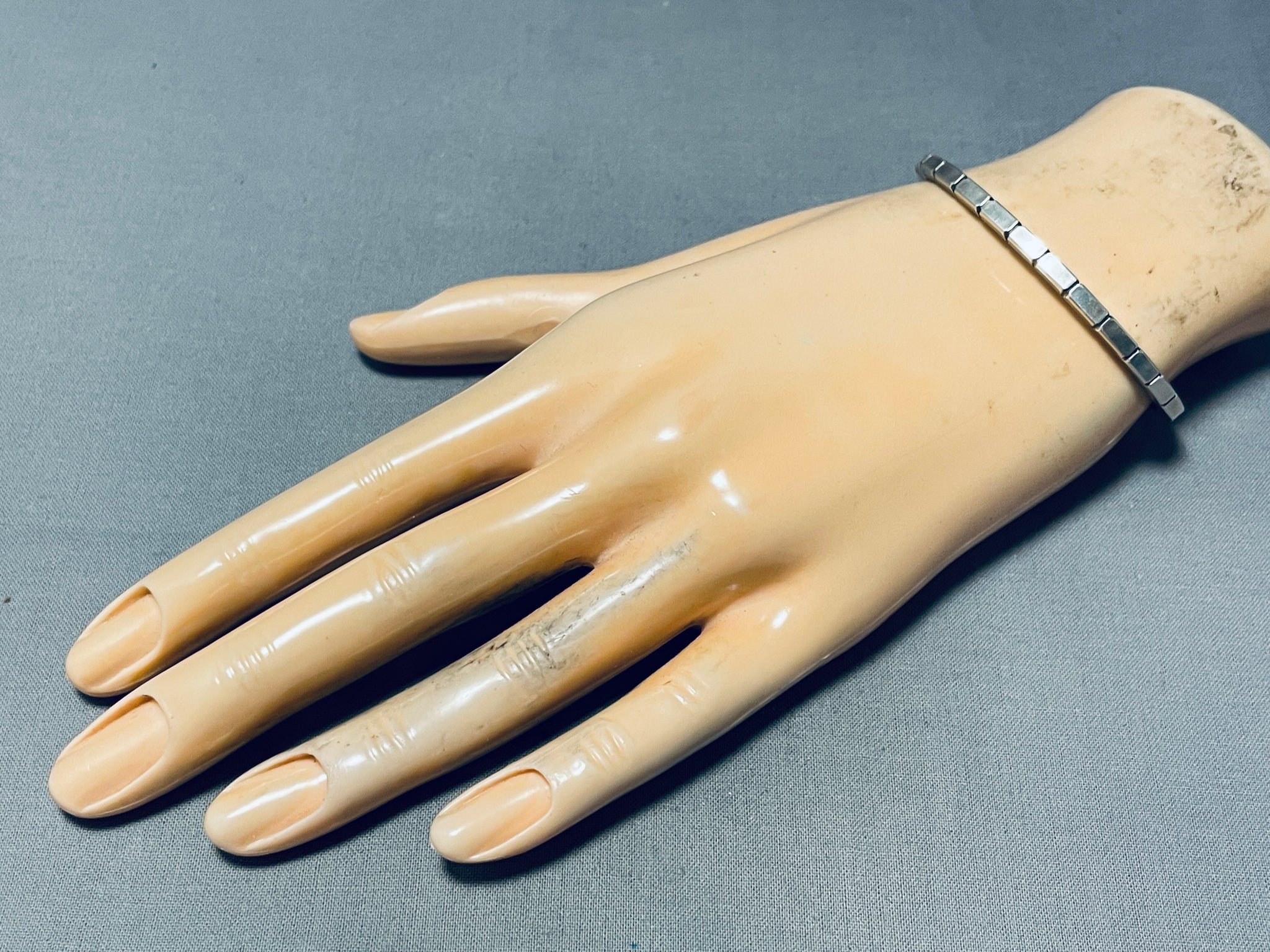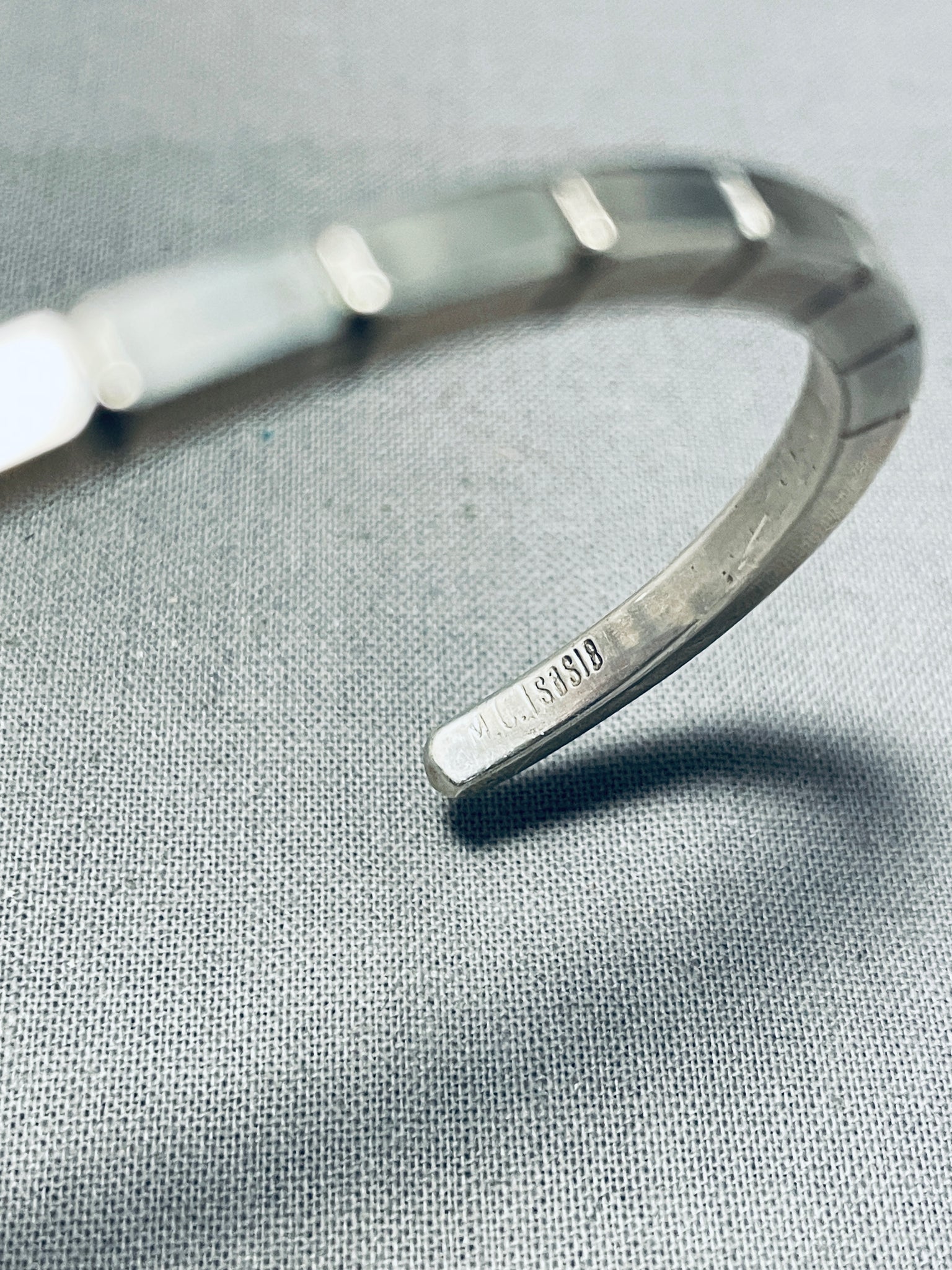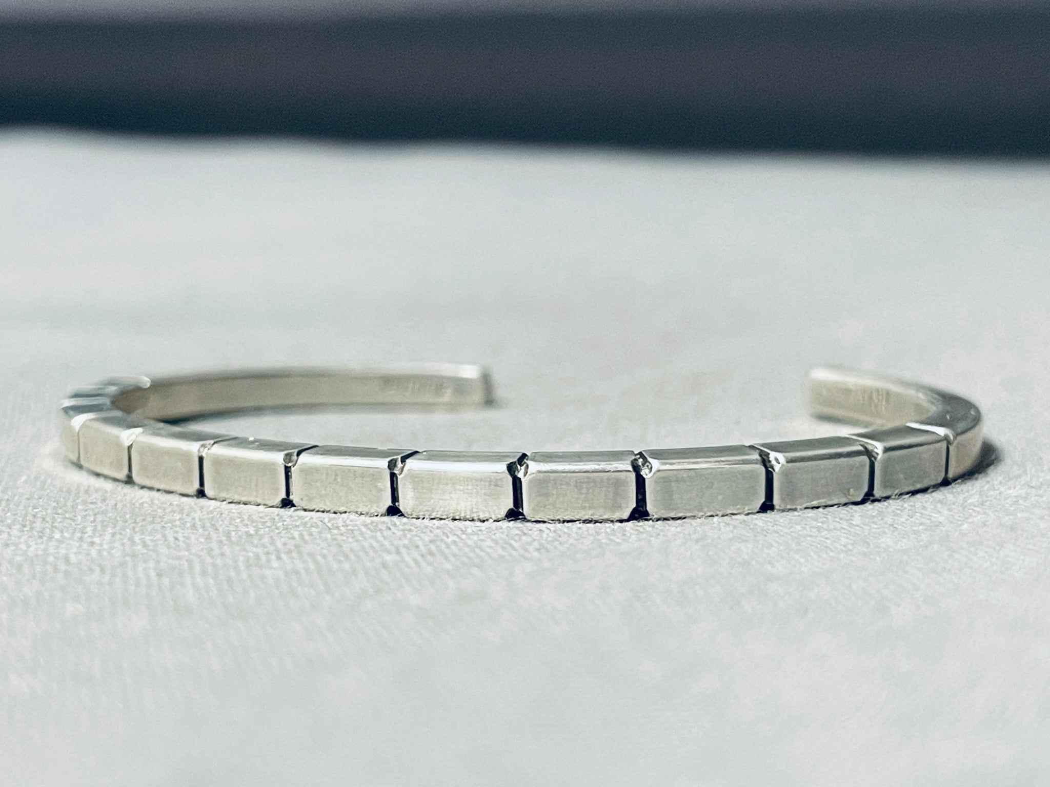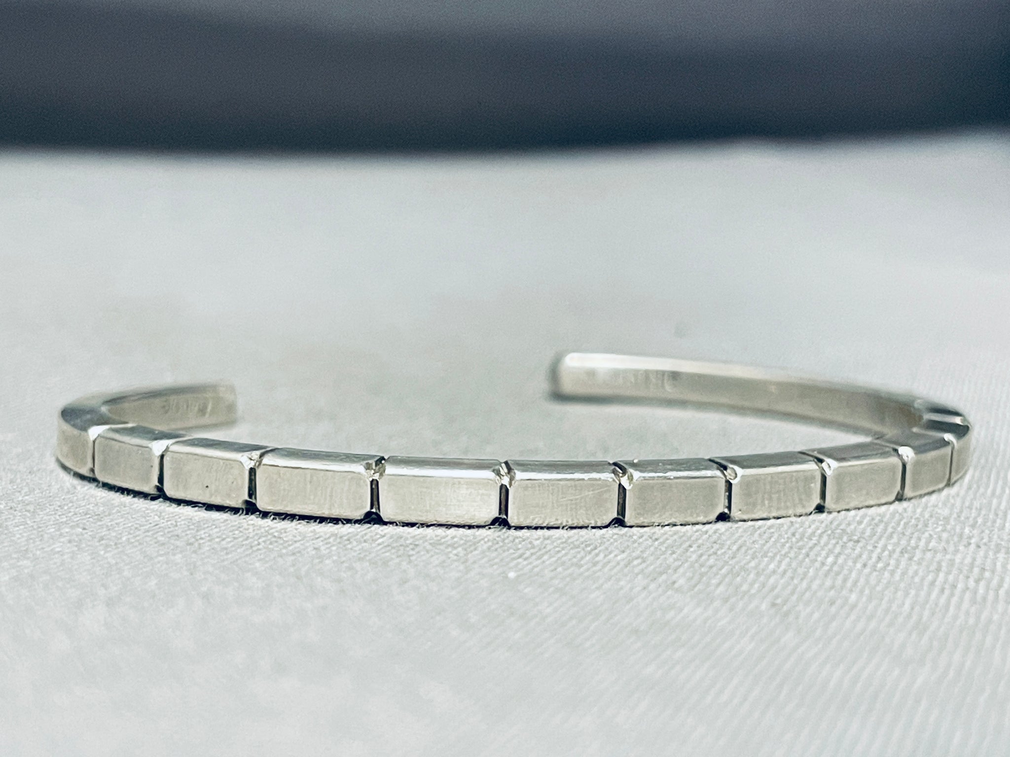 Brickwall Hand Etched Vintage Native American Navajo Sterling Silver Stacker Bracelet