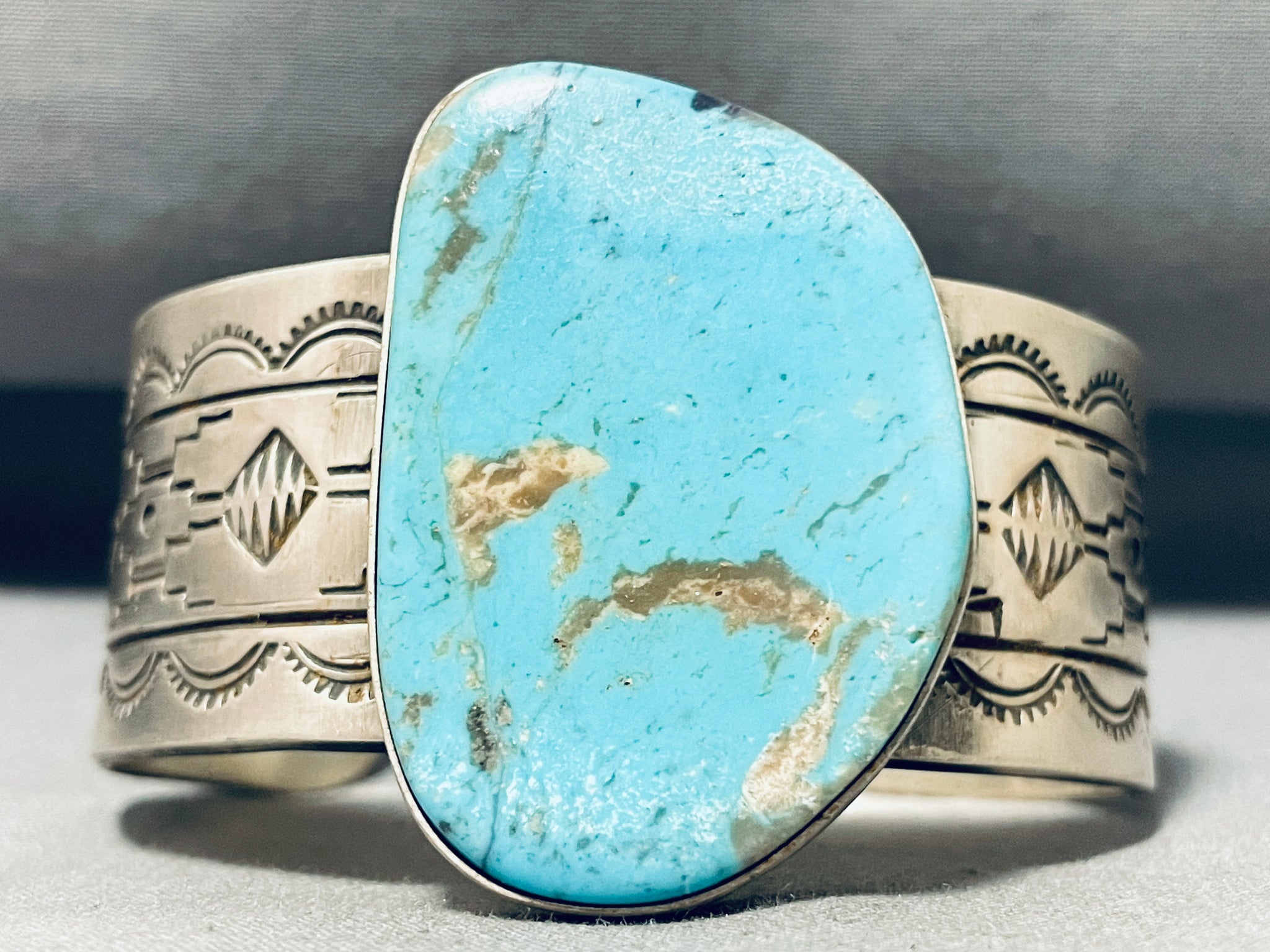 Brilliant Native American Navajo Kingman Turquoise Sterling Silver Huge Bracelet
