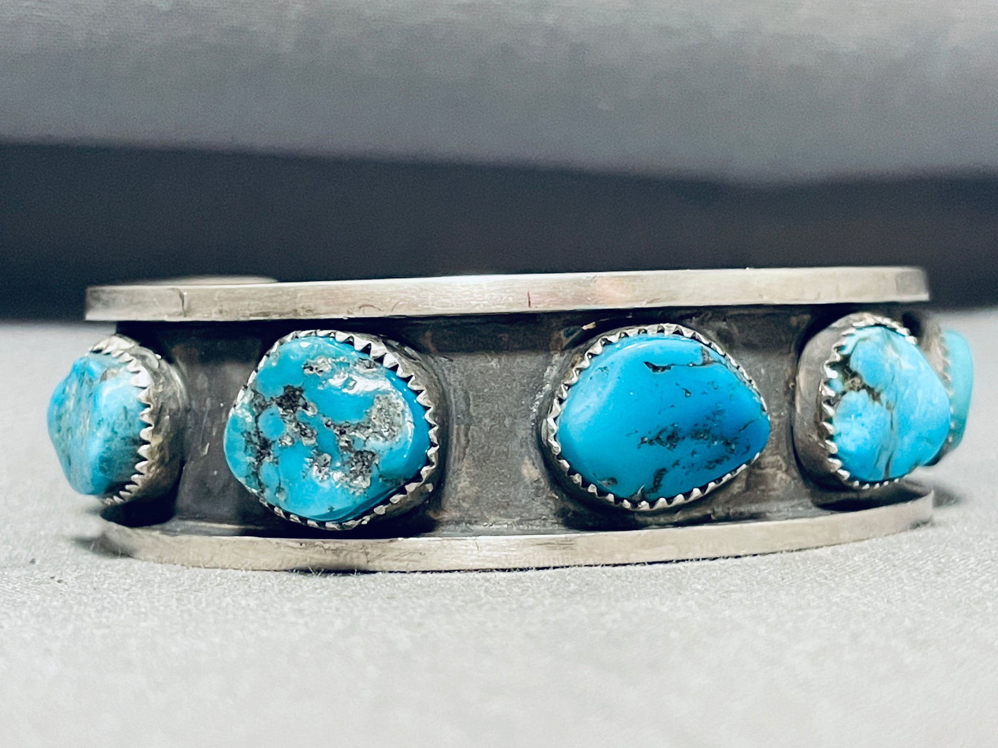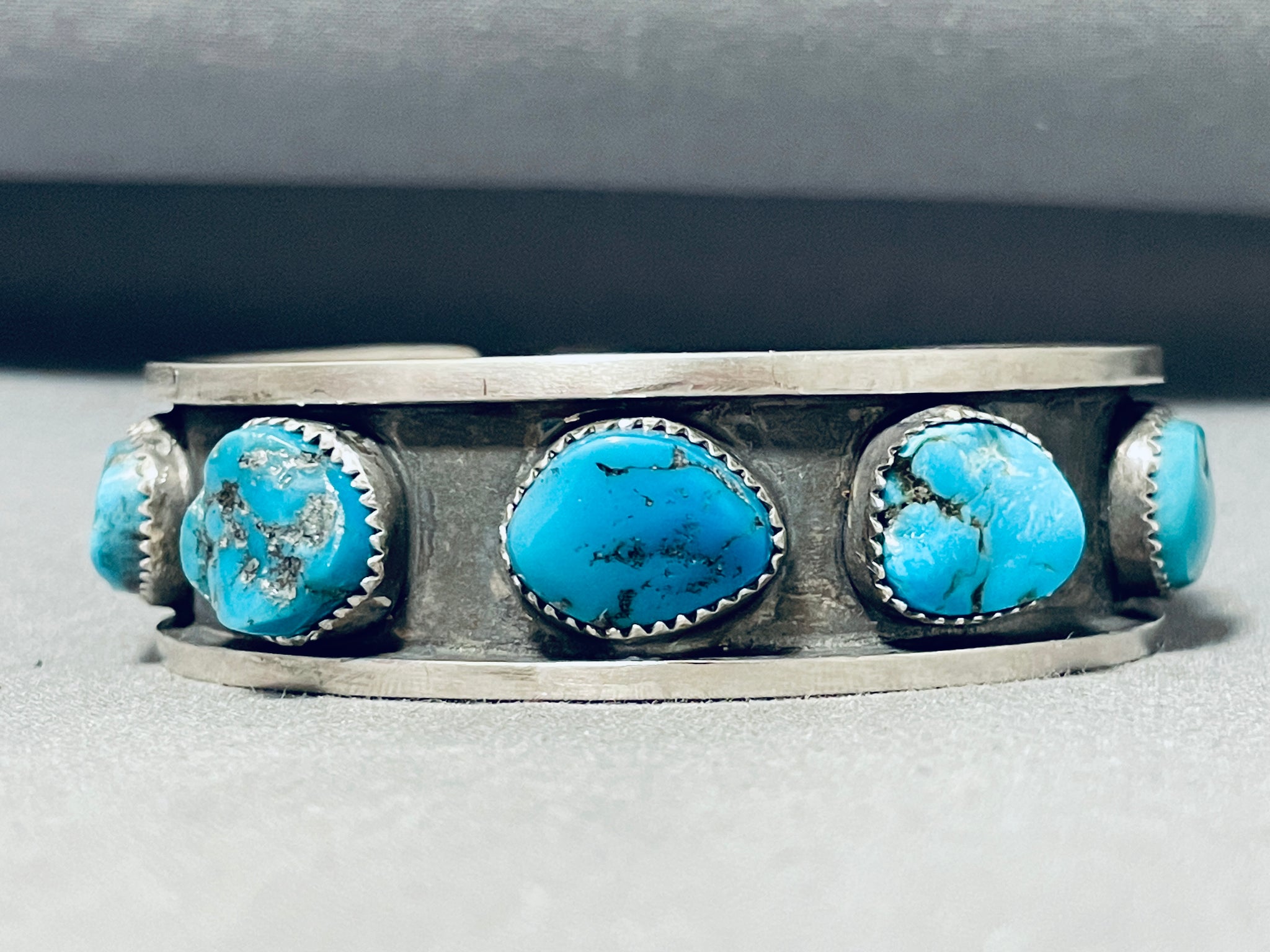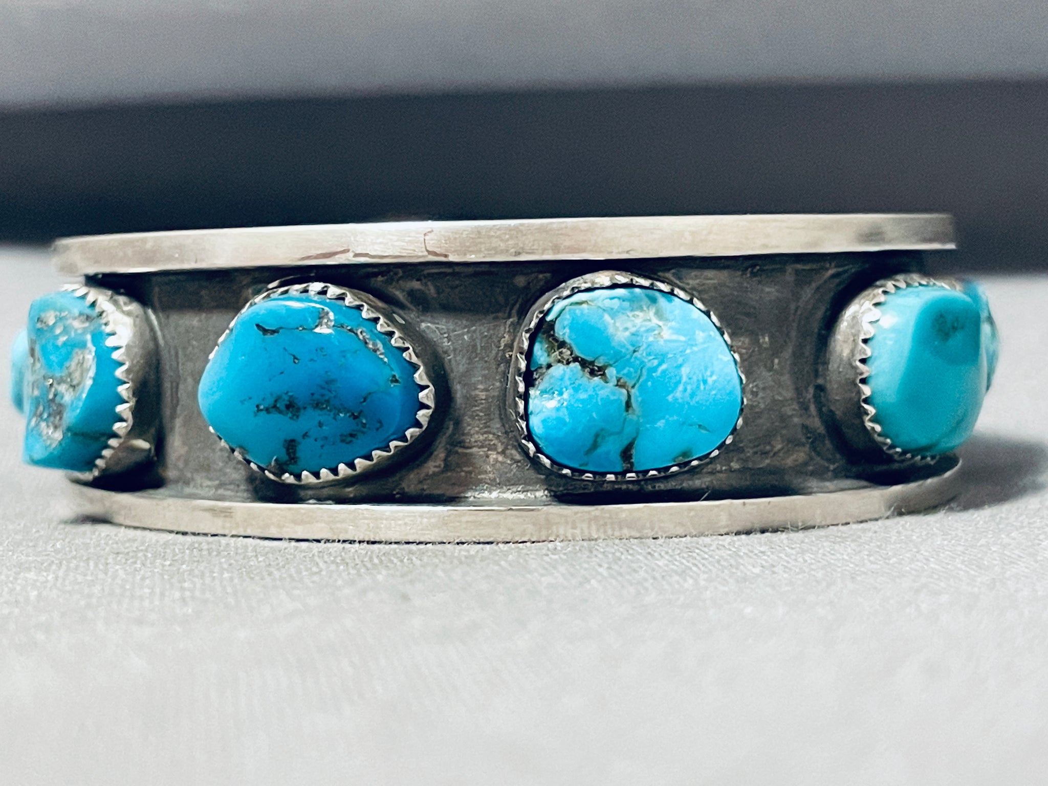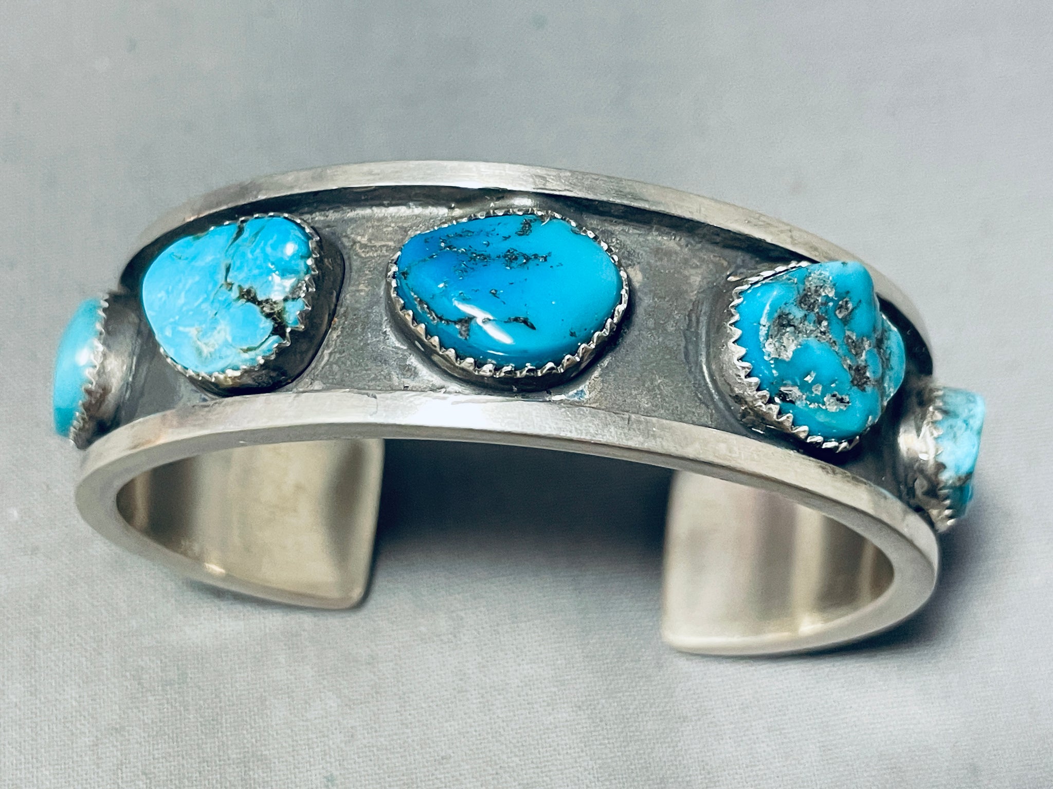 Brilliant Native American Navajo Signed 7 Morenci Turquoise Sterling Silver Bracelet