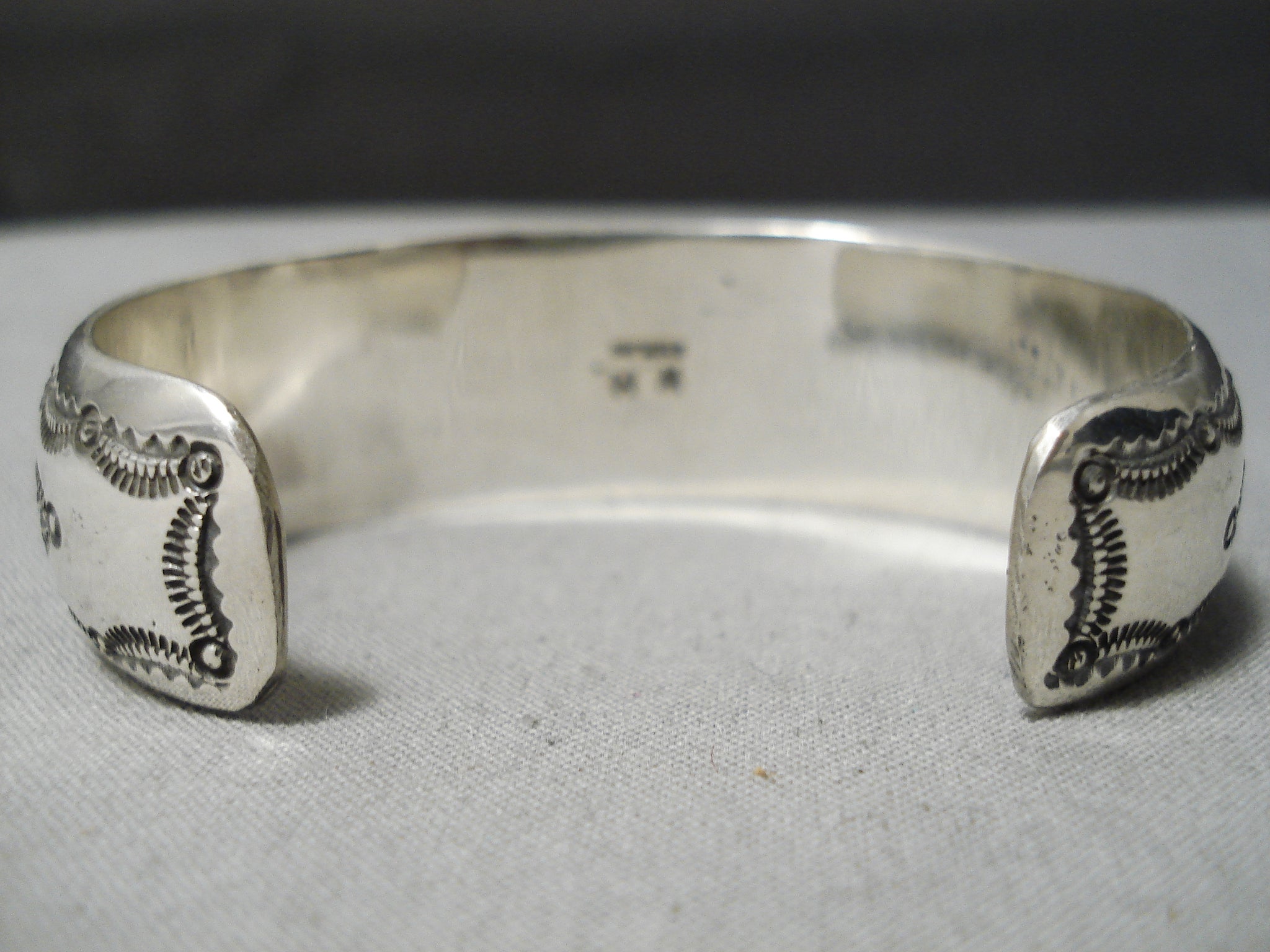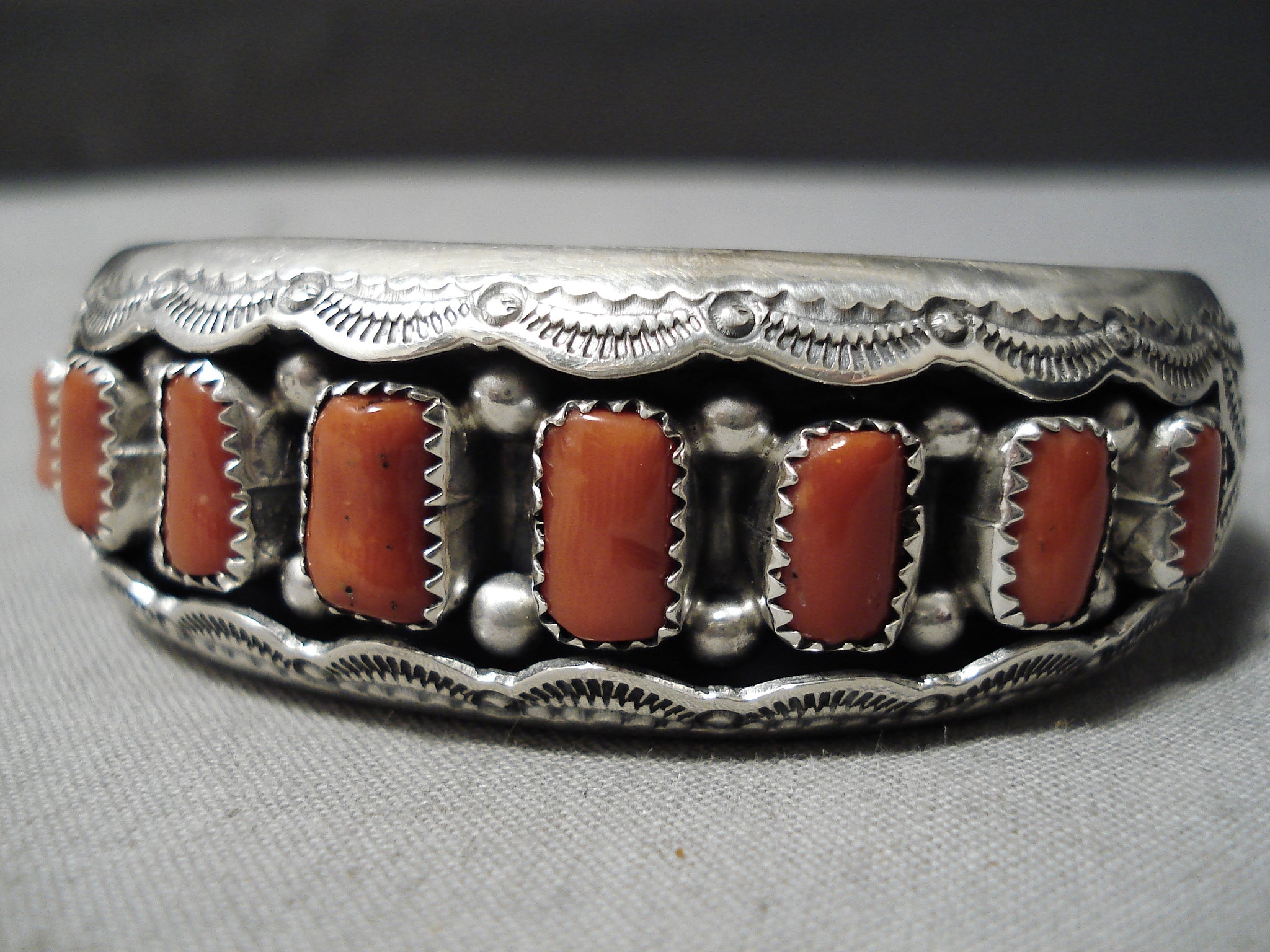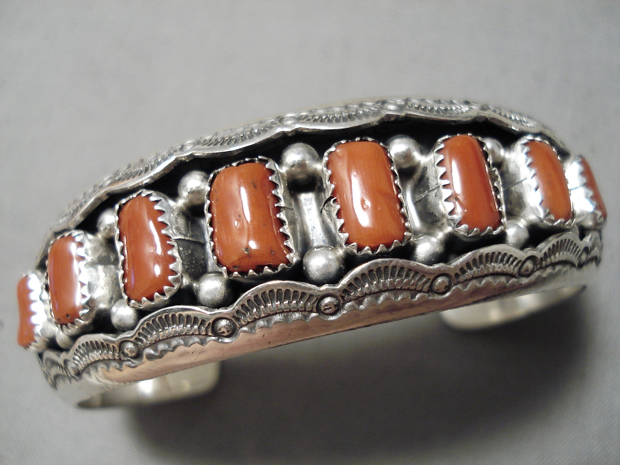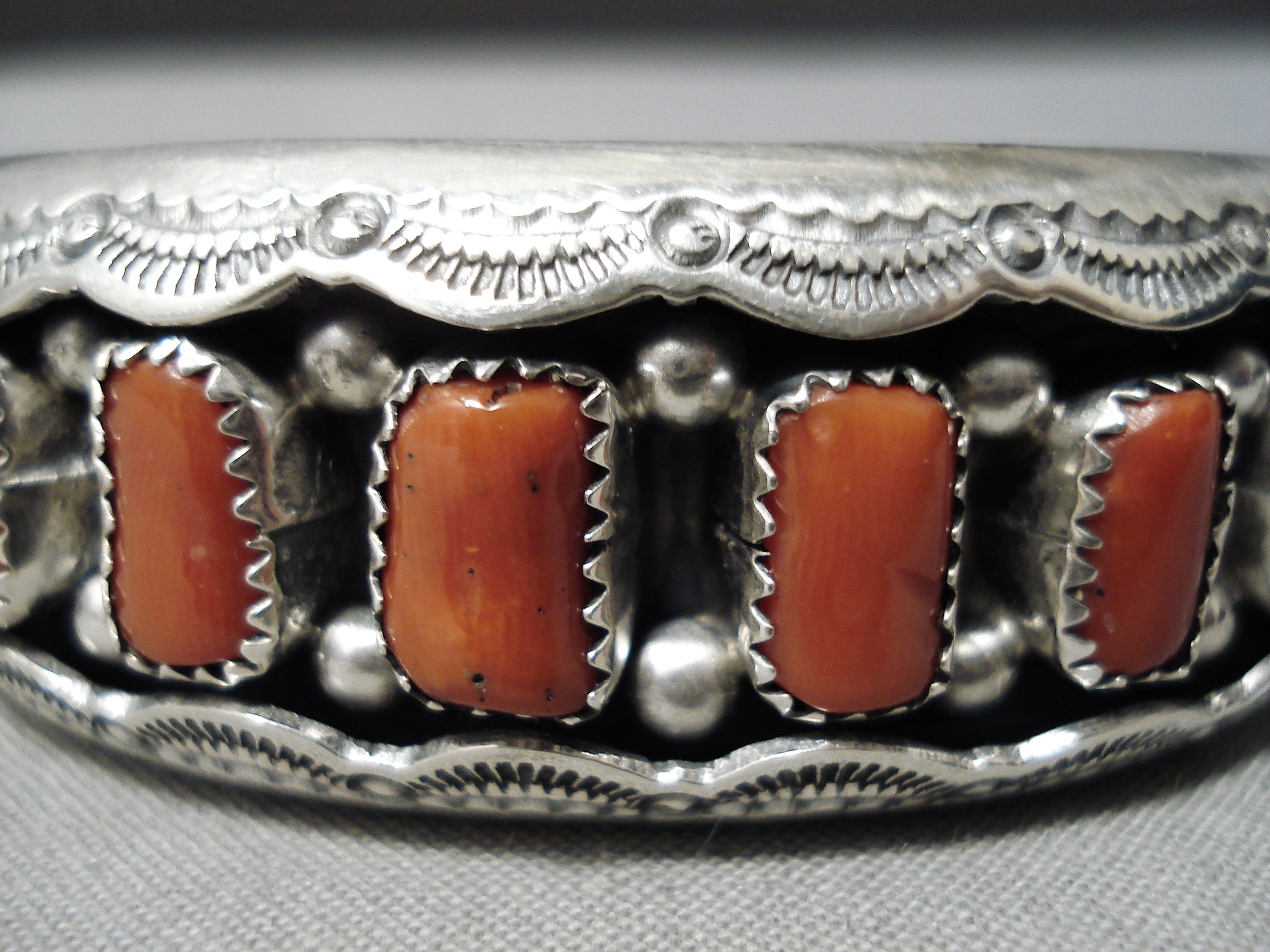 Brilliant Navajo Coral Sterling Silver Bracelet Old Native American