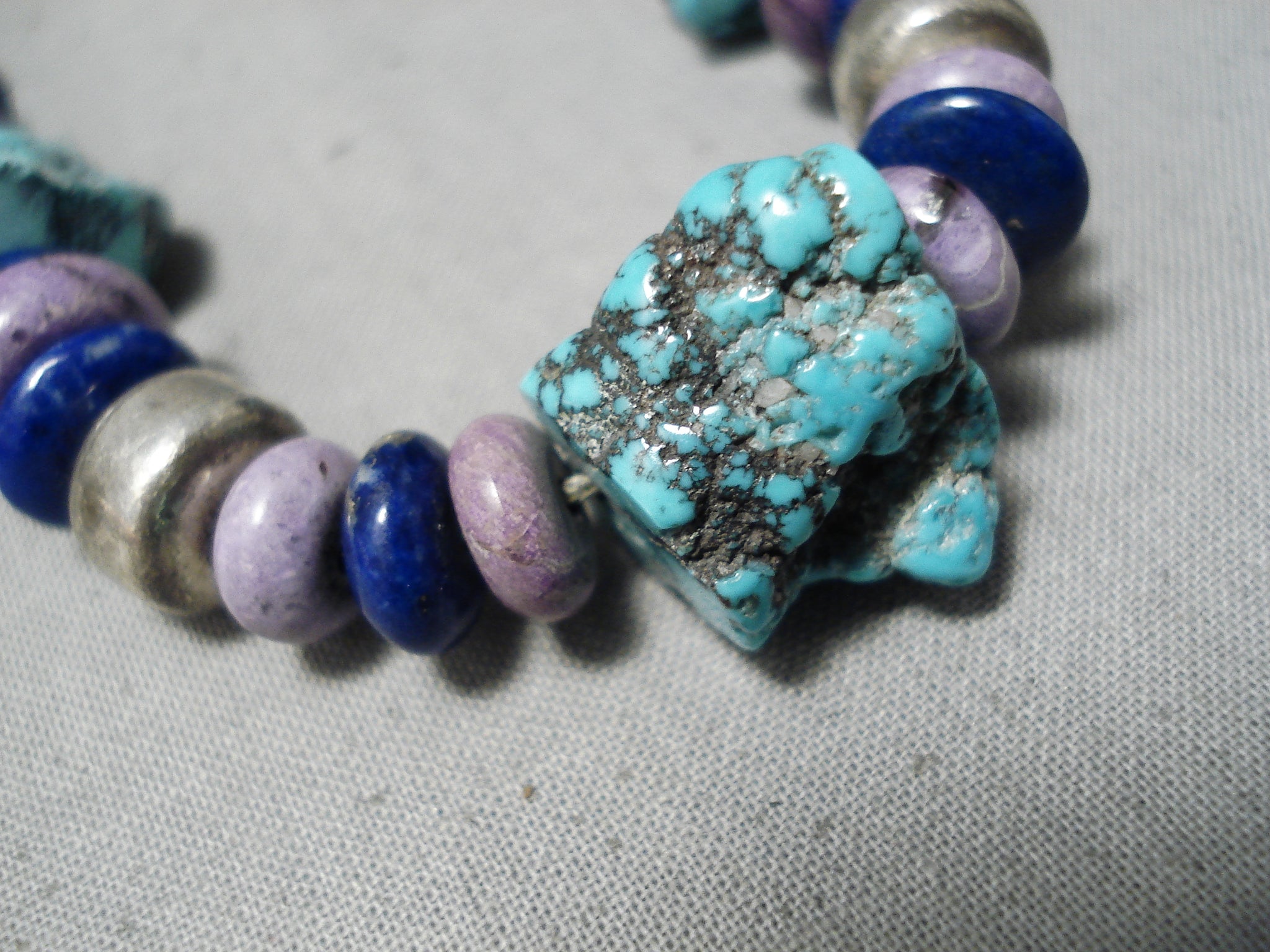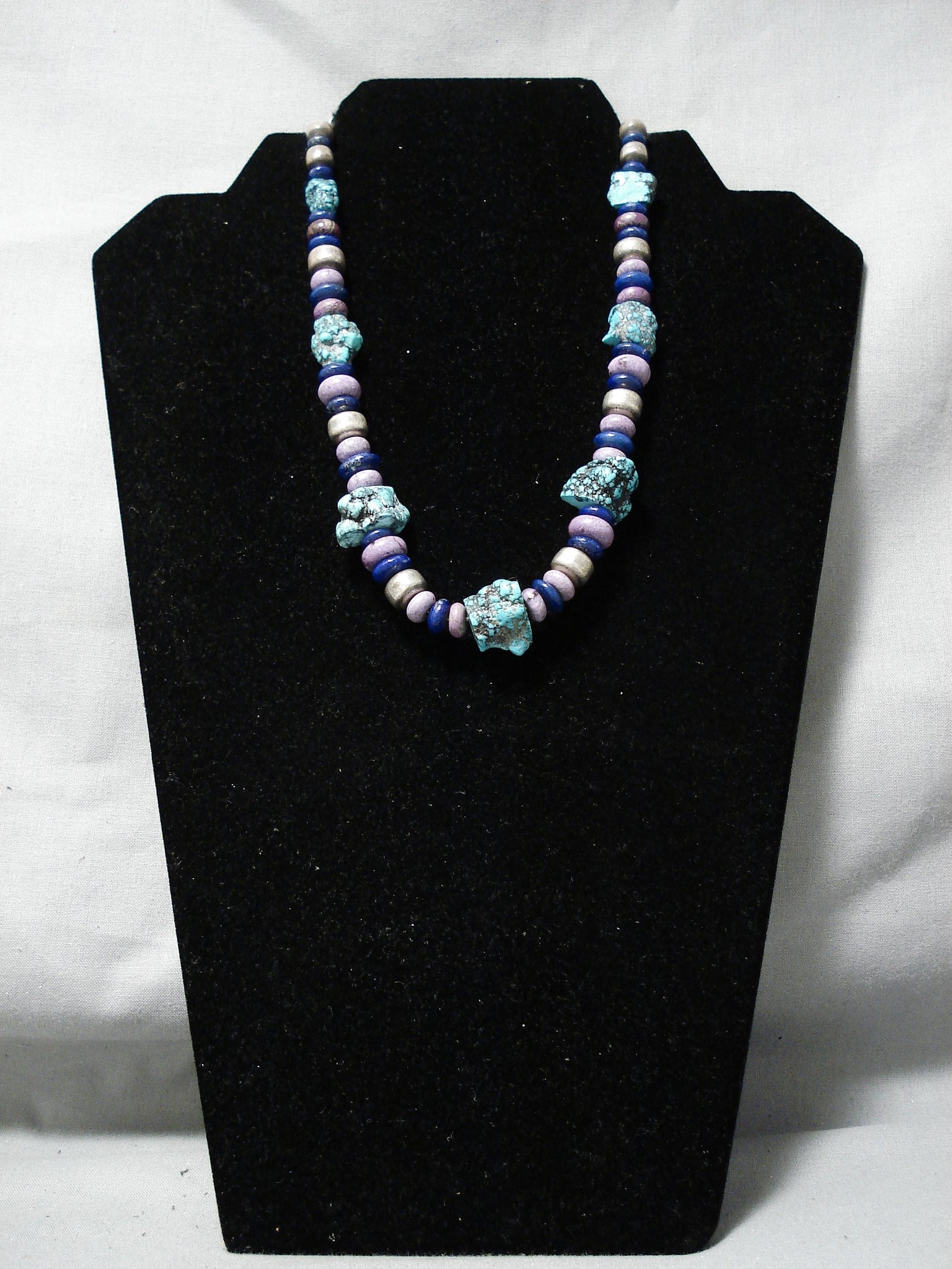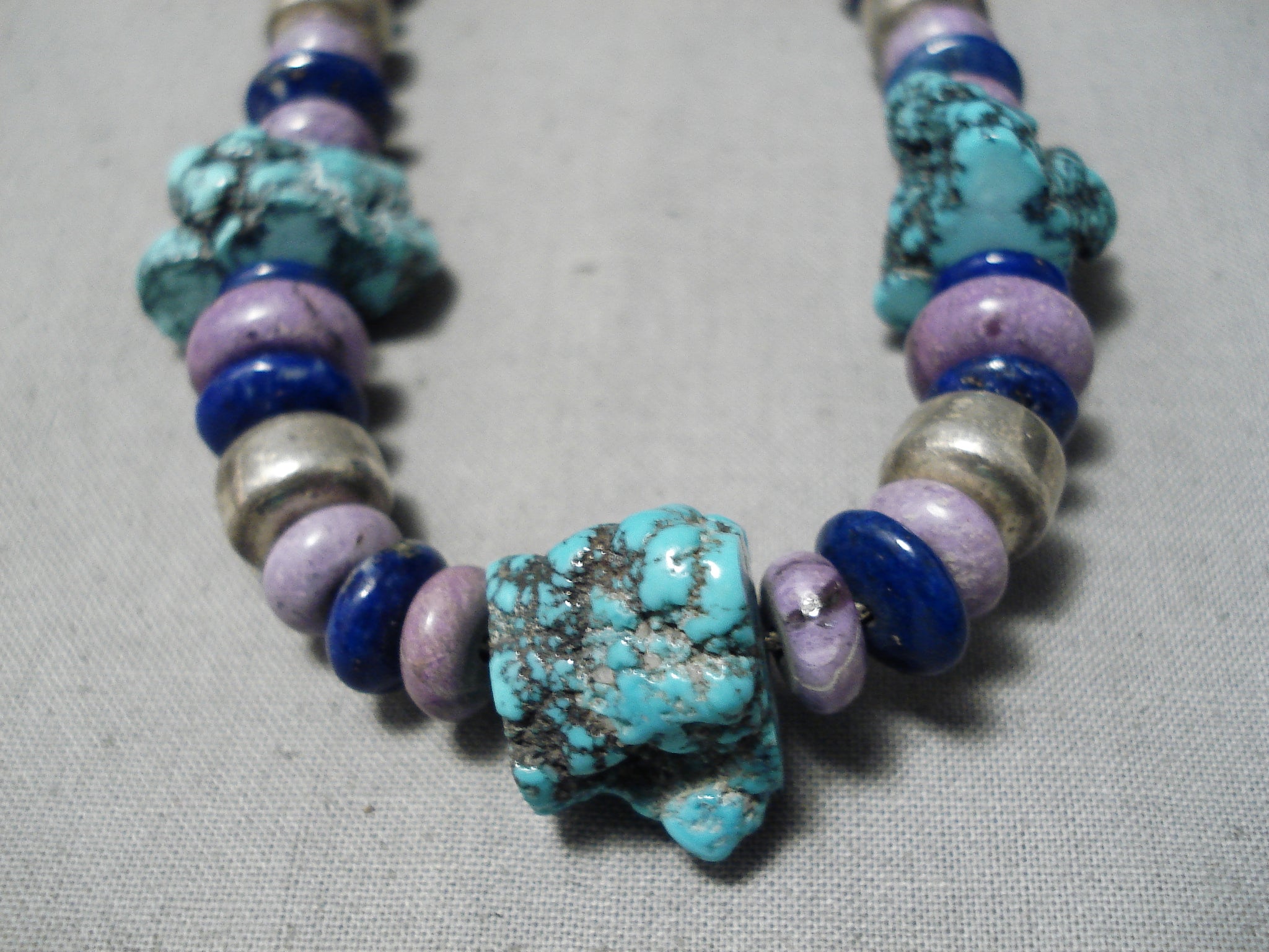 Brilliant Vintage Native American Navajo Lapis Turquoise Sterling Silver Necklace Old