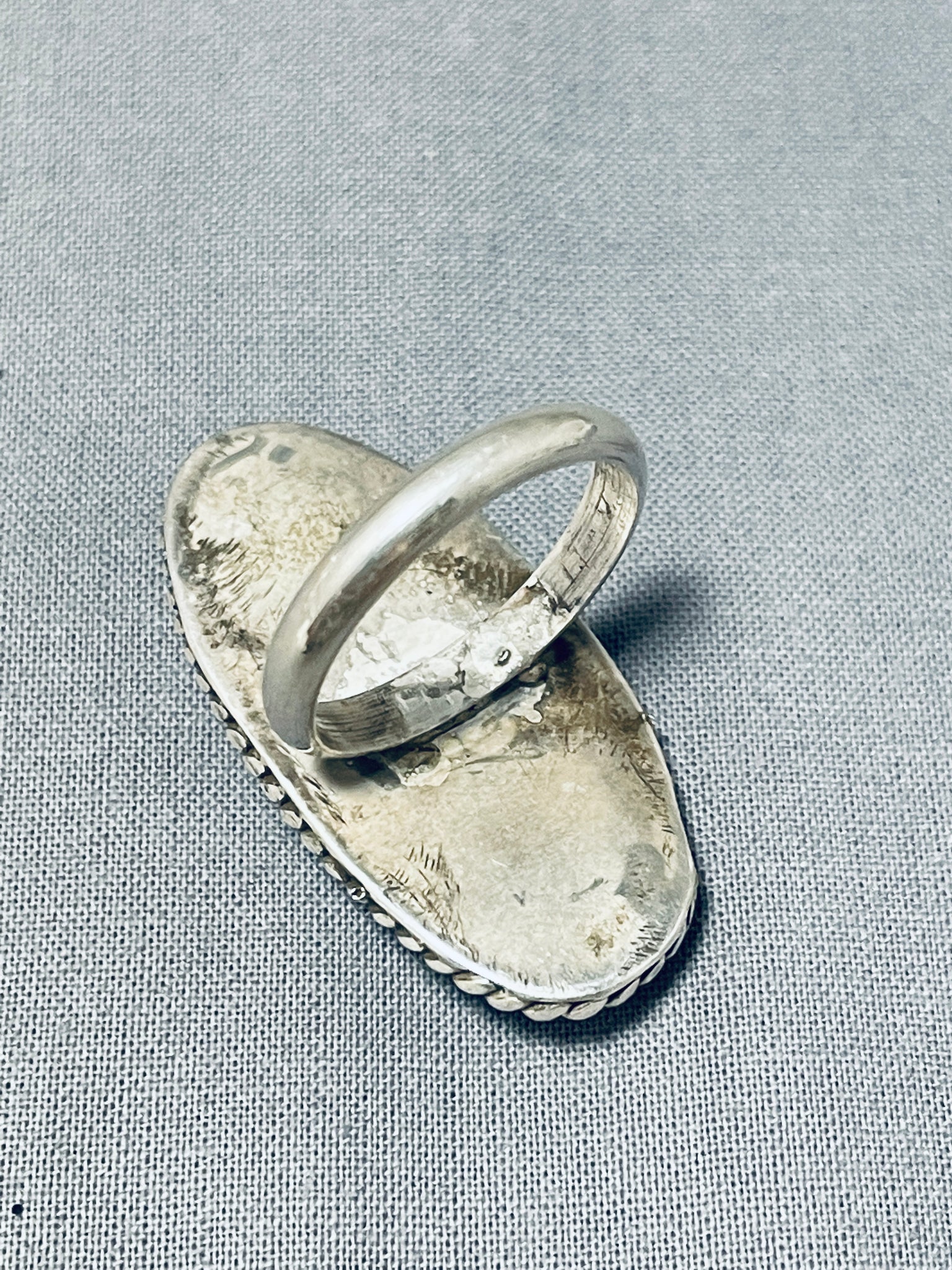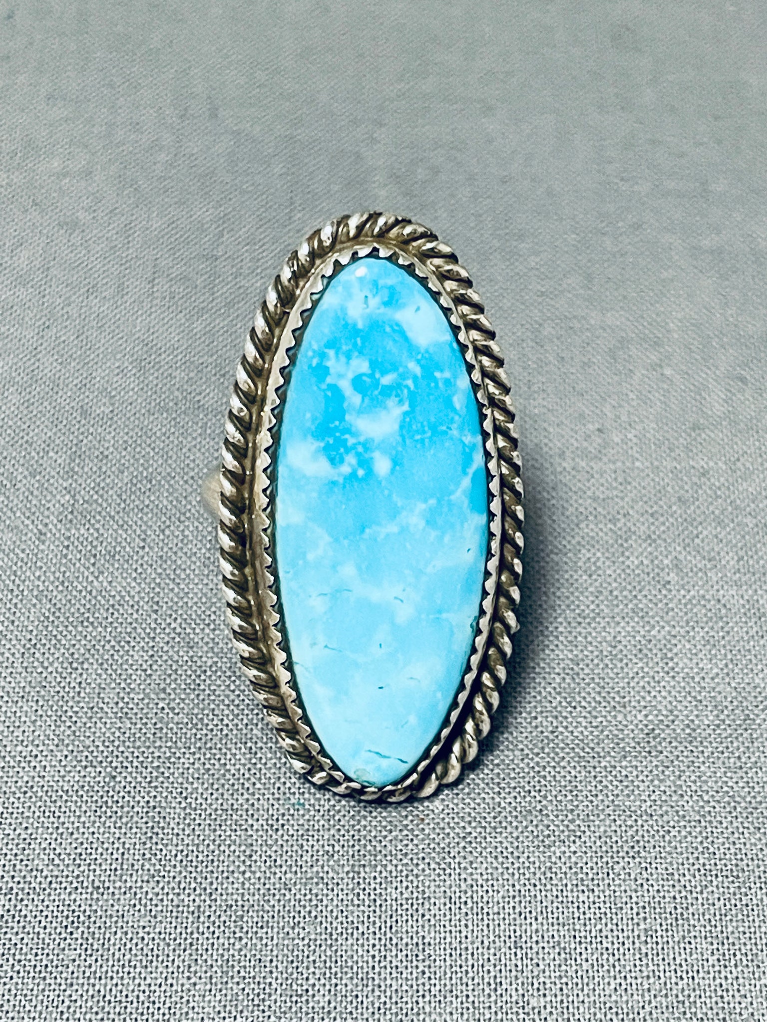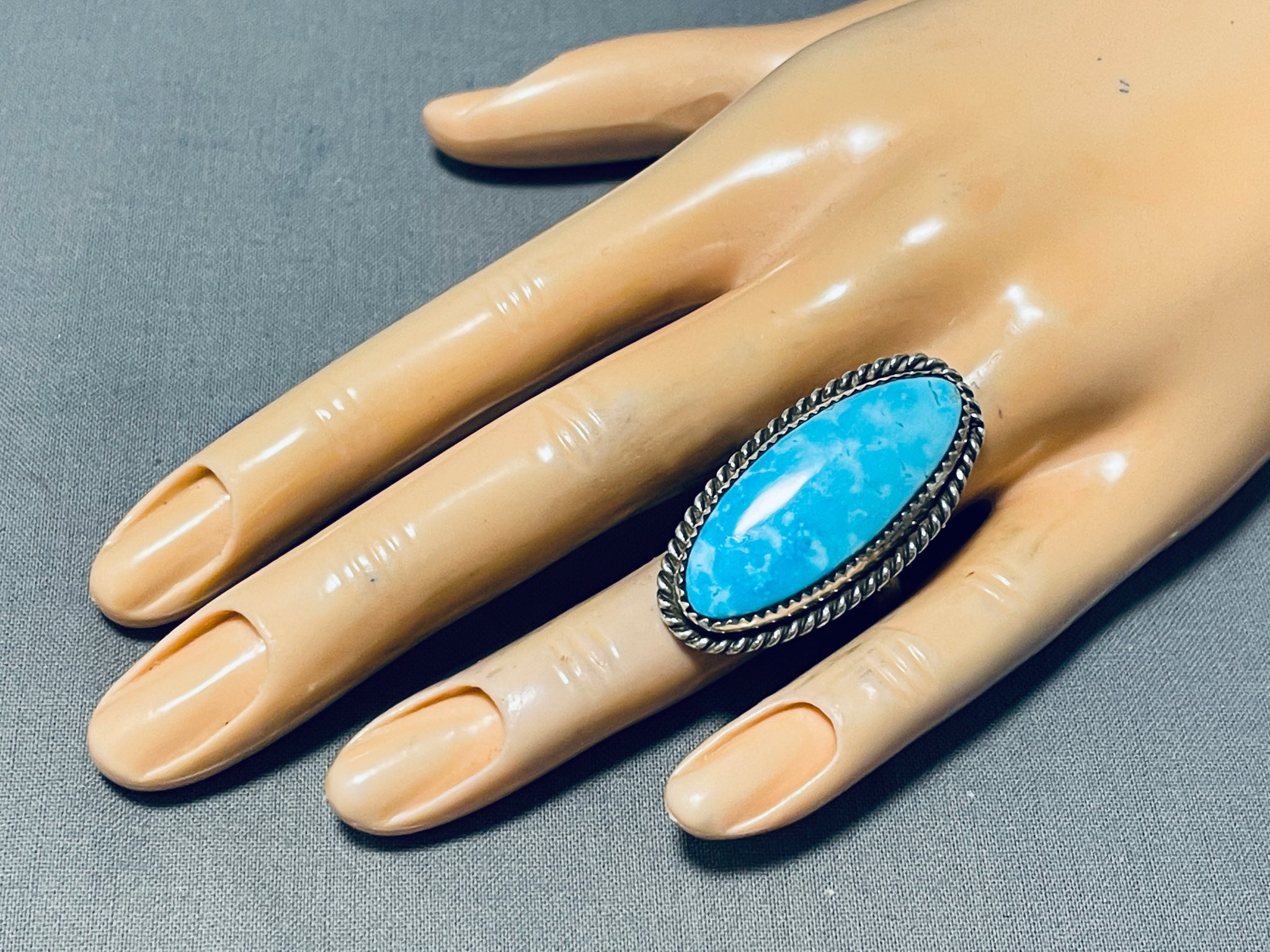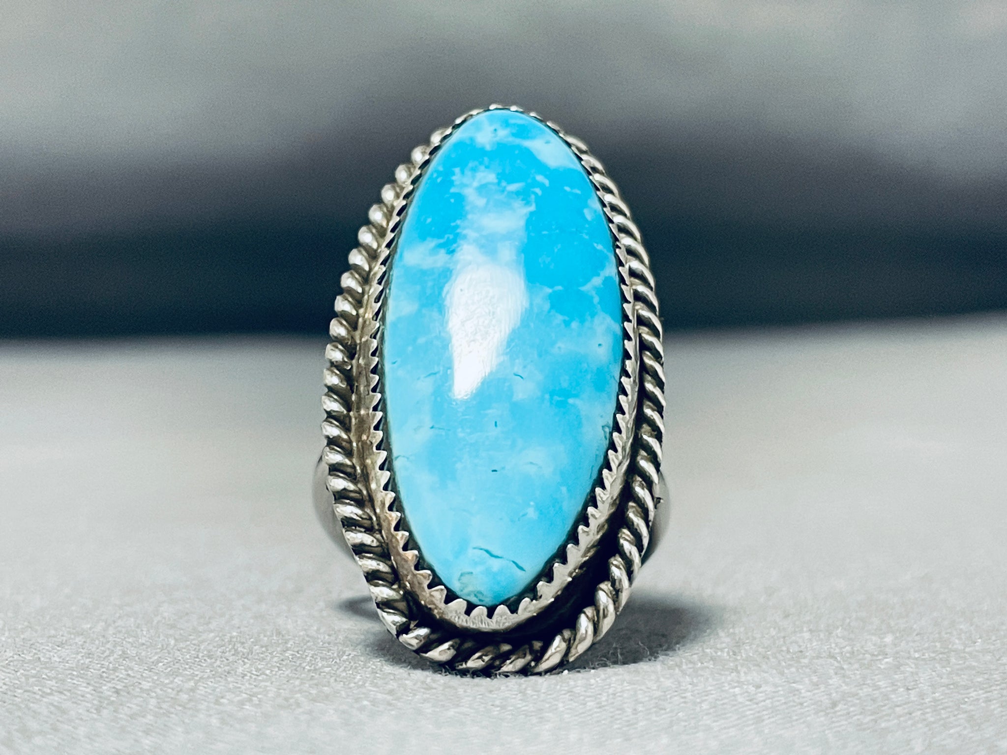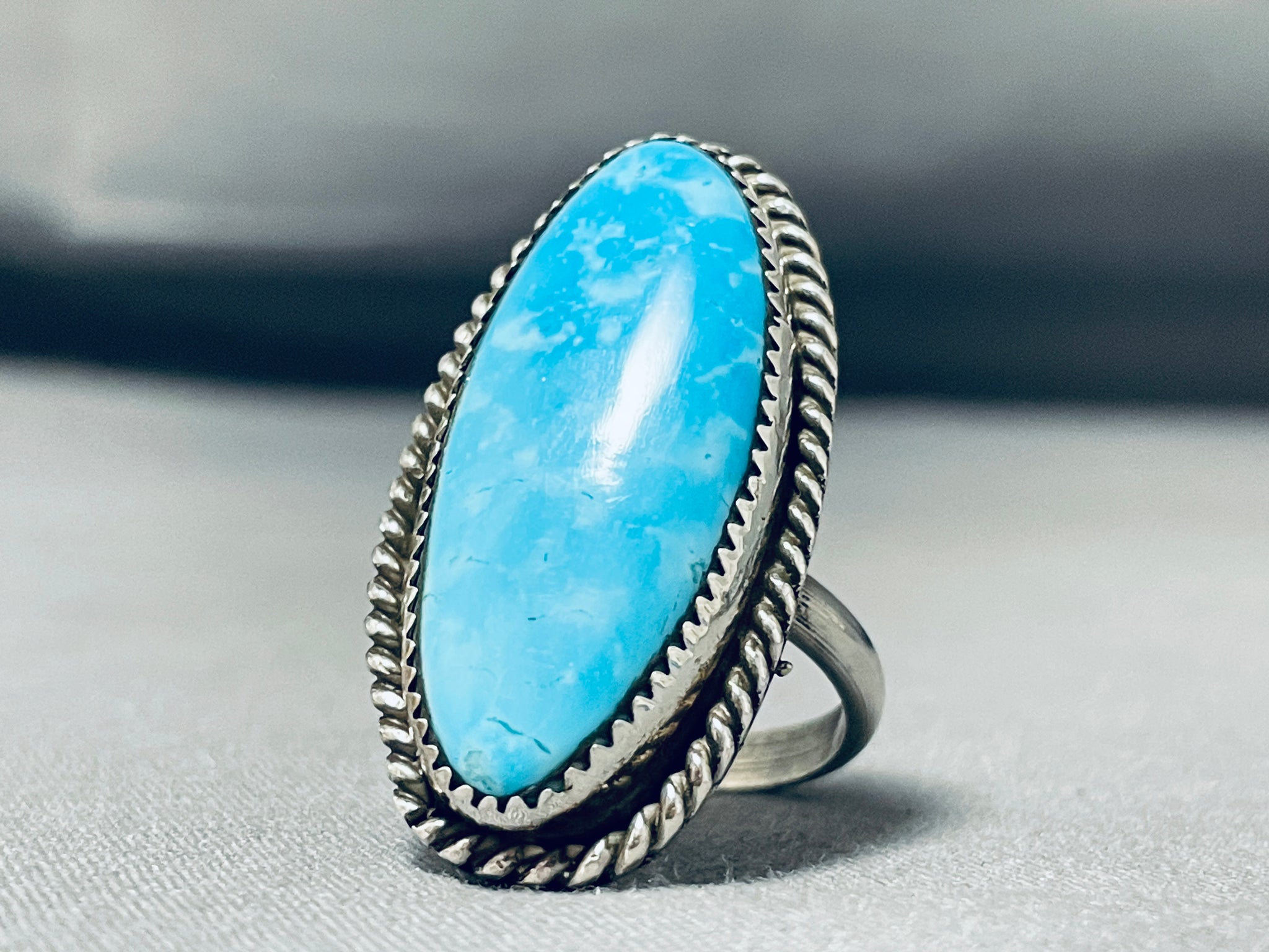 Brilliant Vintage Native American Navajo Large Kingman Turquoise Sterling Silver Ring