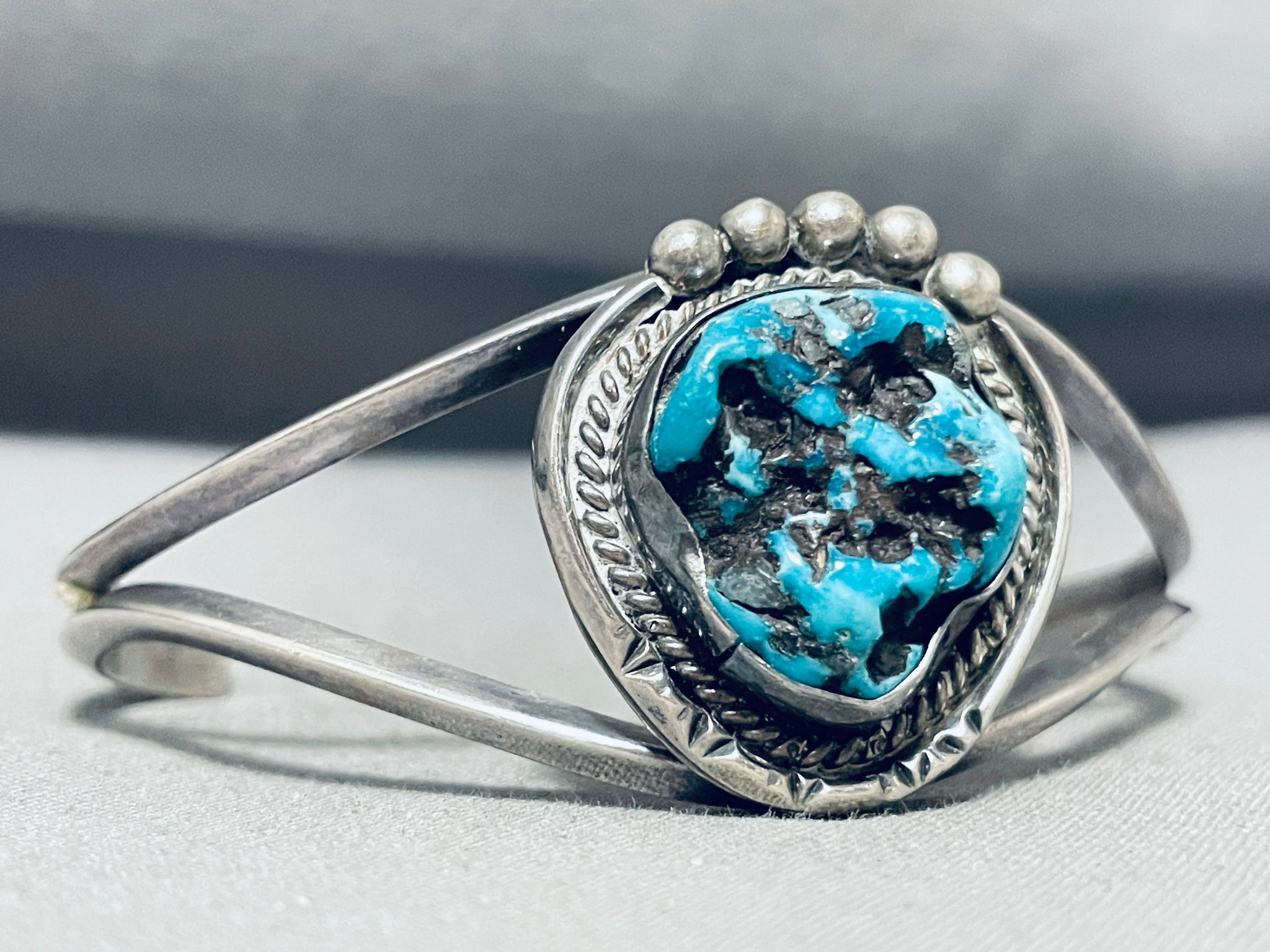 Brilliant Vintage Native American Navajo Seafoam Turquoise Sterling Silver Bracelet