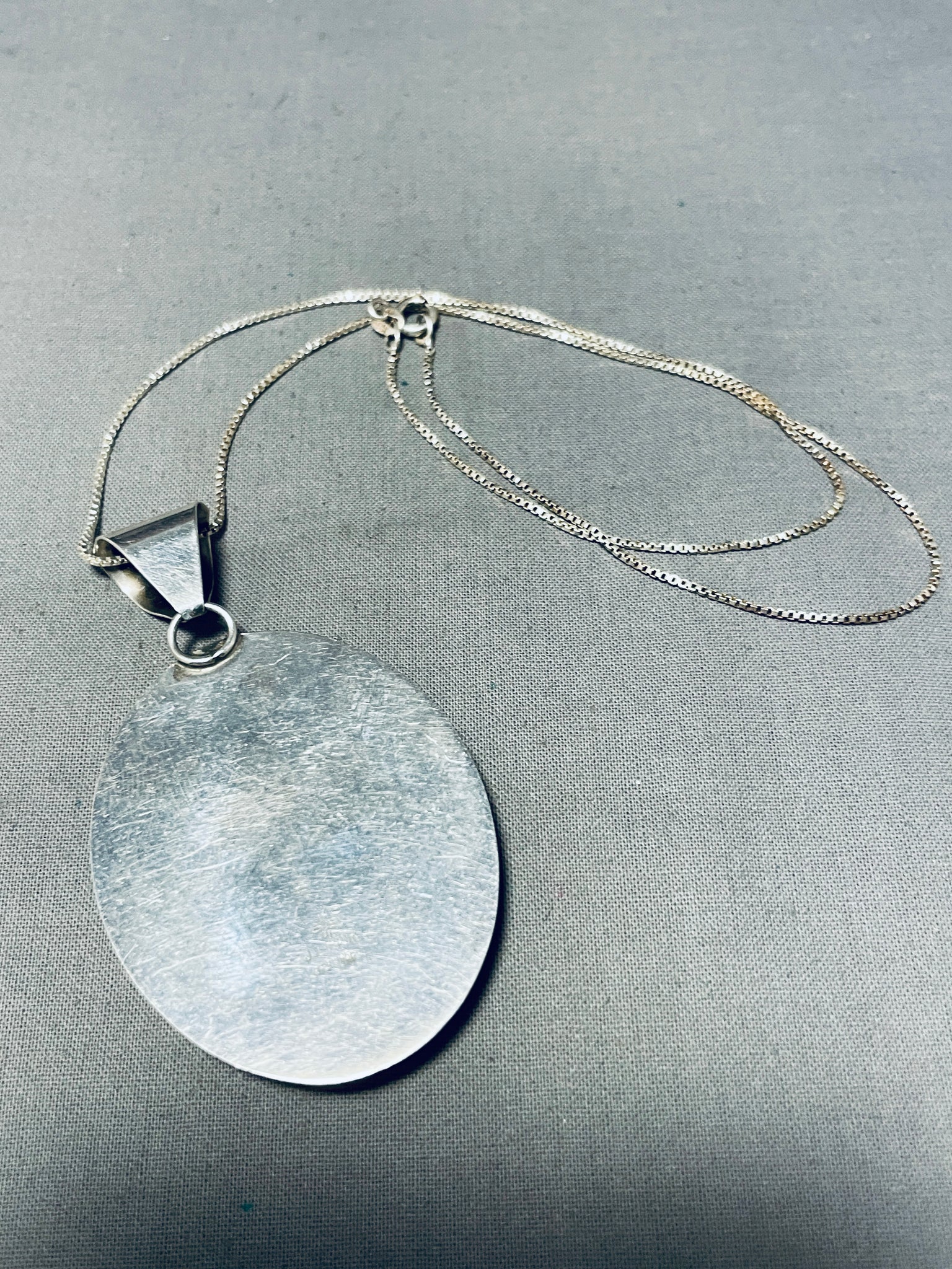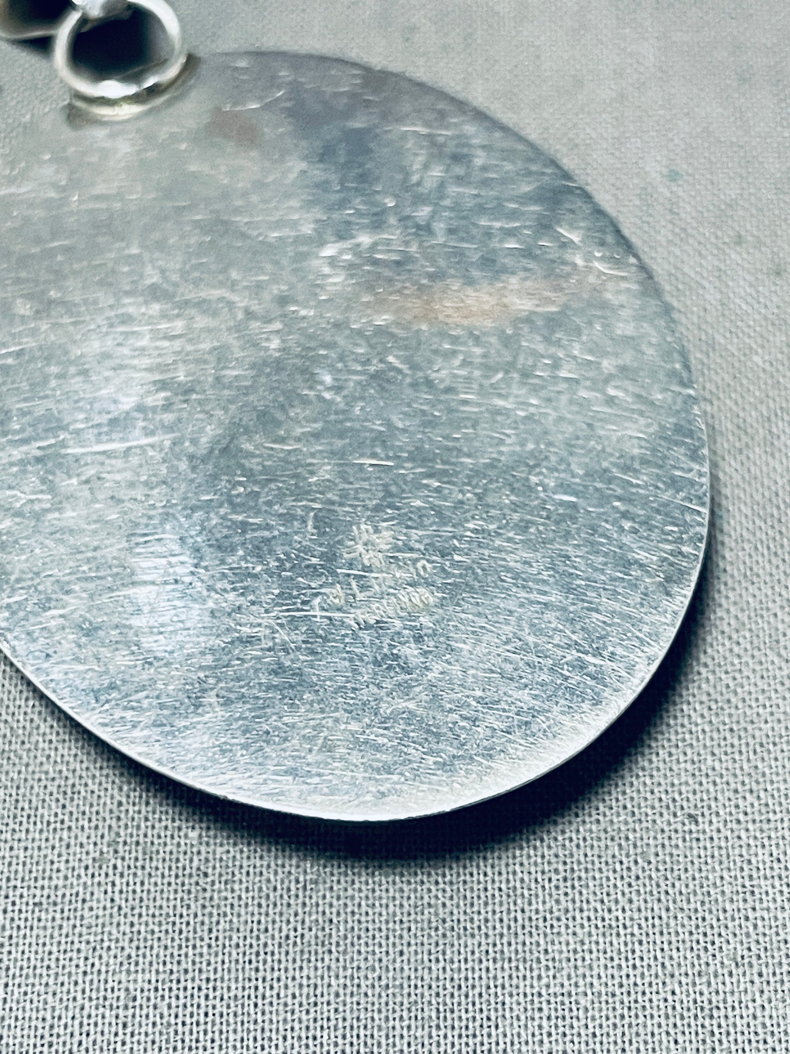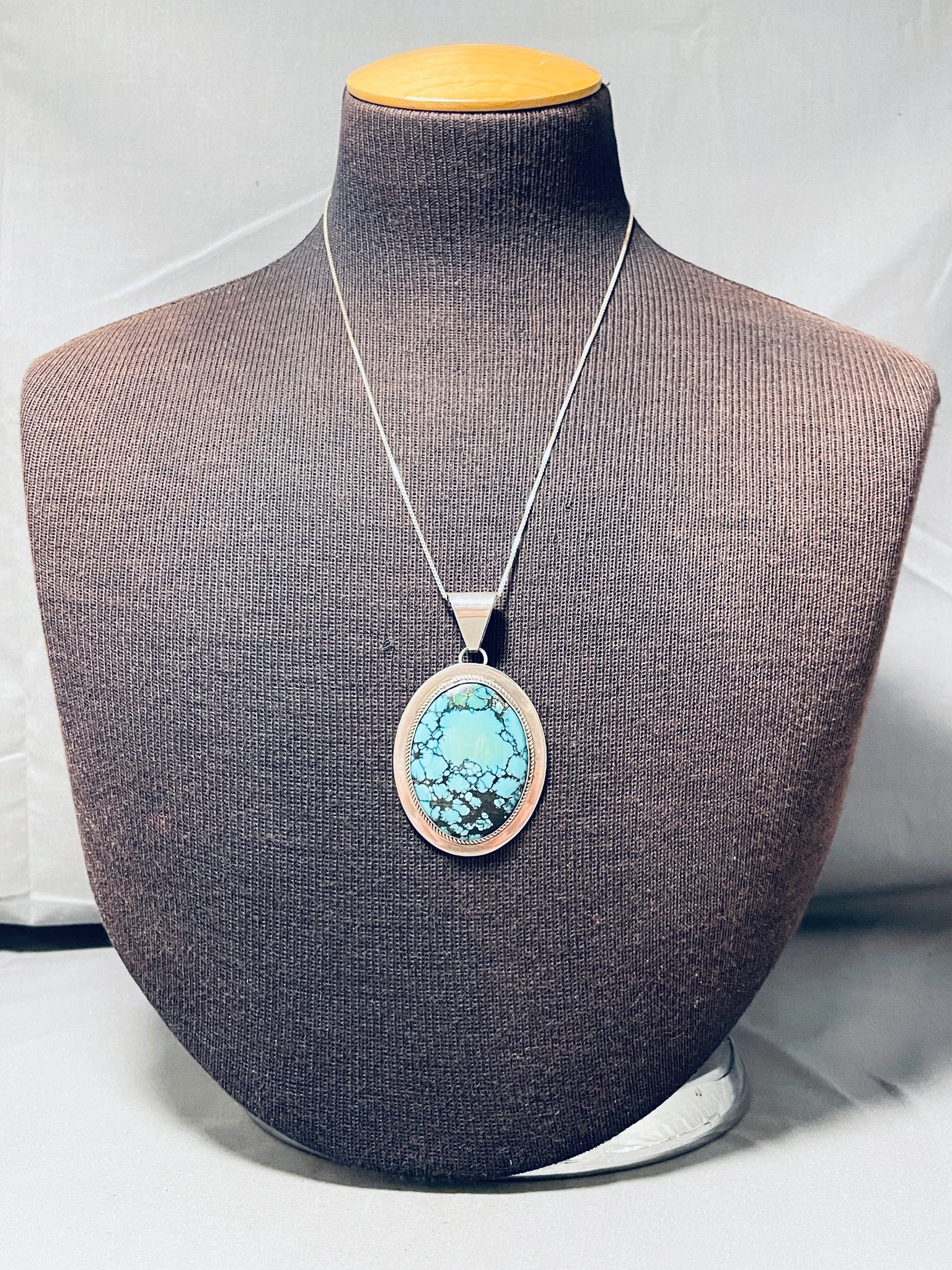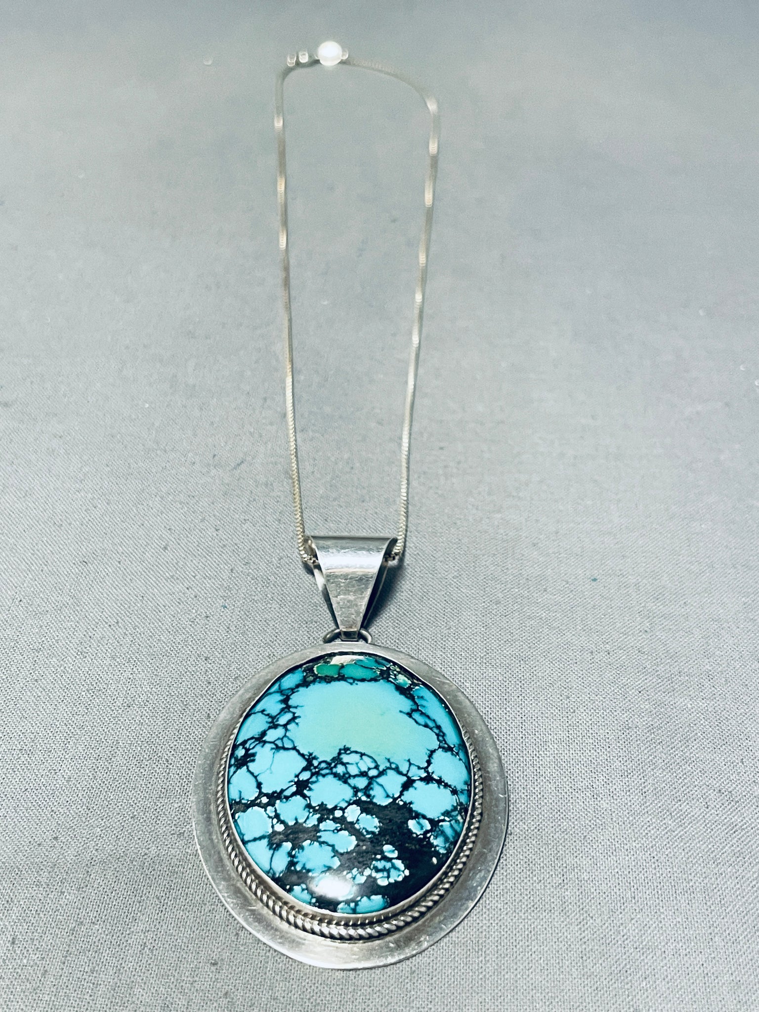 Brilliant Vintage Native American Navajo Signed Spiderweb Turquoise Sterling Silver Necklace