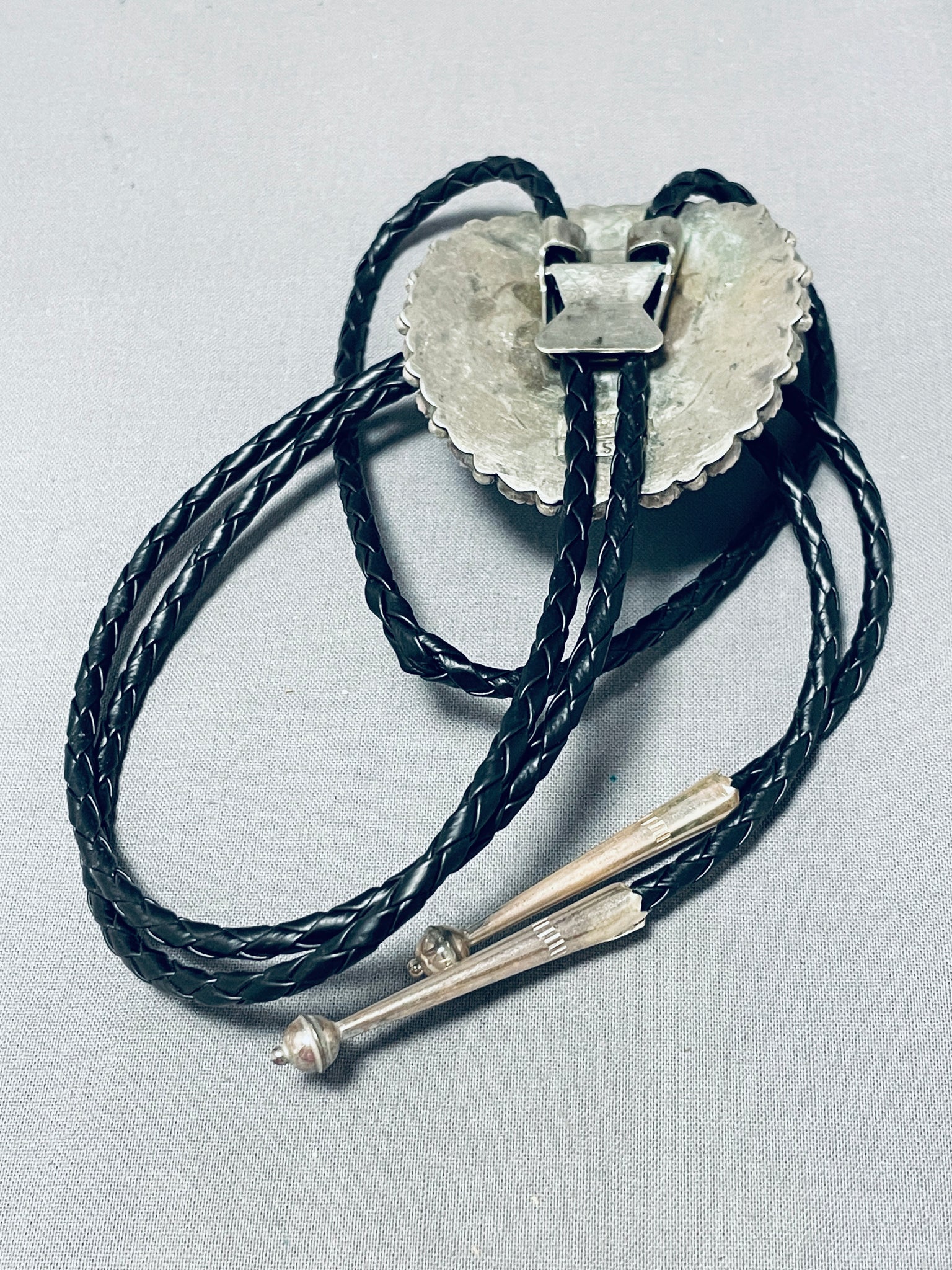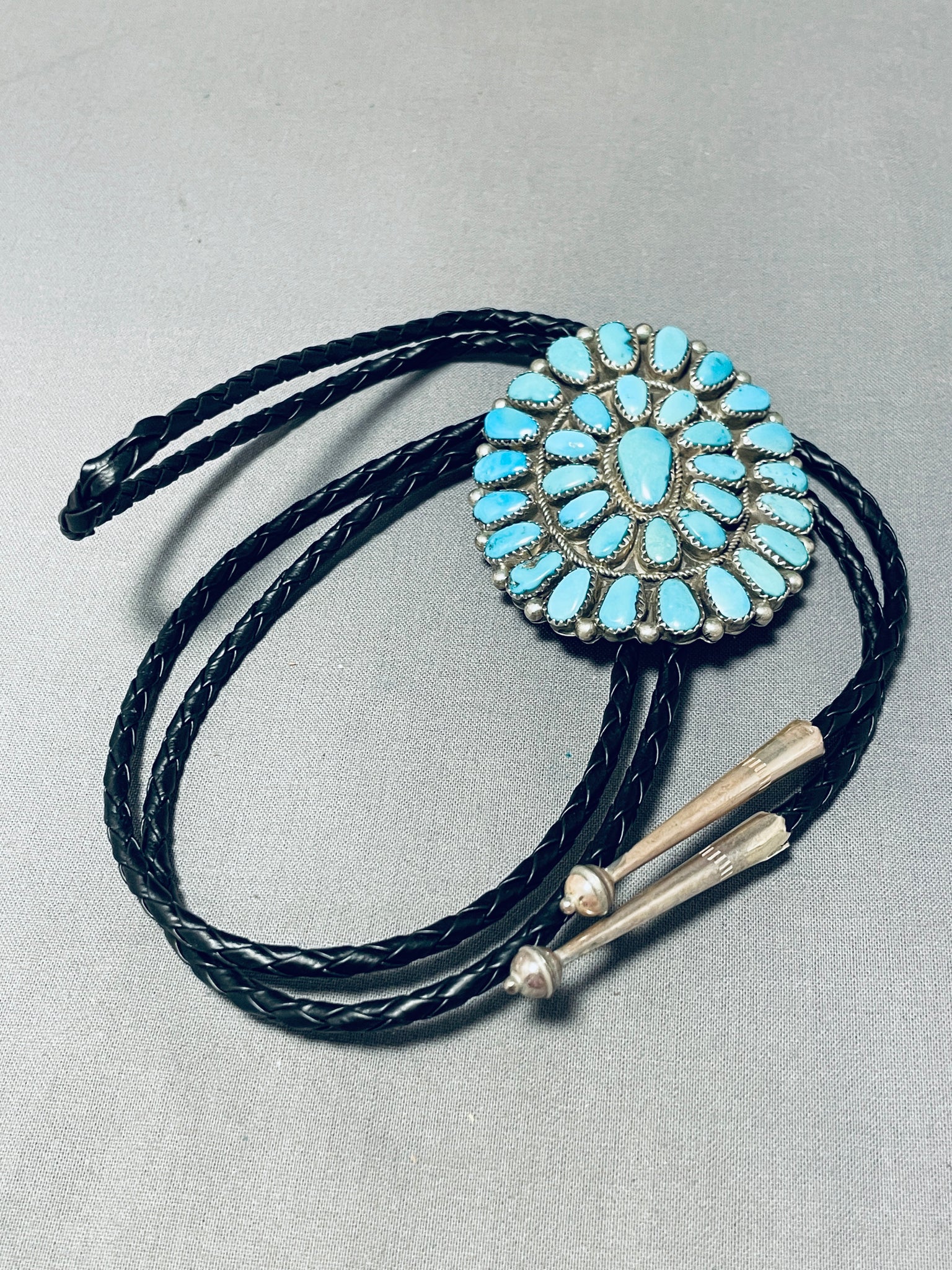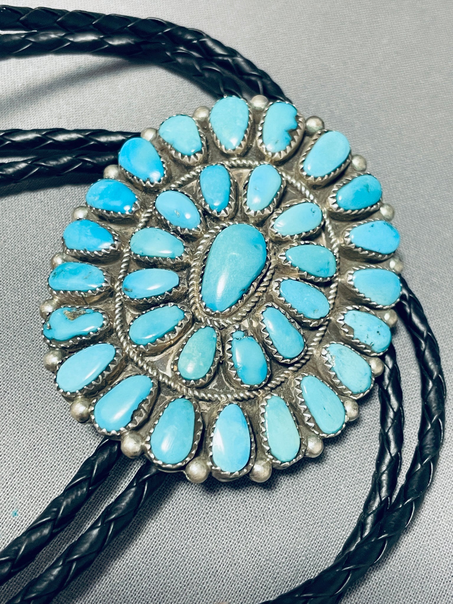 Brilliant Vintage Native American Navajo Signed Turquoise Cluster Sterling Silver Bolo