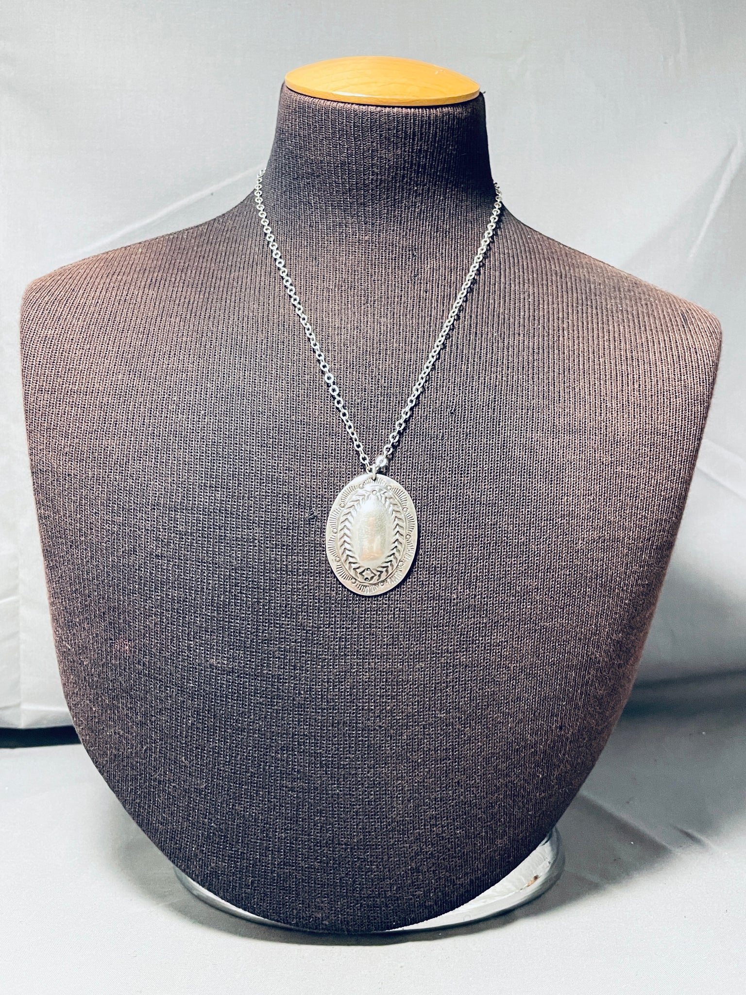 Brilliant Vintage Native American Navajo Sterling Silver Concho Necklace