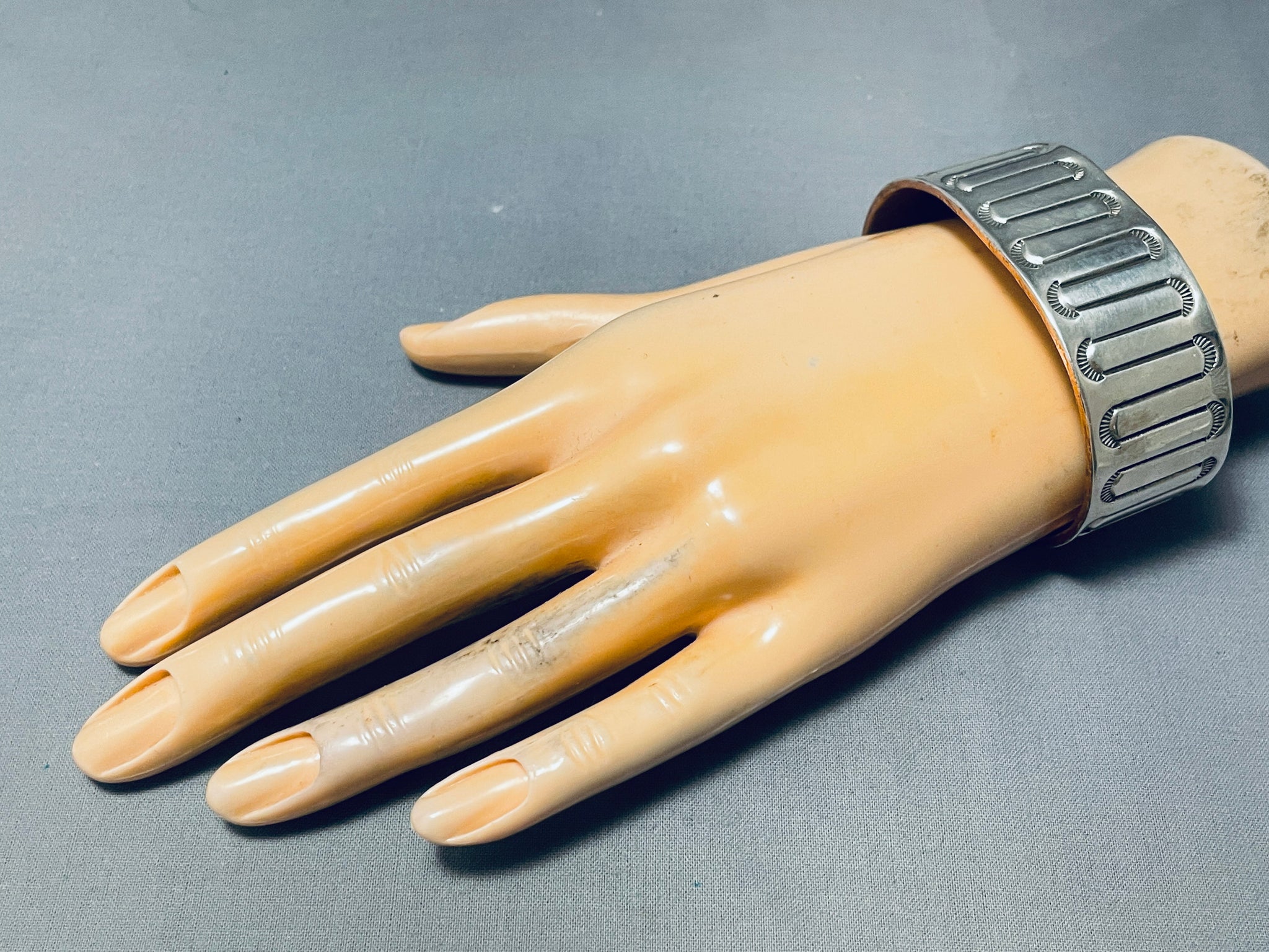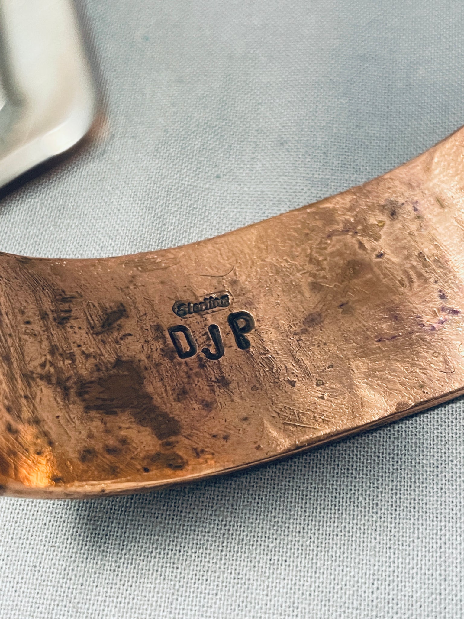 Brilliant Vintage Native American Navajo Sterling Silver Copper Heavy Bracelet