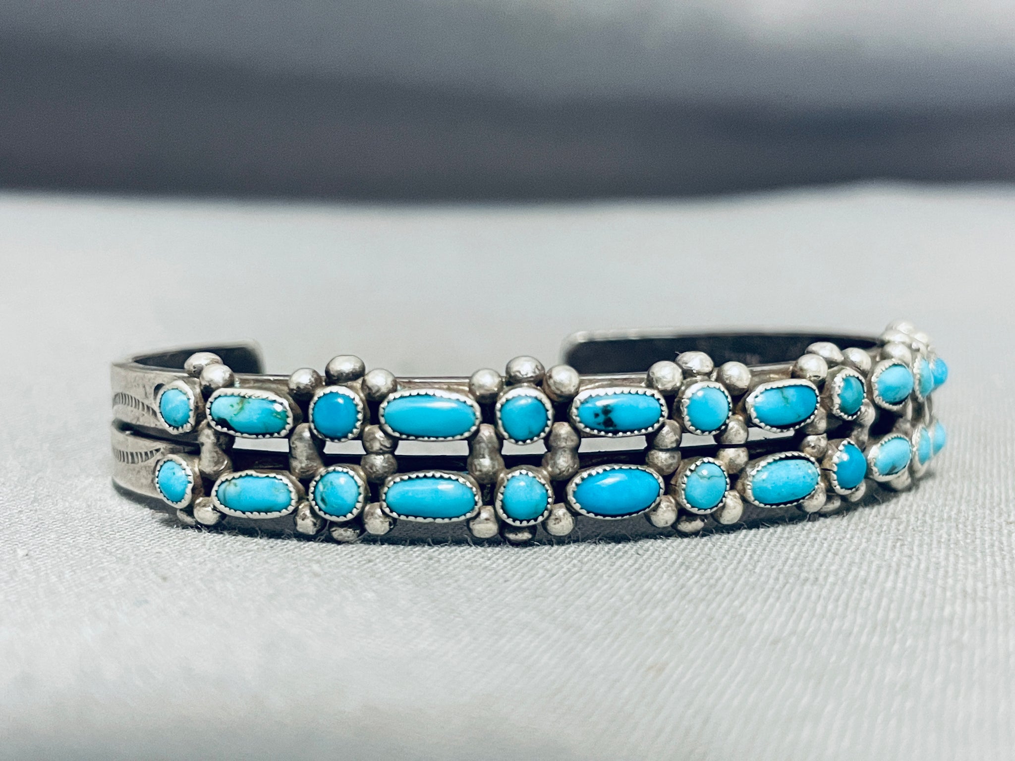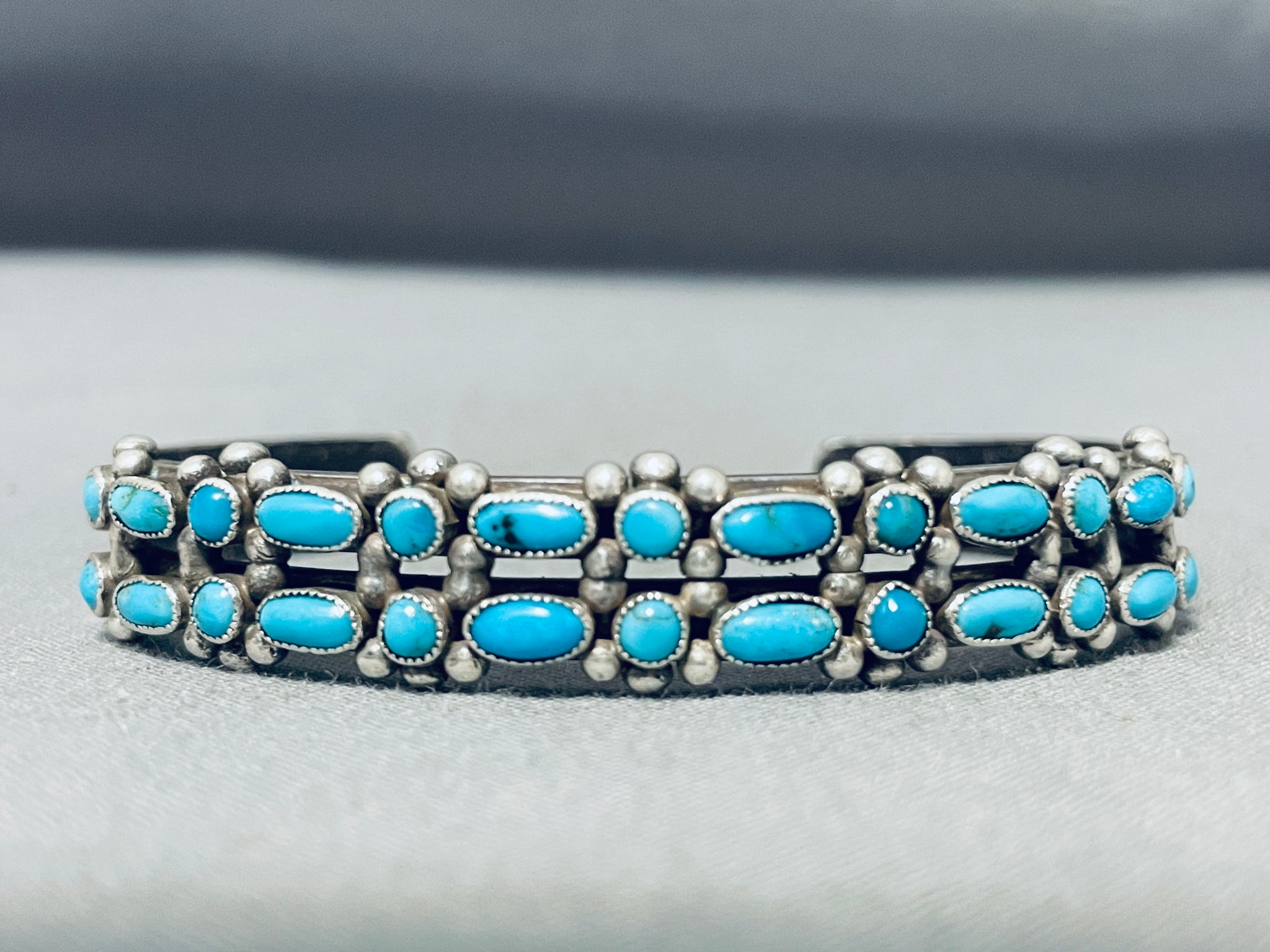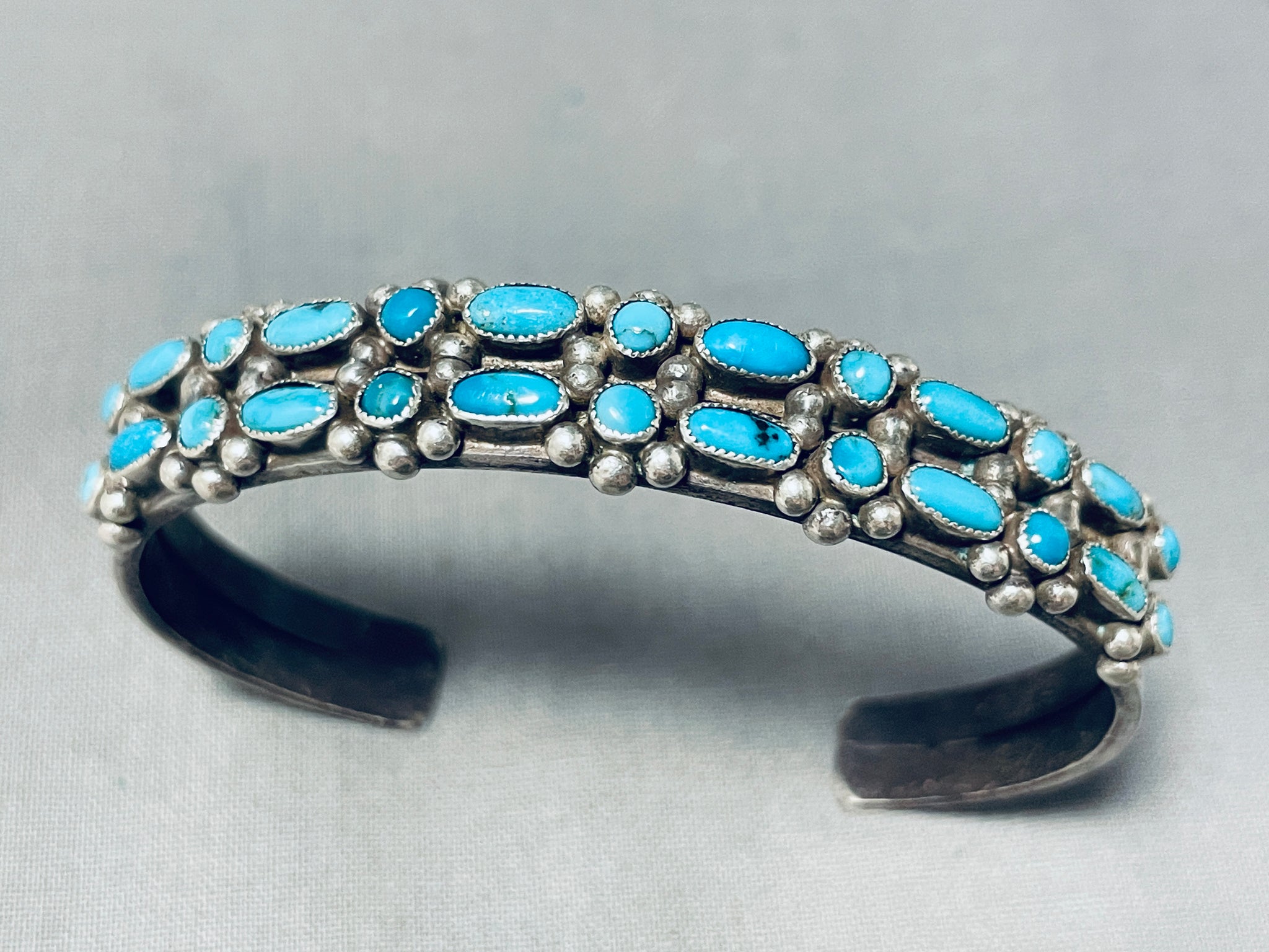 Brilliant Vintage Native American Zuni Blue Gem Turquoise Sterling Silver Bracelet
