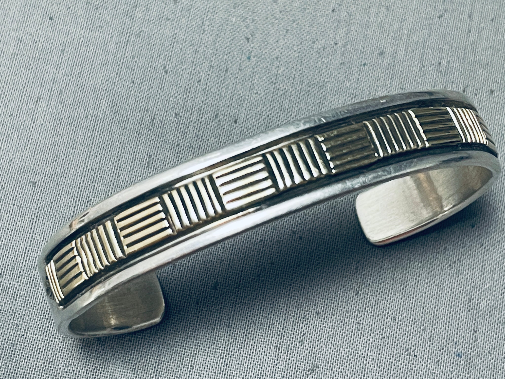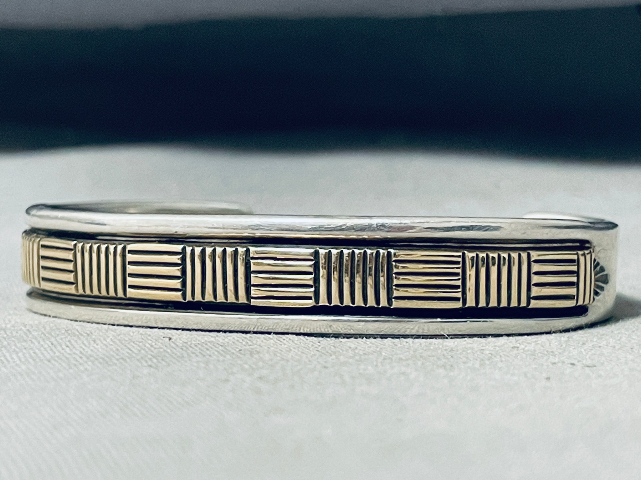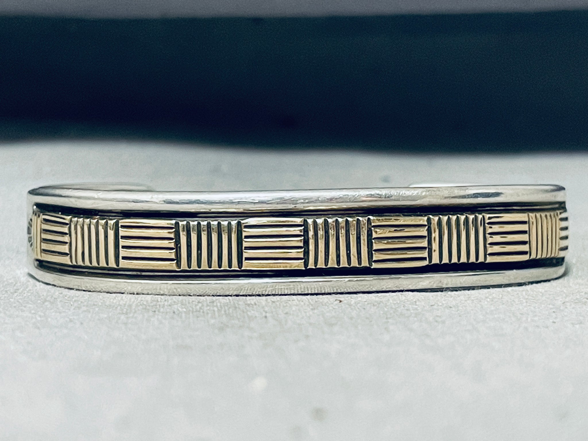 Bruce Morgan Vintage Native American Navajo Sterling Silver 14k Gold Bracelet