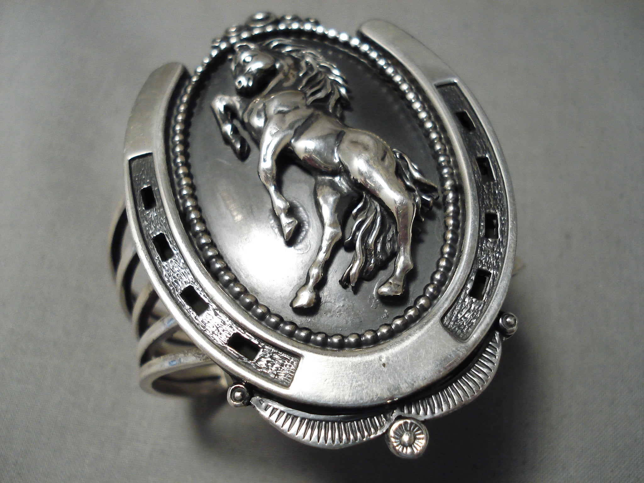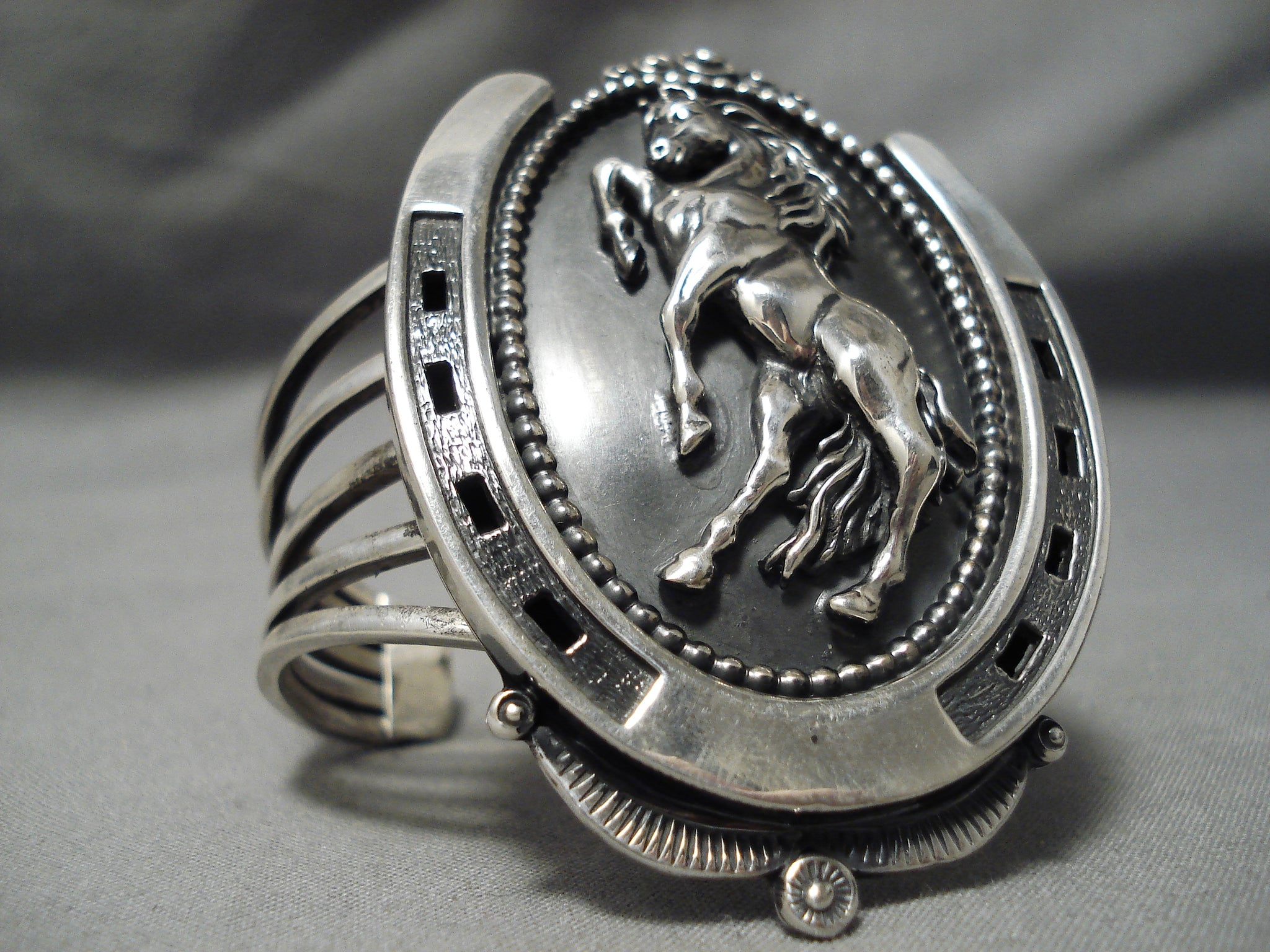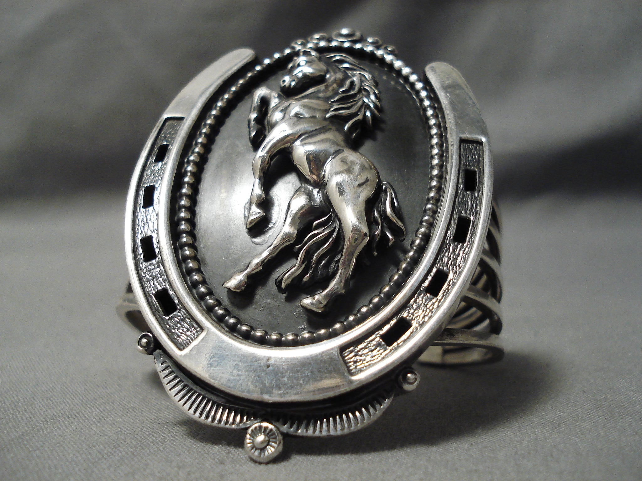 Bucking Horse Native American Navajo Sterling Silver Nativew American Bracelet Cuff