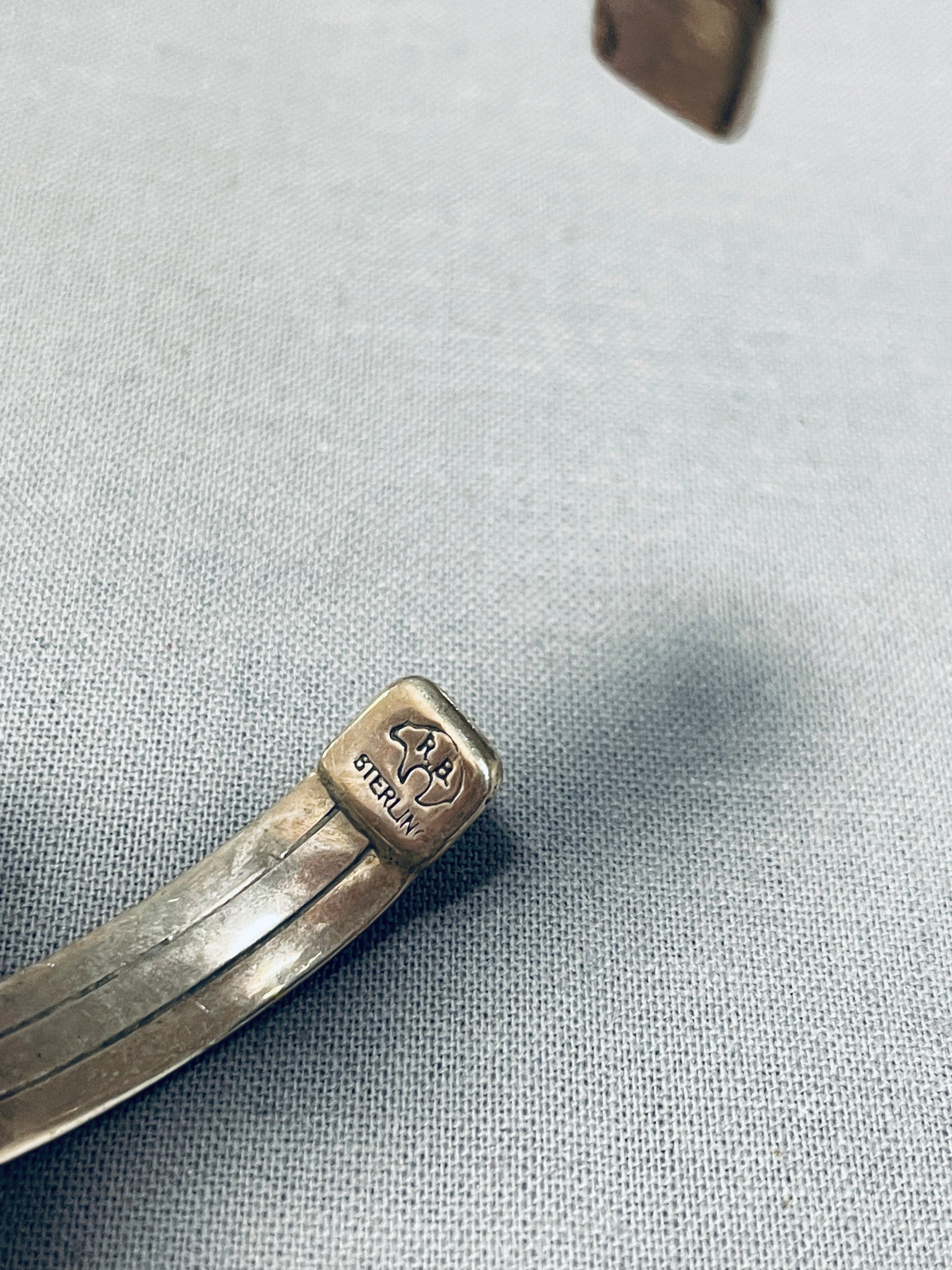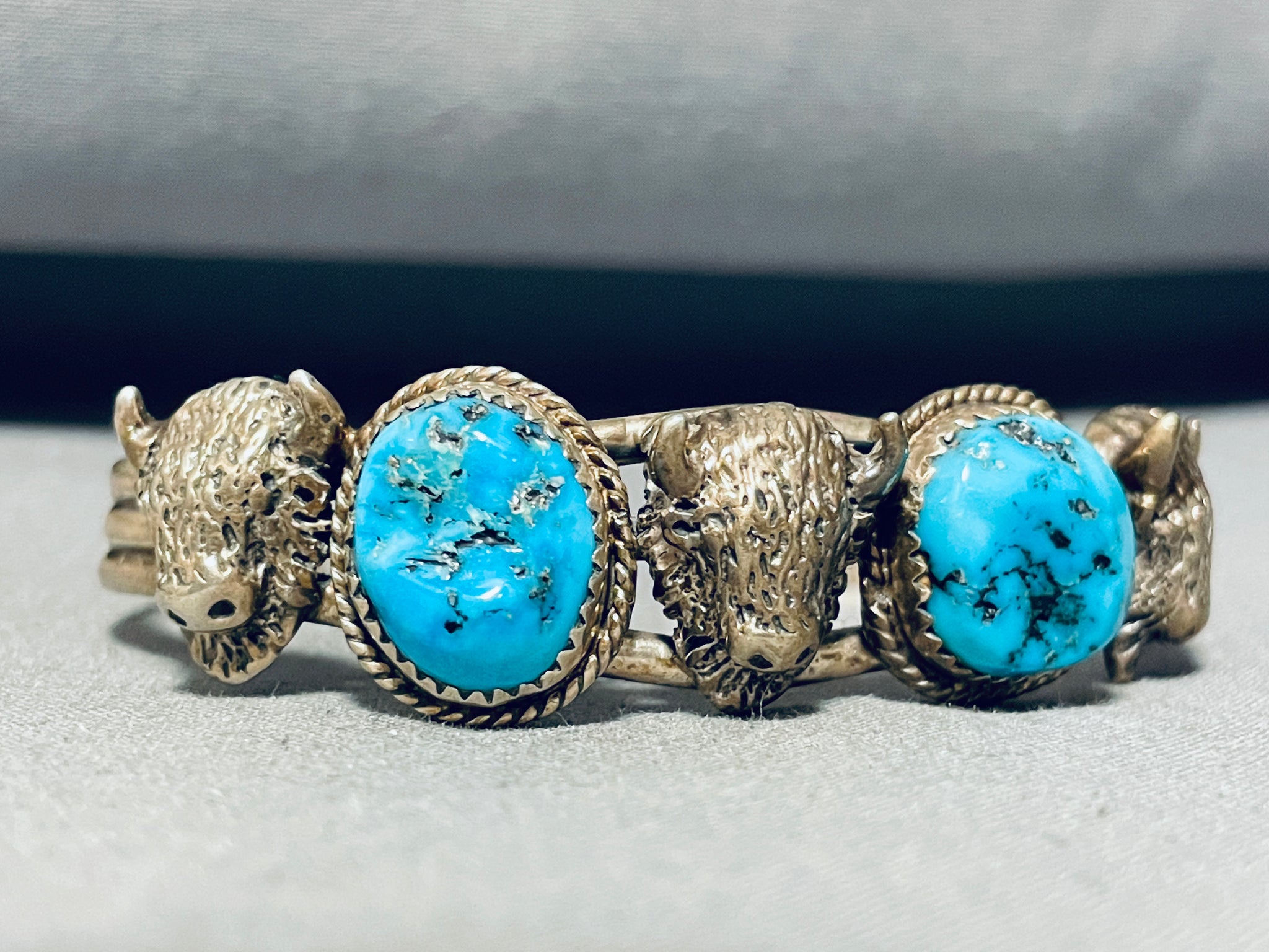 Buffalo Head Vintage Native American Navajo Turquoise Sterling Silver Bracelet