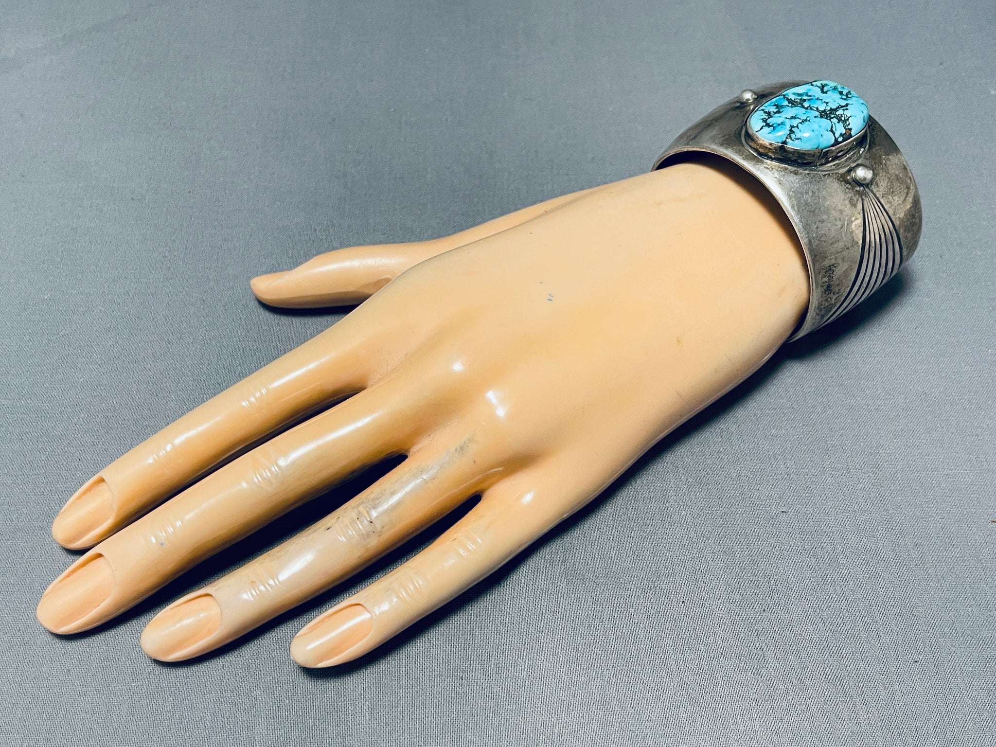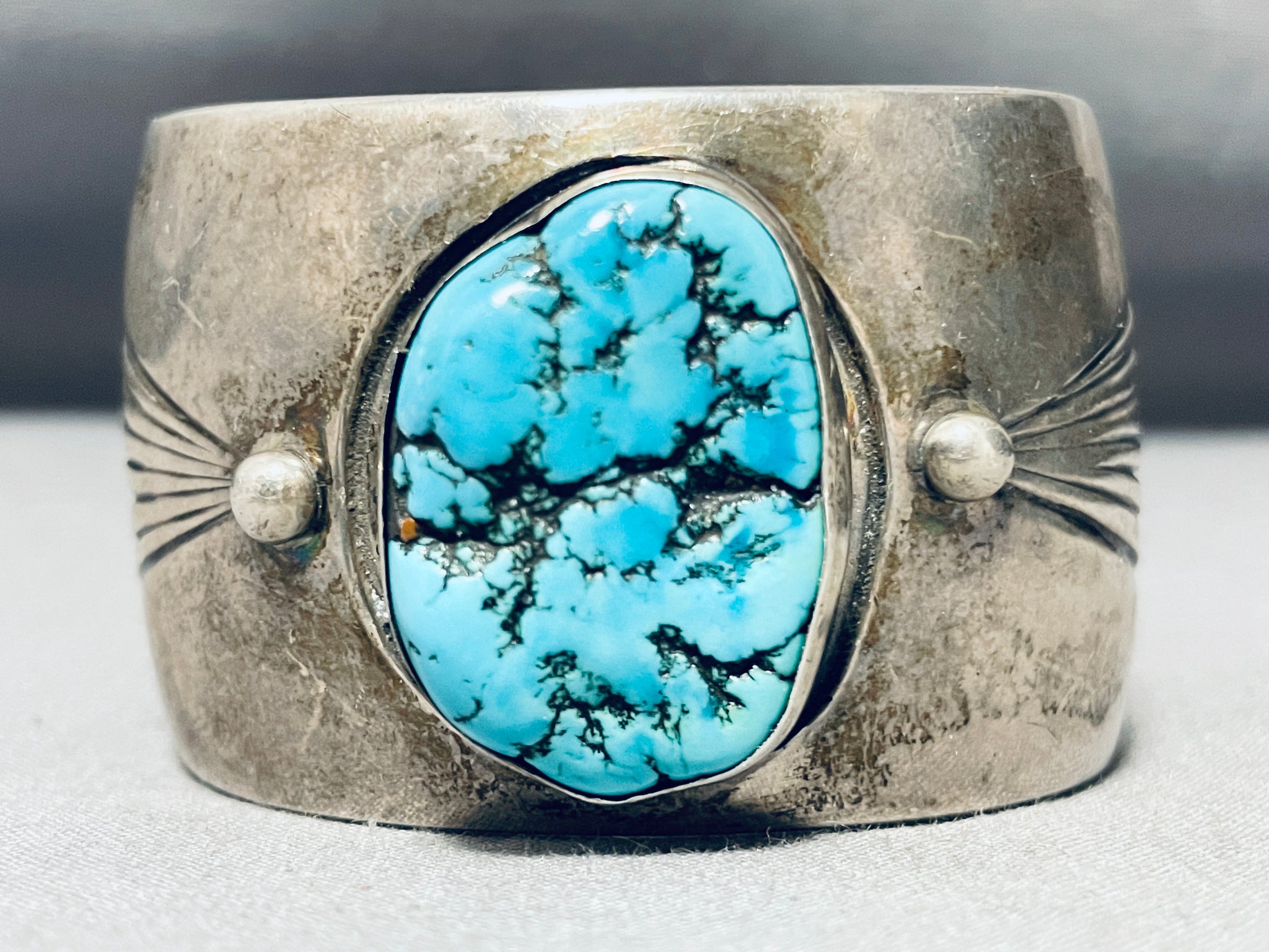 Bursting From Turquoise Vintage Native American Navajo Sterling Silver Bracelet