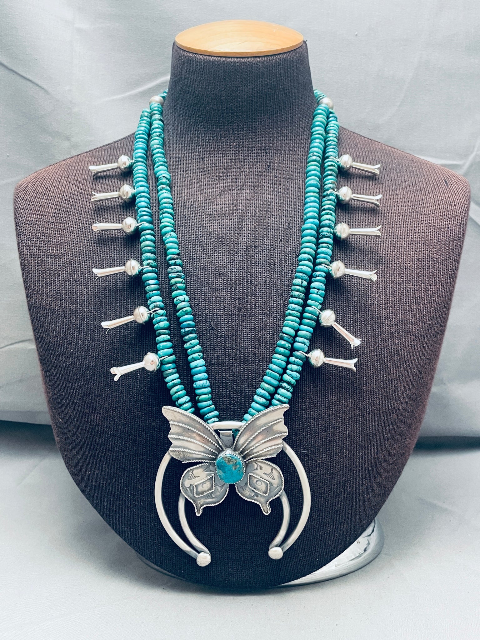 Butterfly Love Native American Navajo Turquoise Sterling Silver Necklace