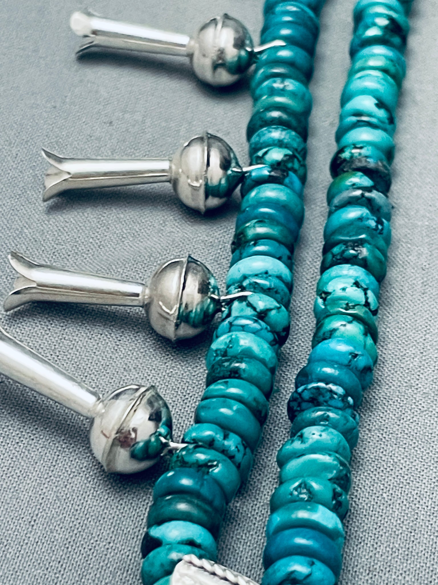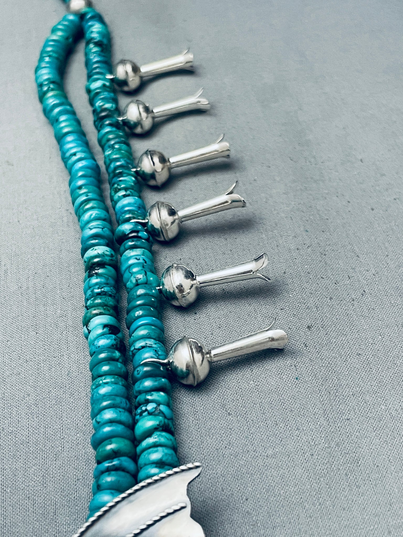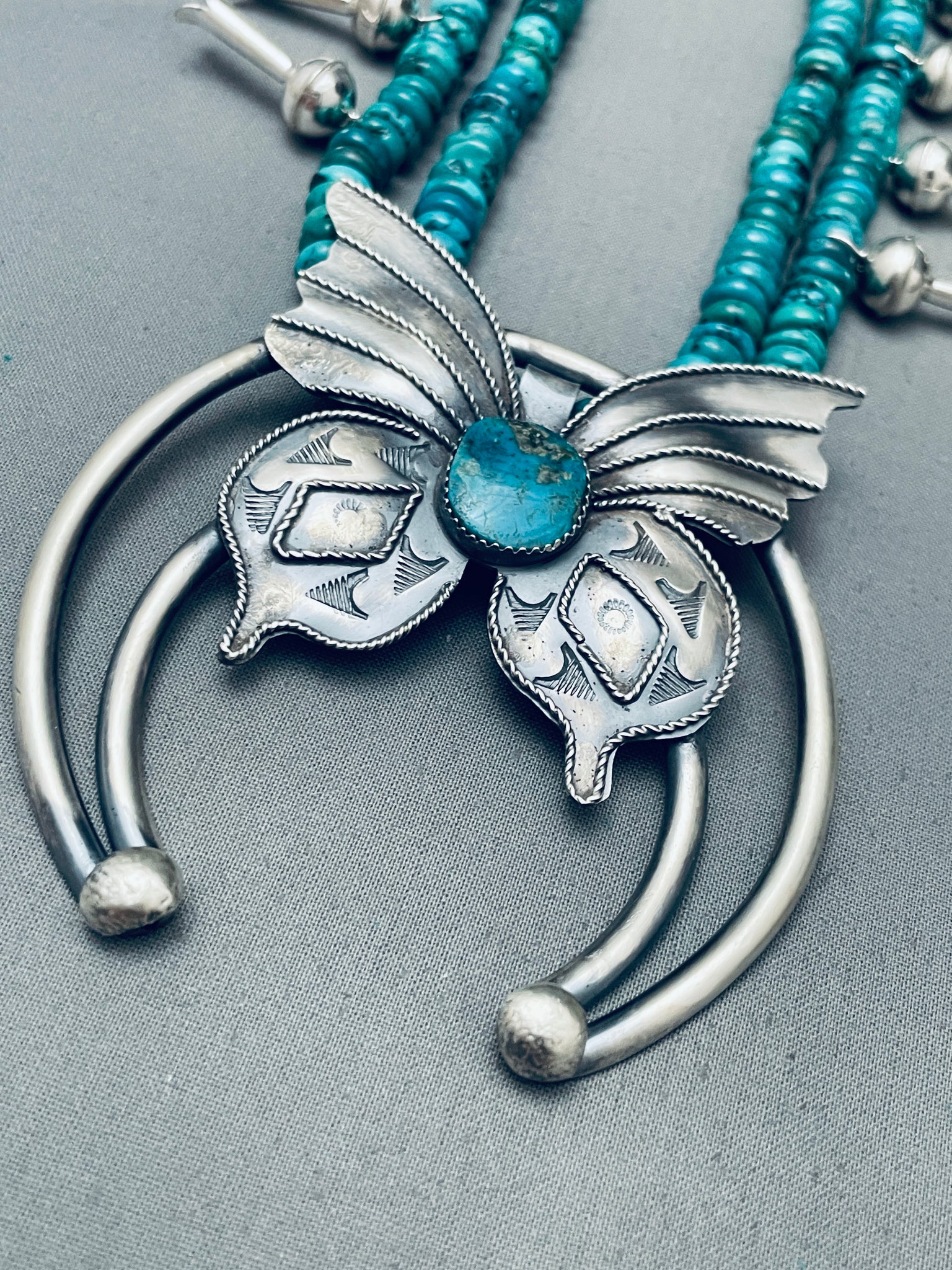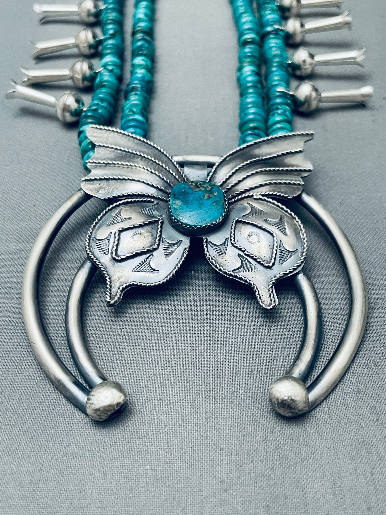 Butterfly Turquoise Naavjo Sterling Silver Squash Blossom Necklace