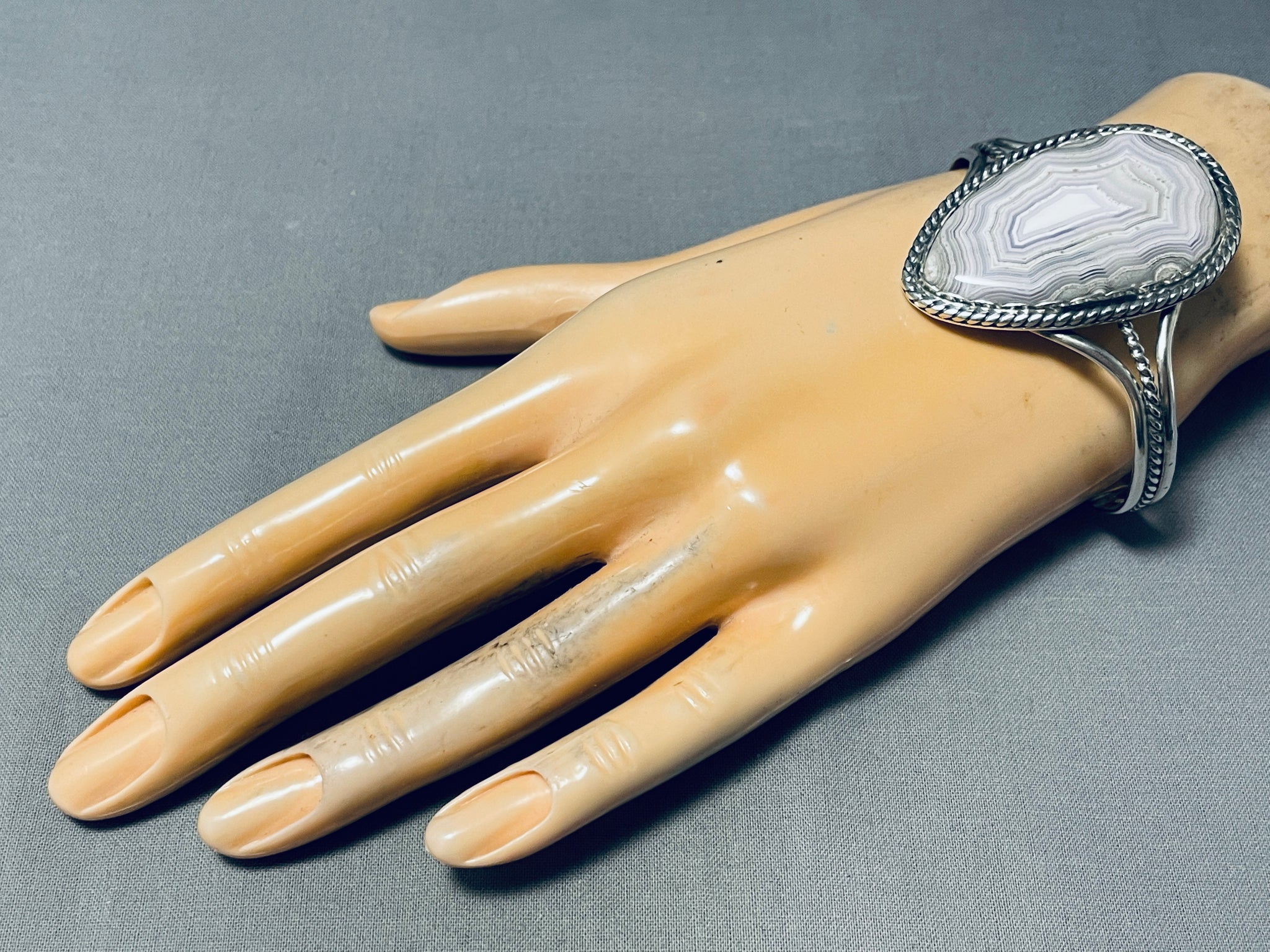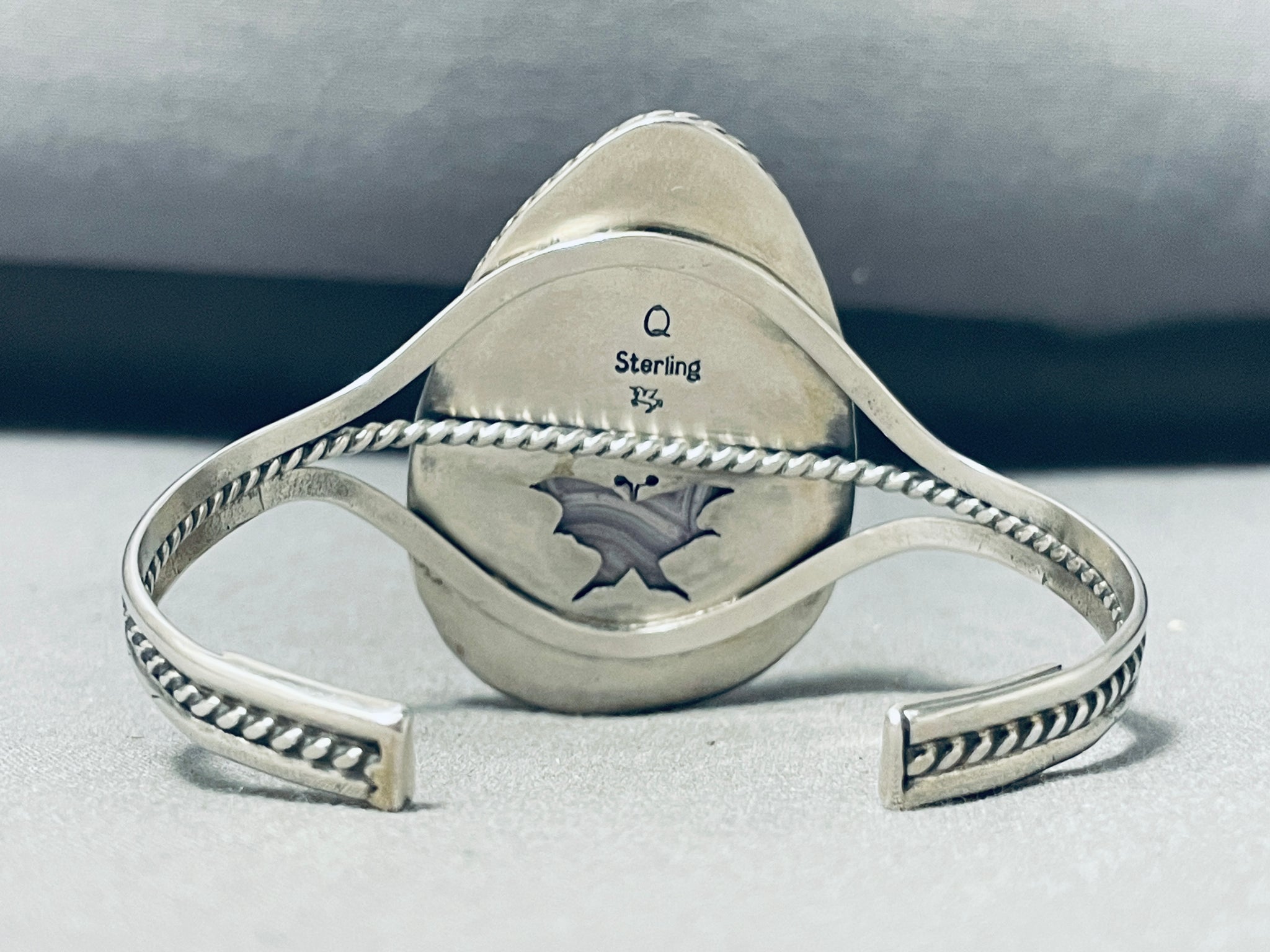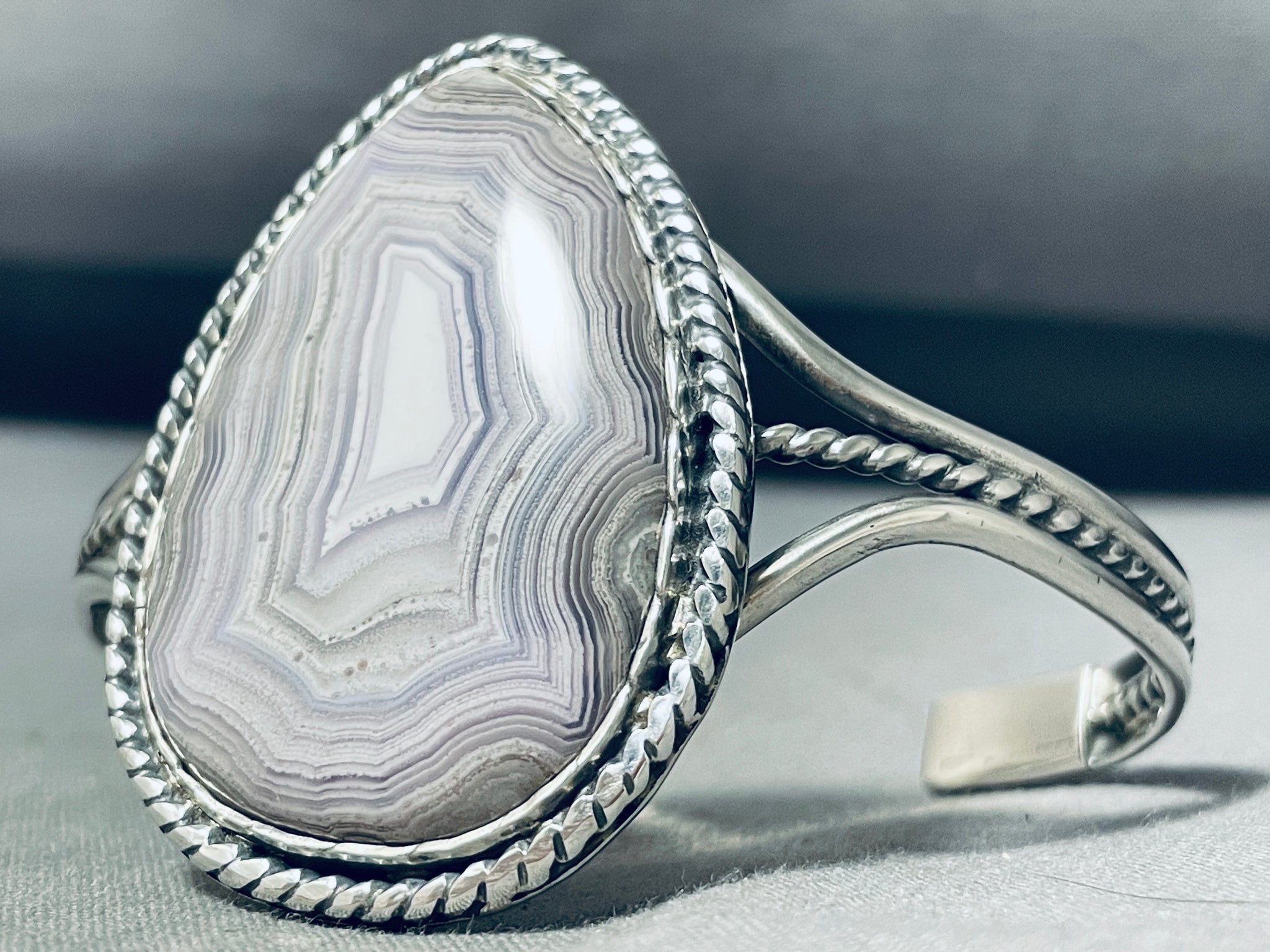 Calandria Agate Argentium Rare Signed Sterling Silver Bracelet Cuff