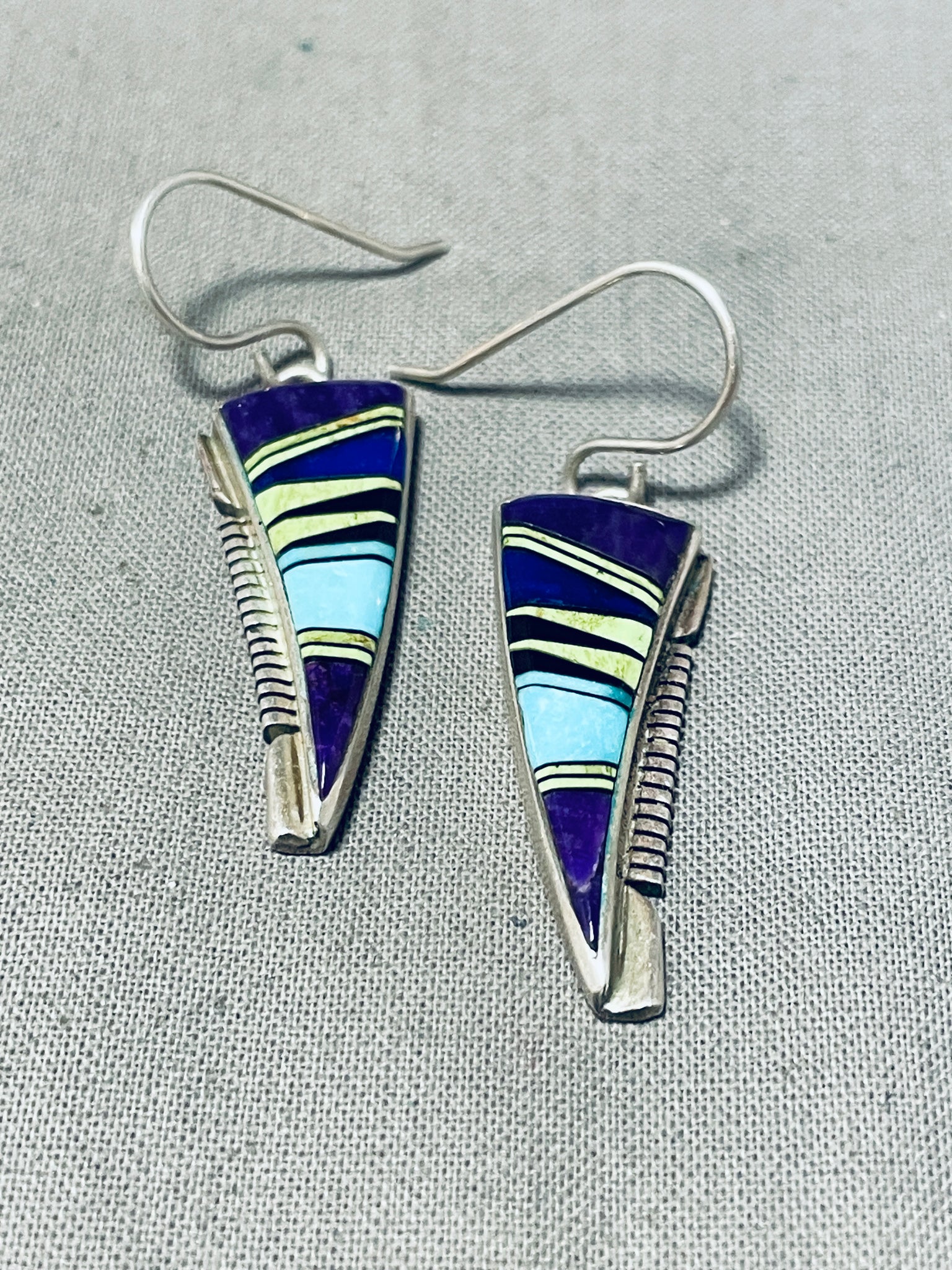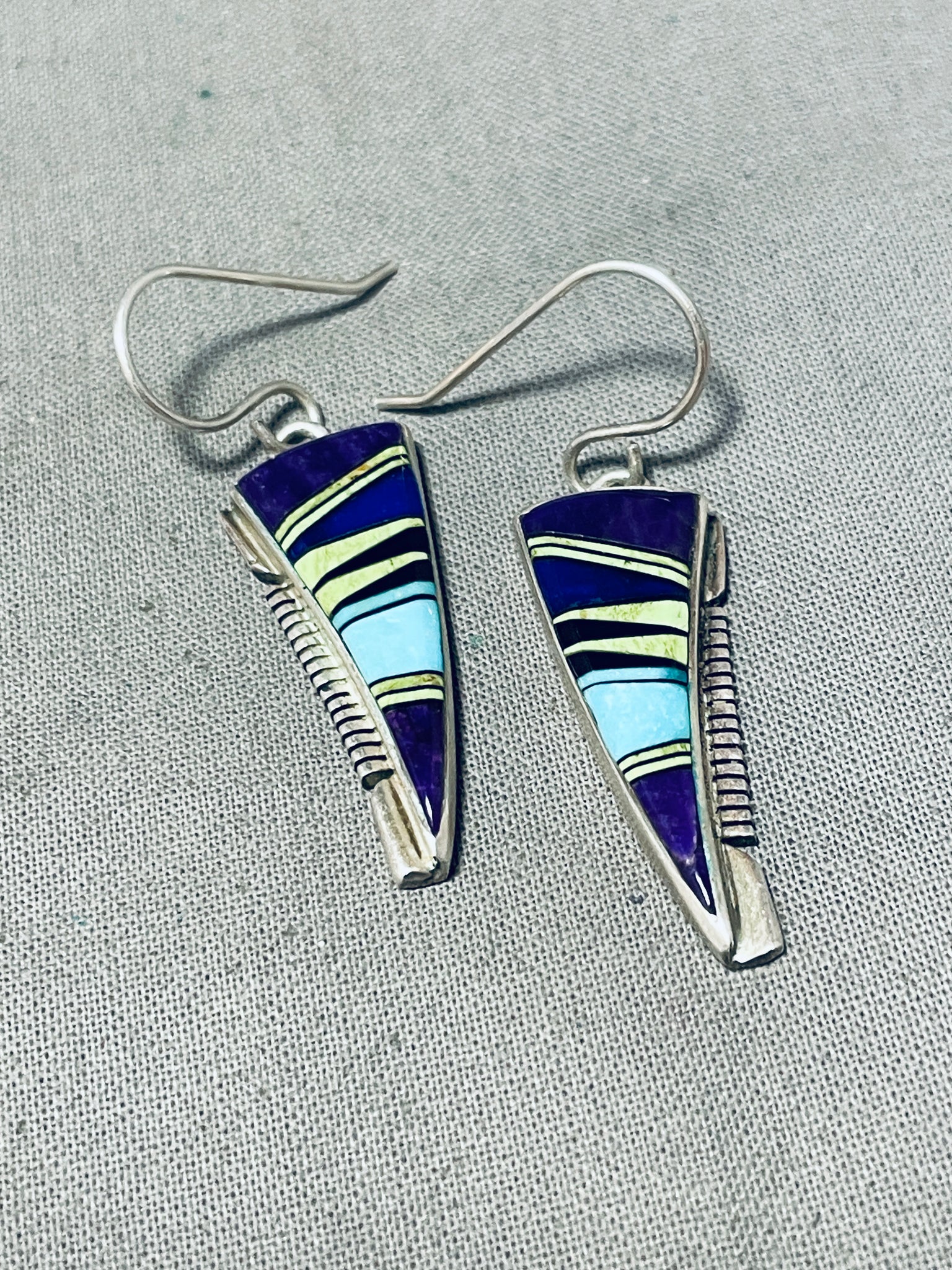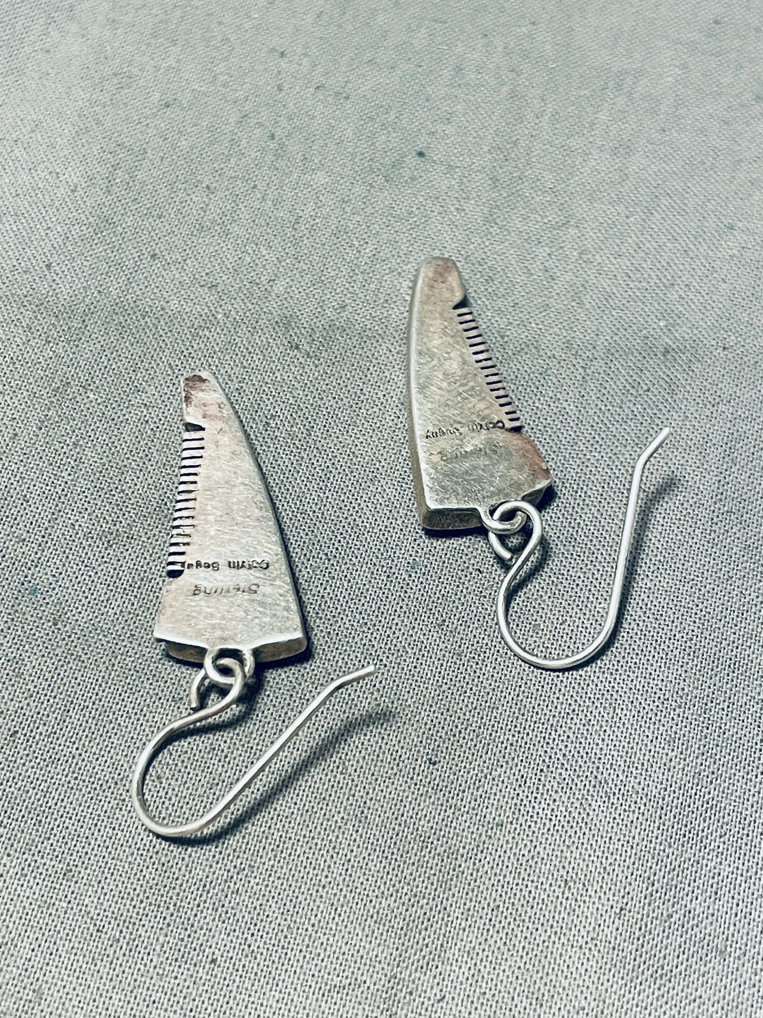Calvin Begay Vintage Native American Navajo Blue Gem Turquoise Sterling Silver Earrings