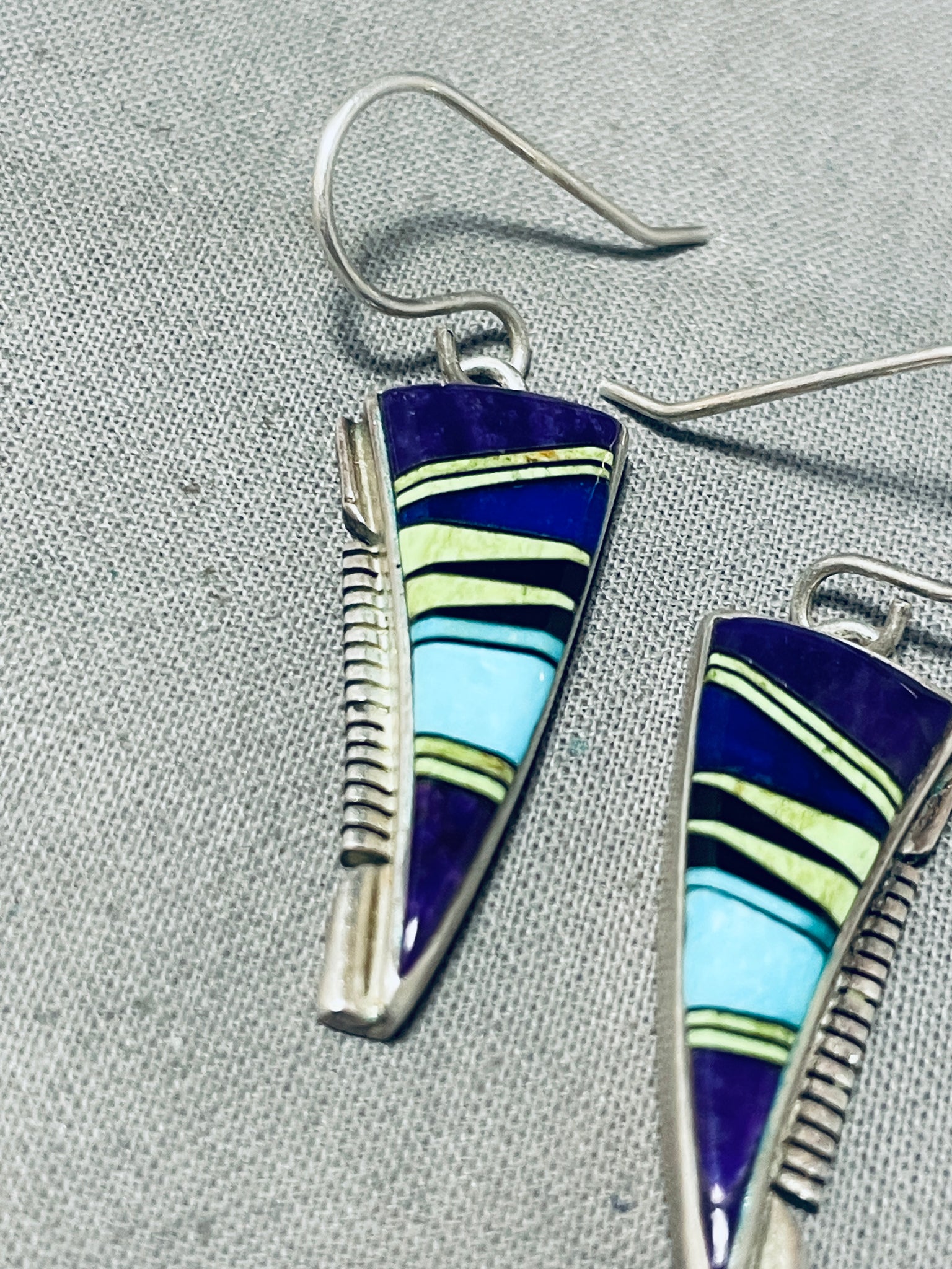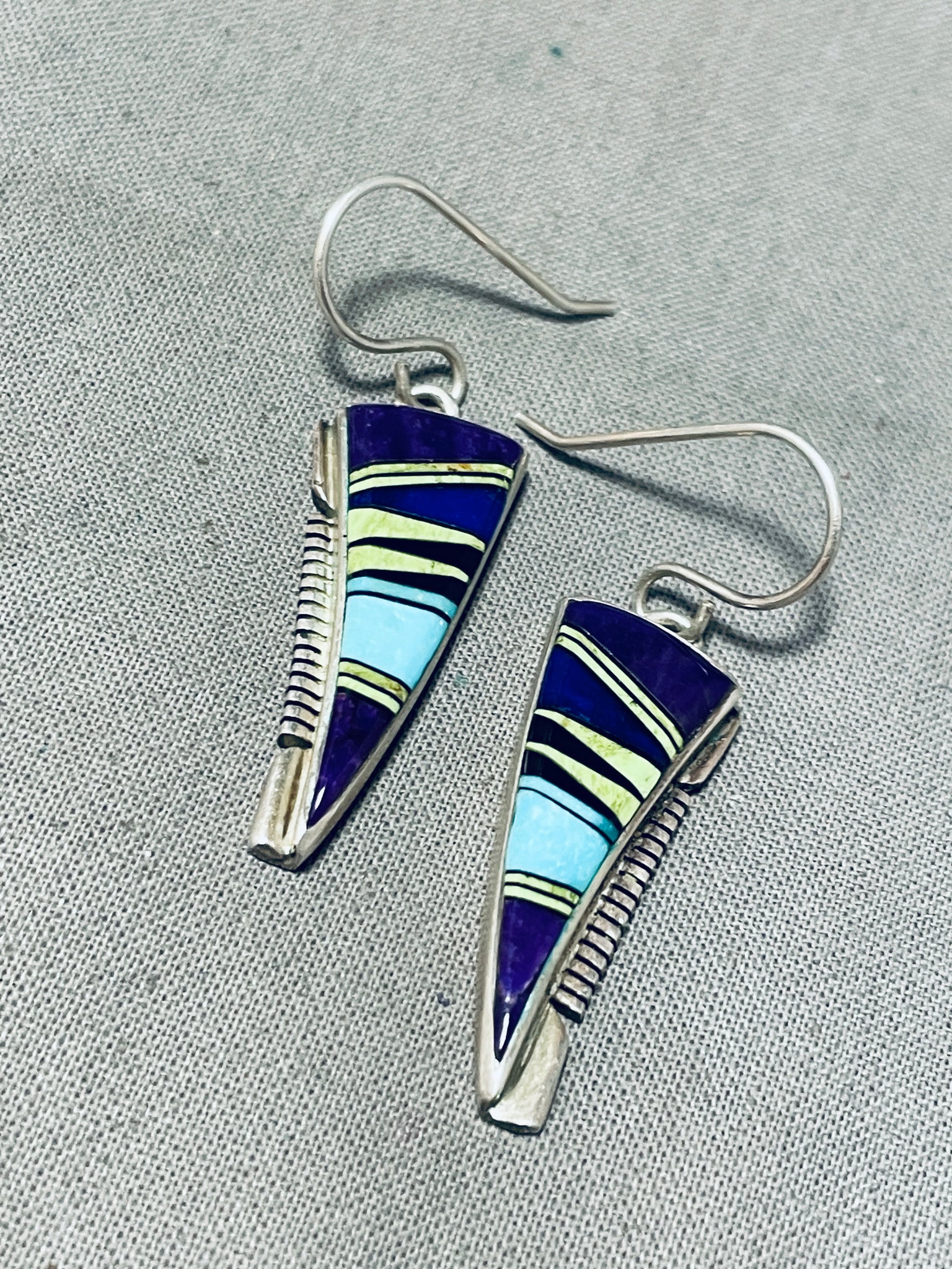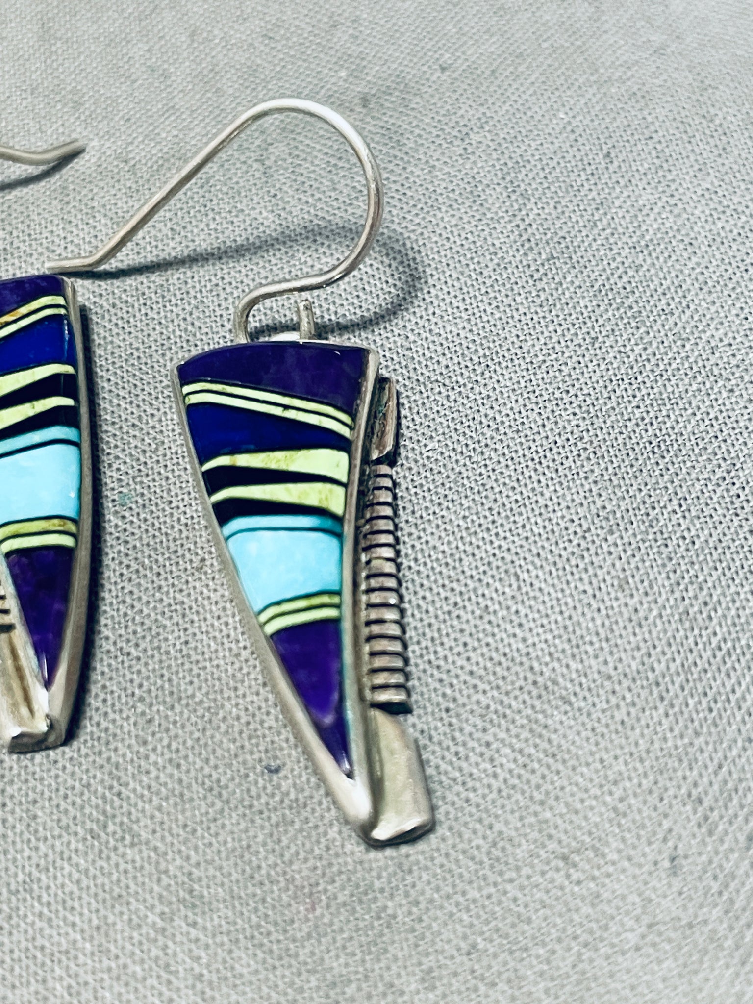 Calvin Begay Vintage Native American Navajo Blue Gem Turquoise Sterling Silver Earrings