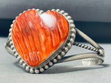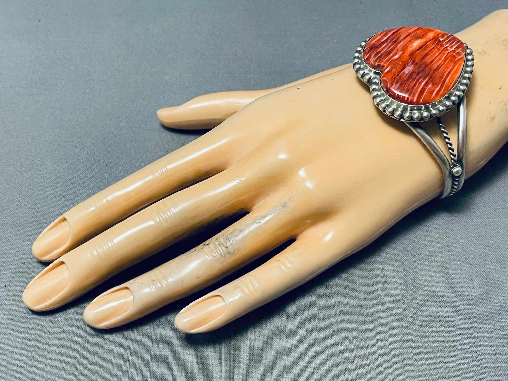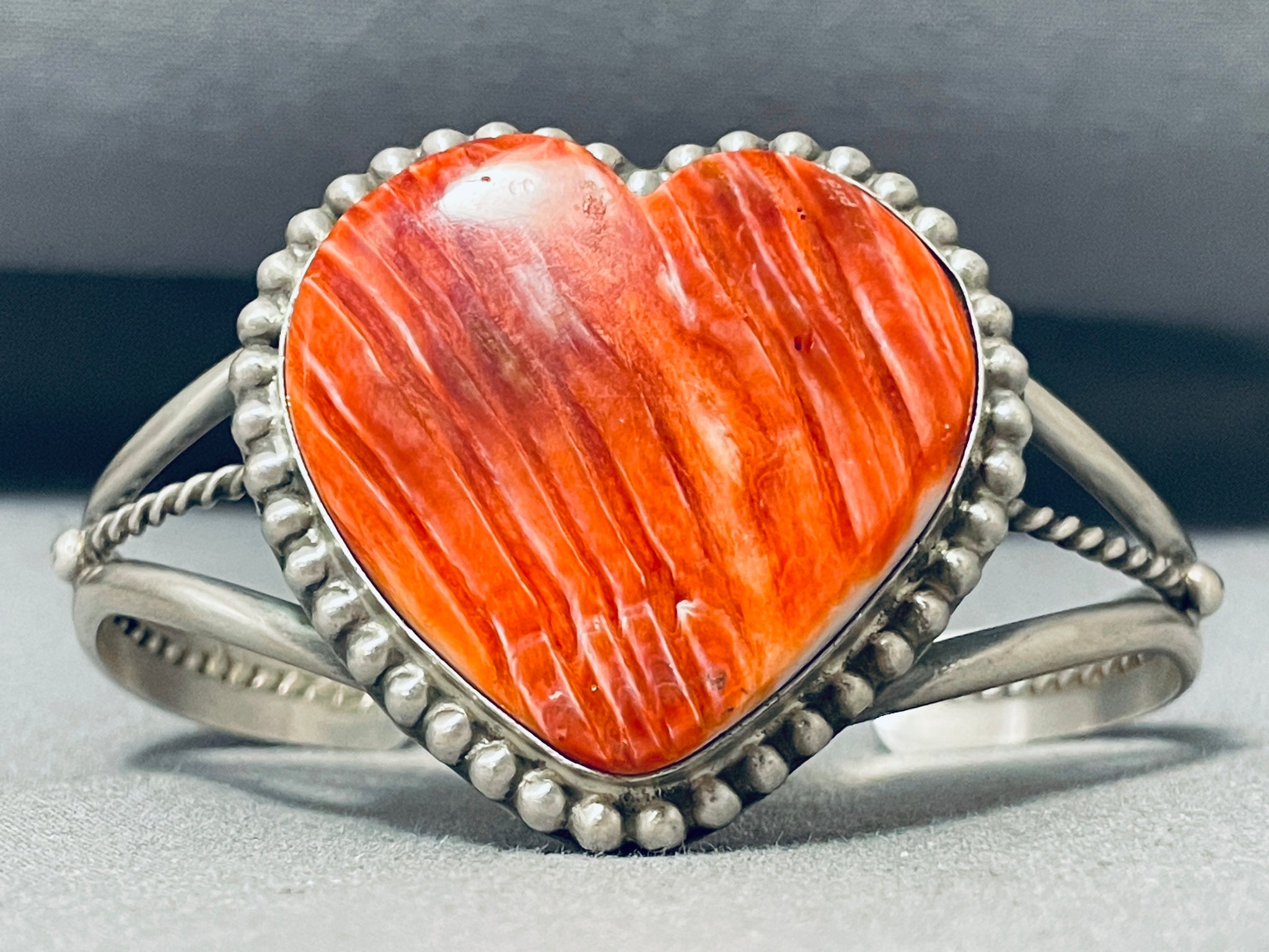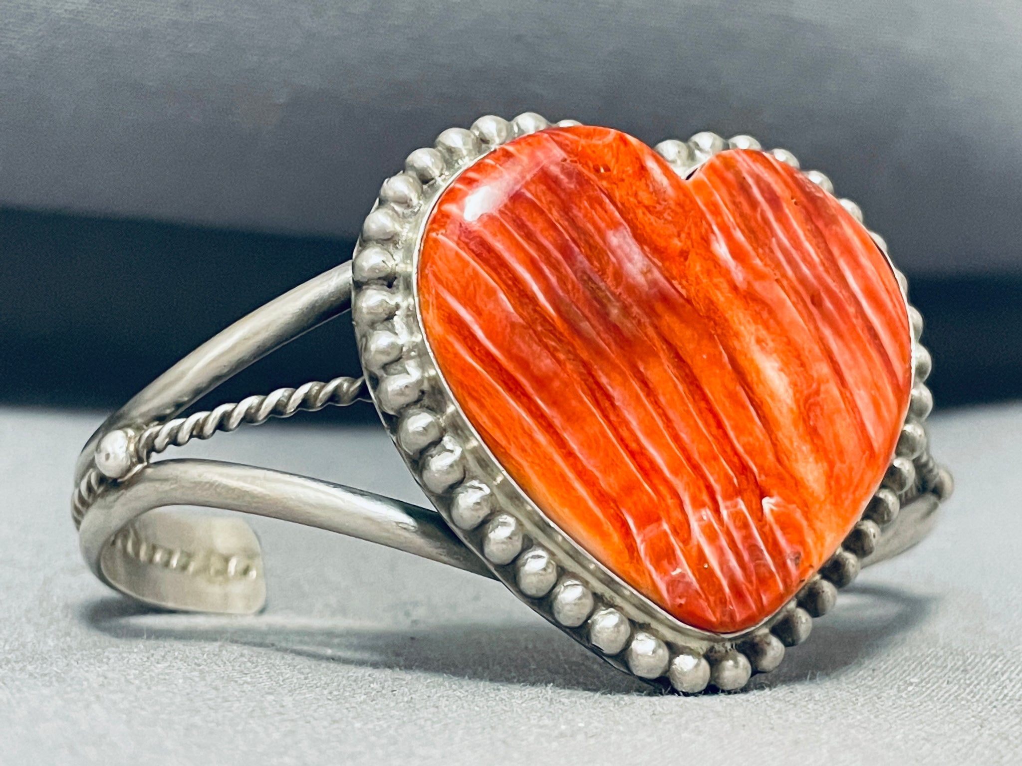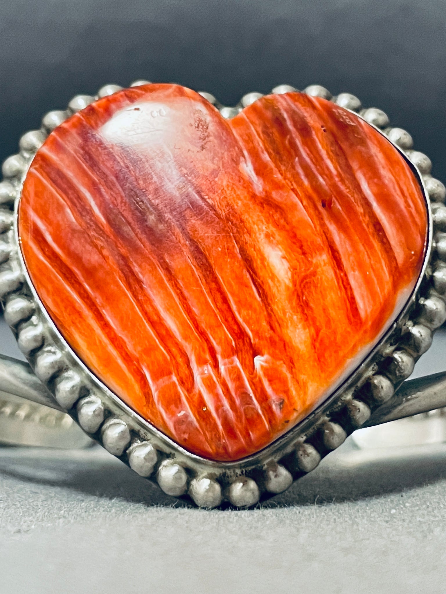 Captivating Native American Navajo Orange Spiny Sterling Silver Gigantic Heart Bracelet