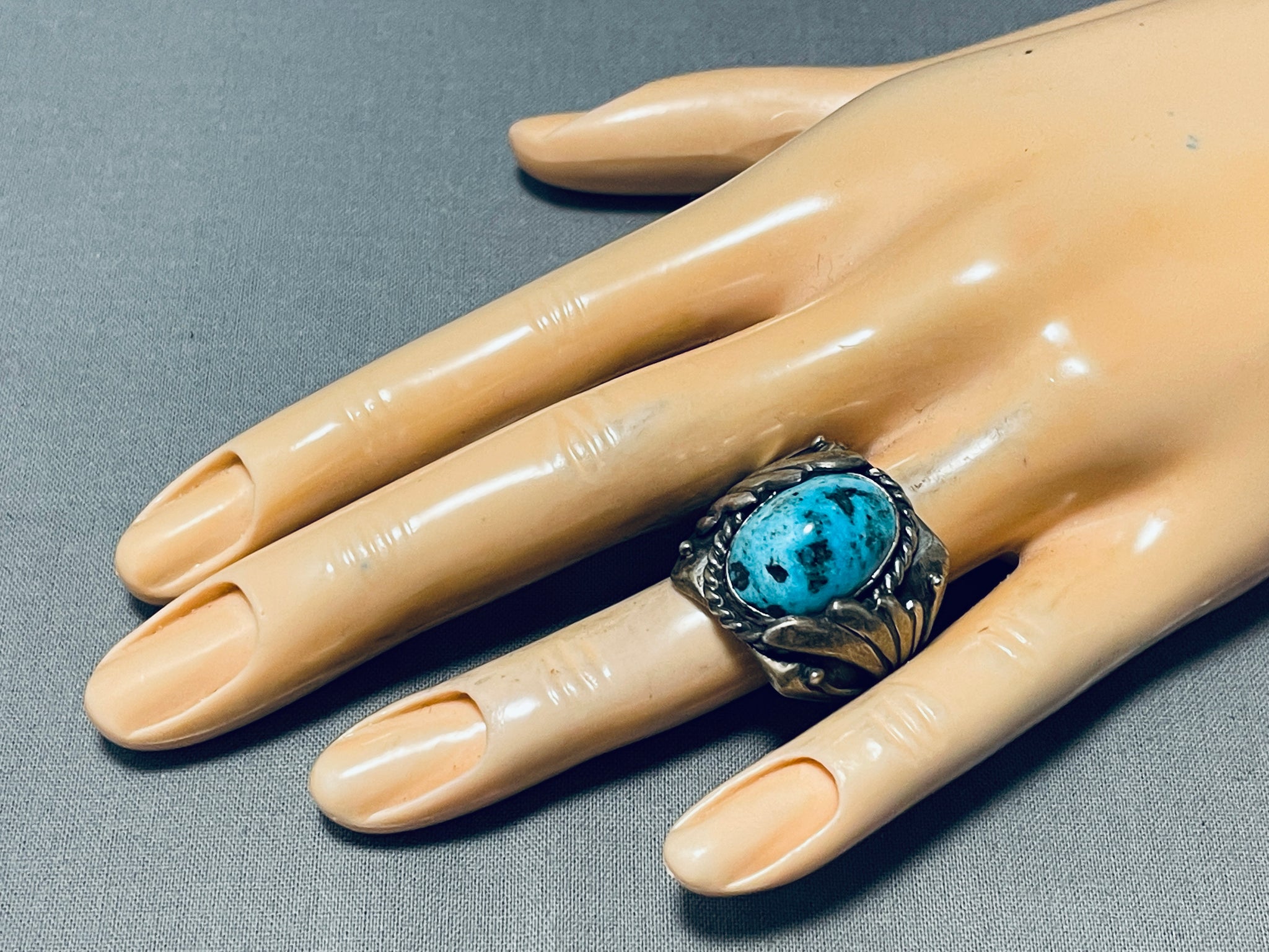 Captivating Vintage Native American Navajo Blue Diamond Turquoise Sterling Silver Ring