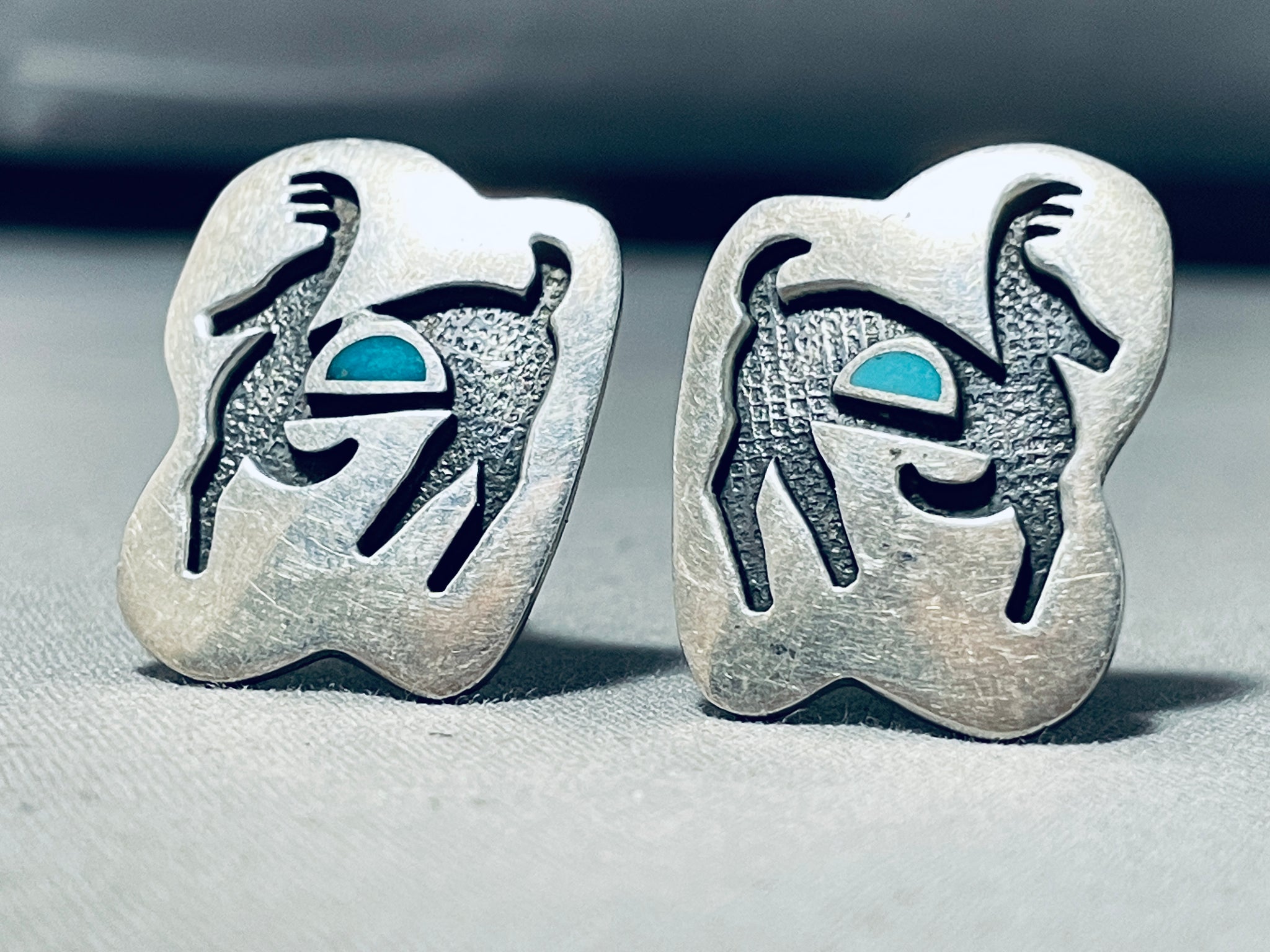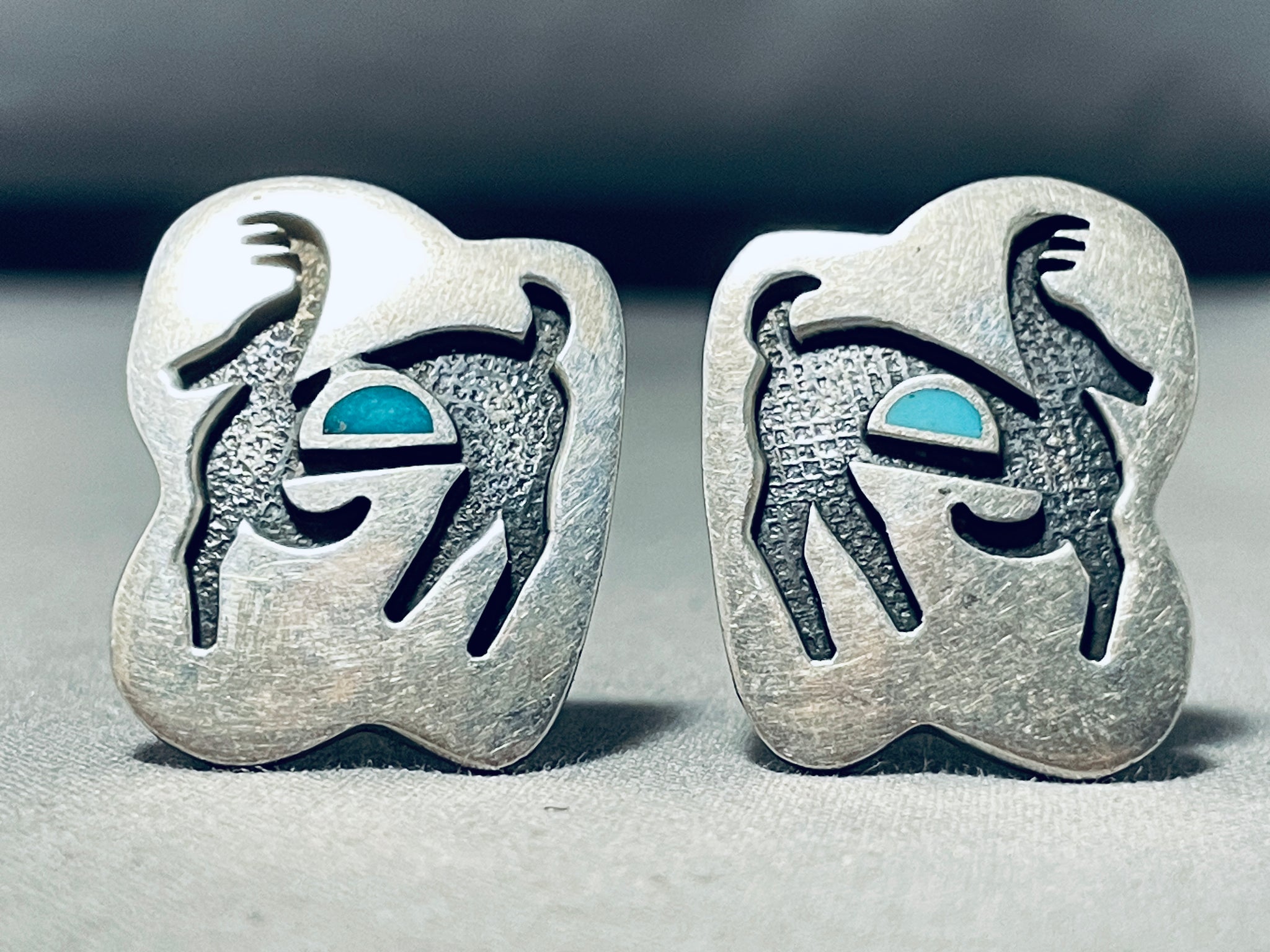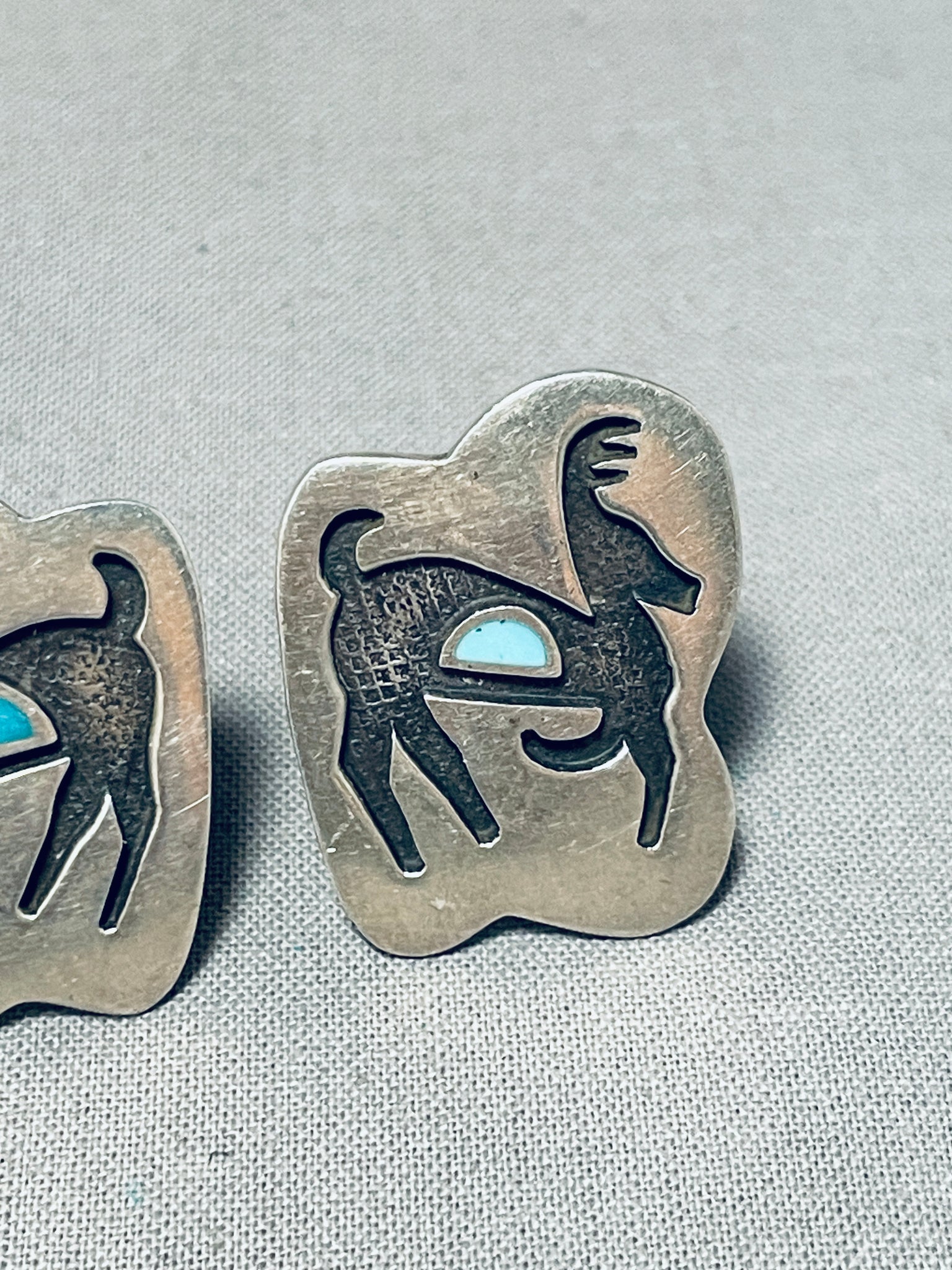 Captivating Vintage Native American Navajo Blue Gem Sterling Silver Deer Cuff Links