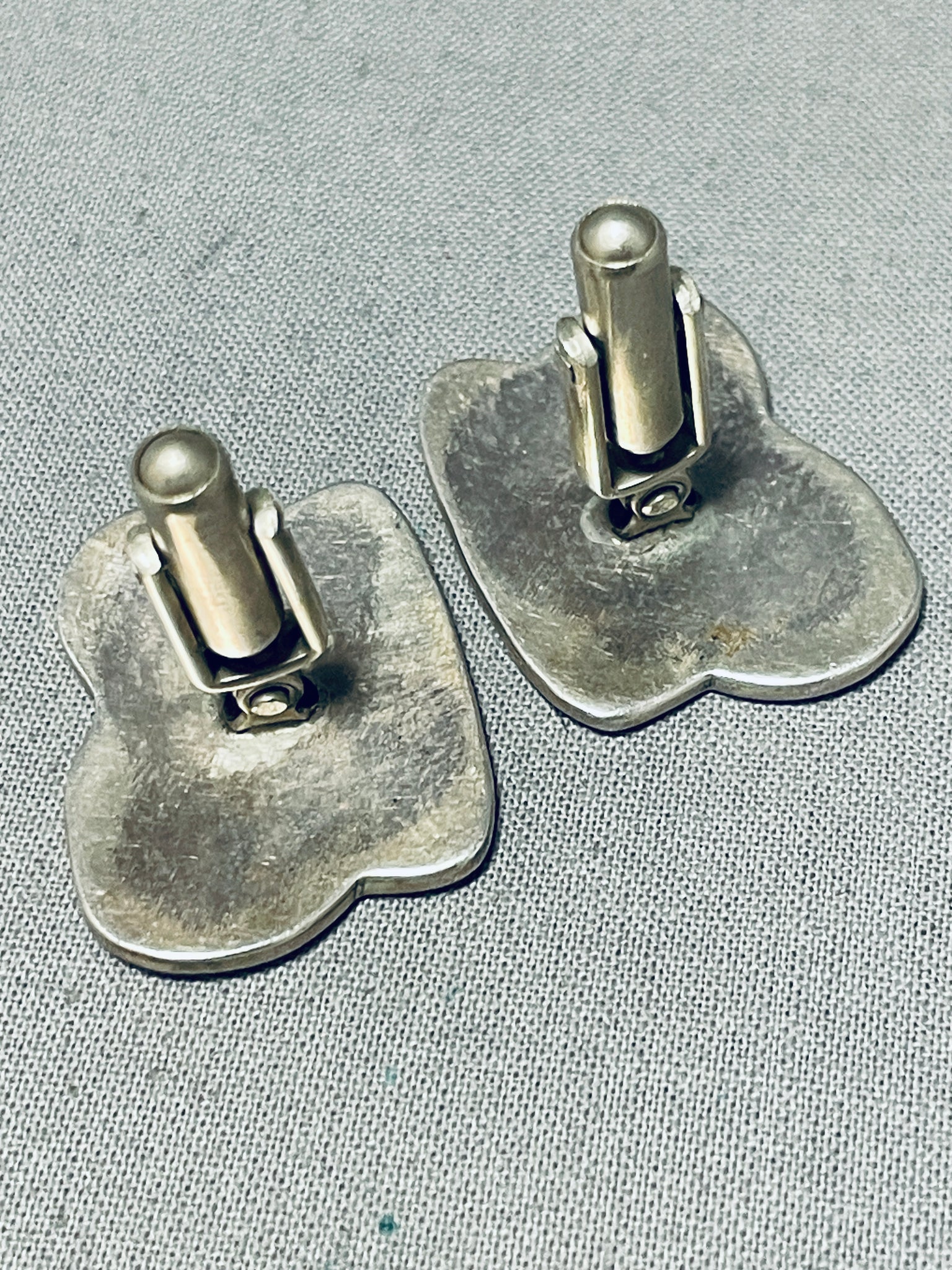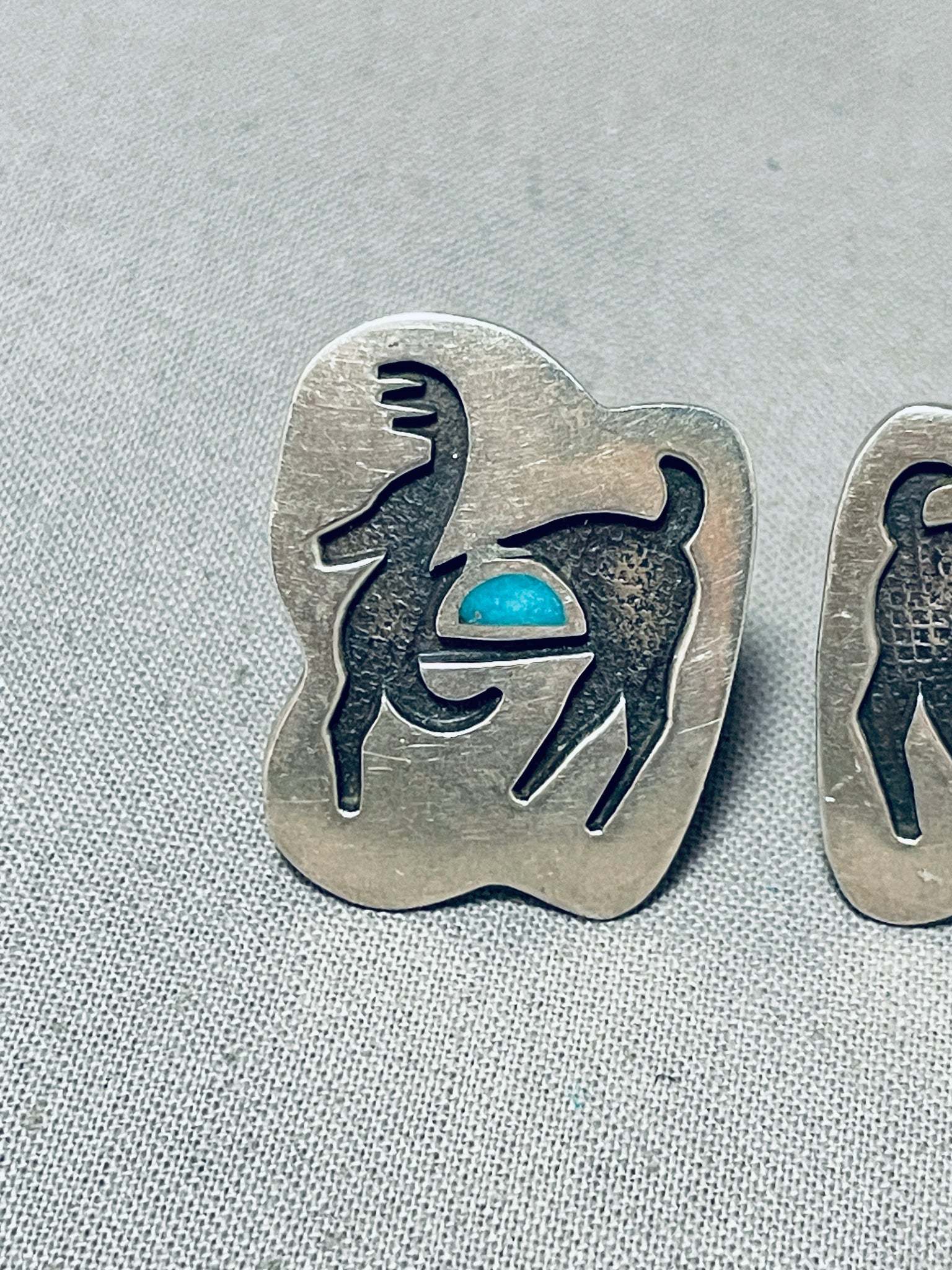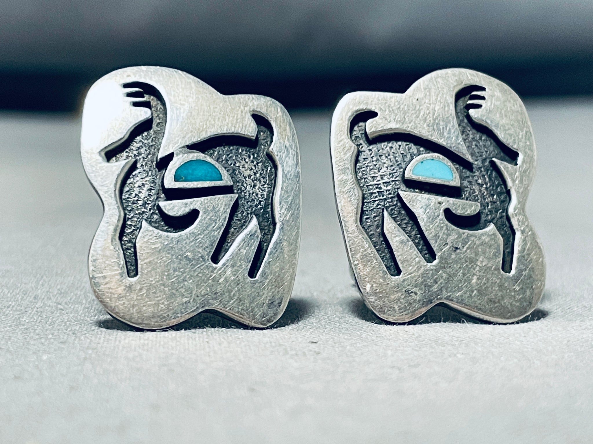 Captivating Vintage Native American Navajo Blue Gem Sterling Silver Deer Cuff Links
